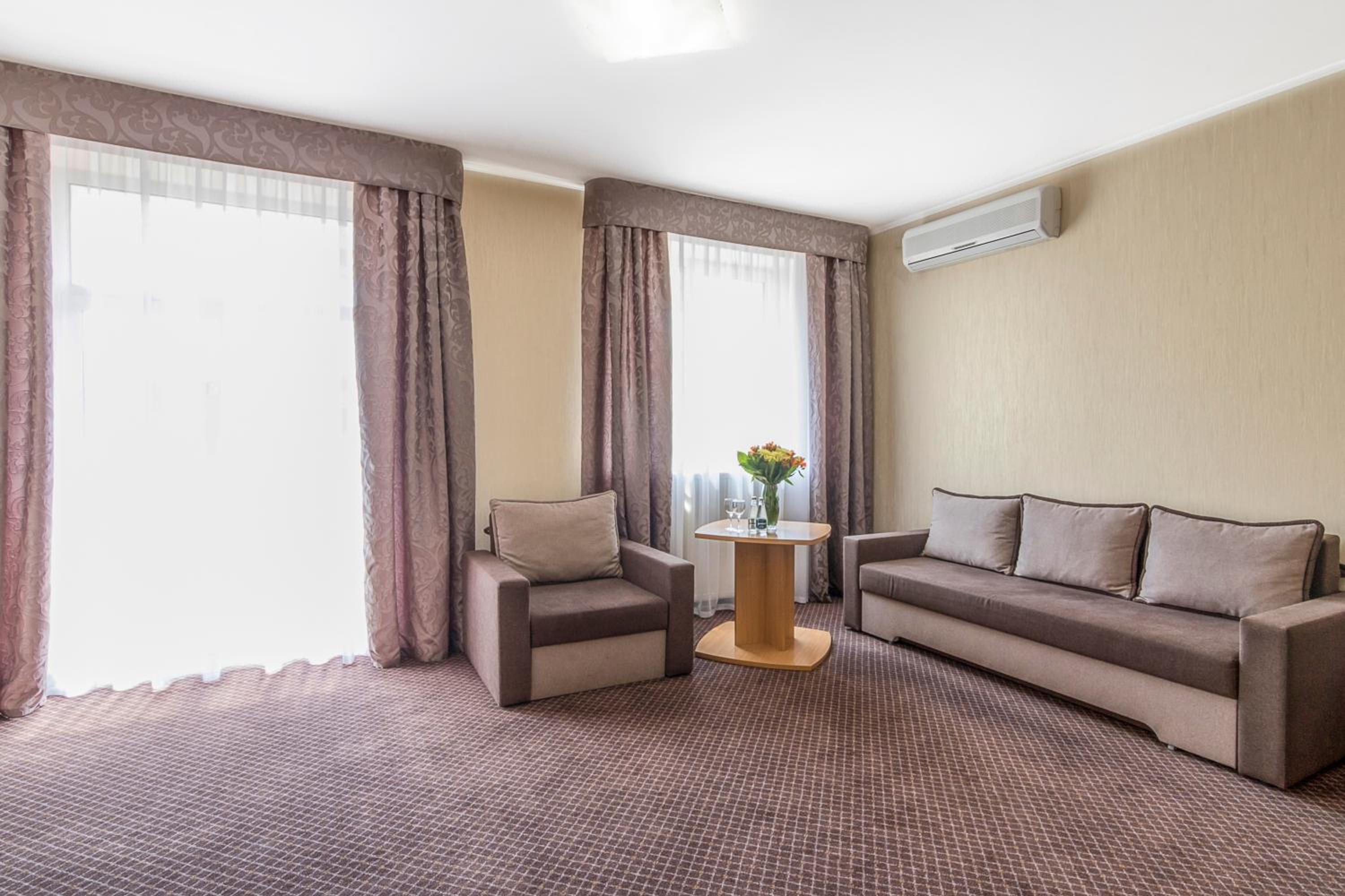 Indulge in delectable Ukrainian and Russian cuisines at the hotel's elegant restaurant or unwind with a refreshing drink at the bar. For ultimate relaxation, guests can enjoy a variety of spa treatments at the spa centre, featuring a hot tub, sauna, and rejuvenating massage services.