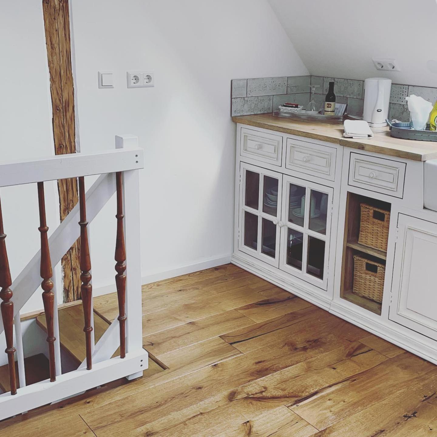 In der Suite gab es leider kein Sofa; der in die Küche gestellte Kasten könnte man auf der Rückseite farbig anmalen oder mit einer Fototapete bekleben.