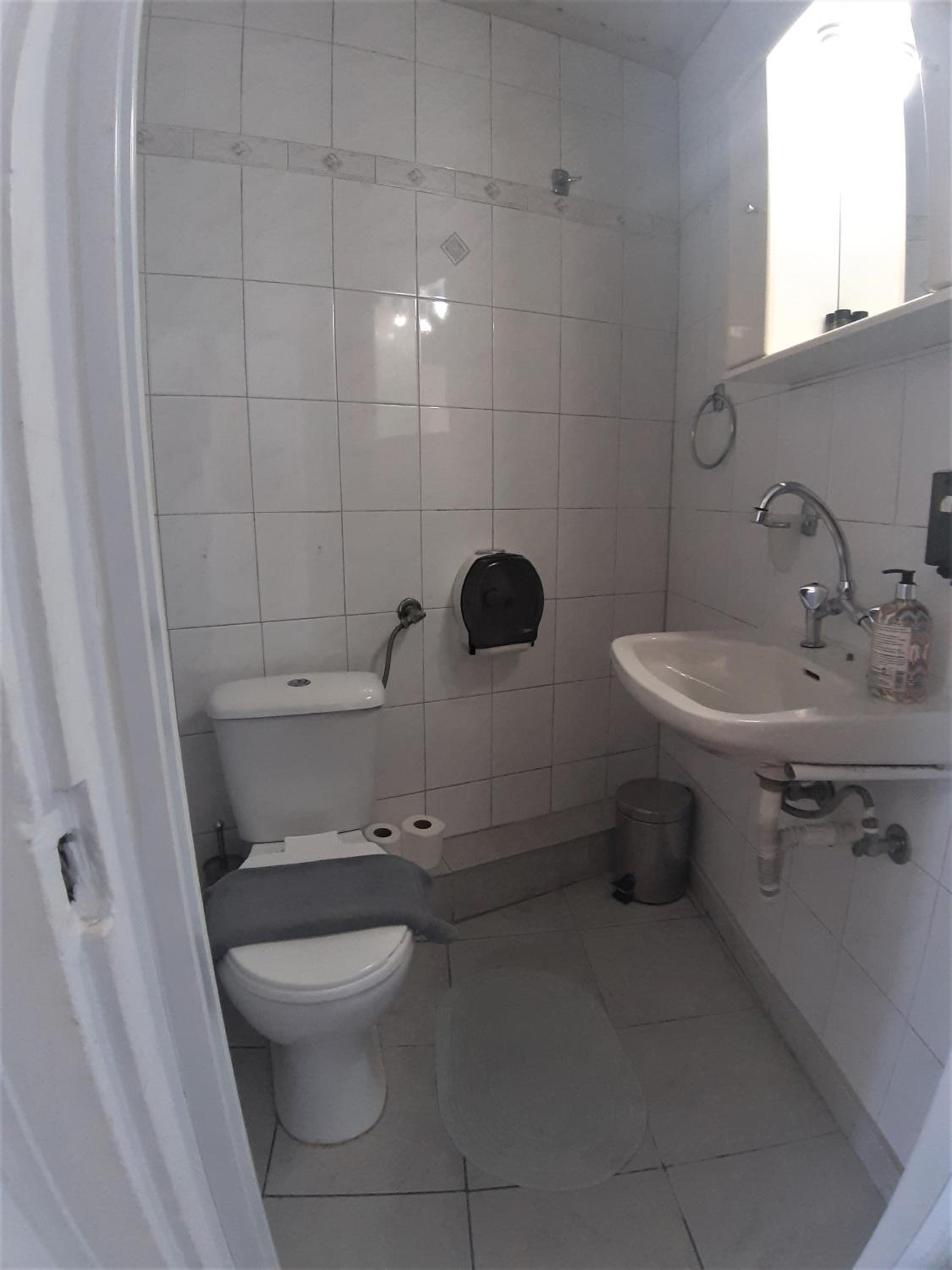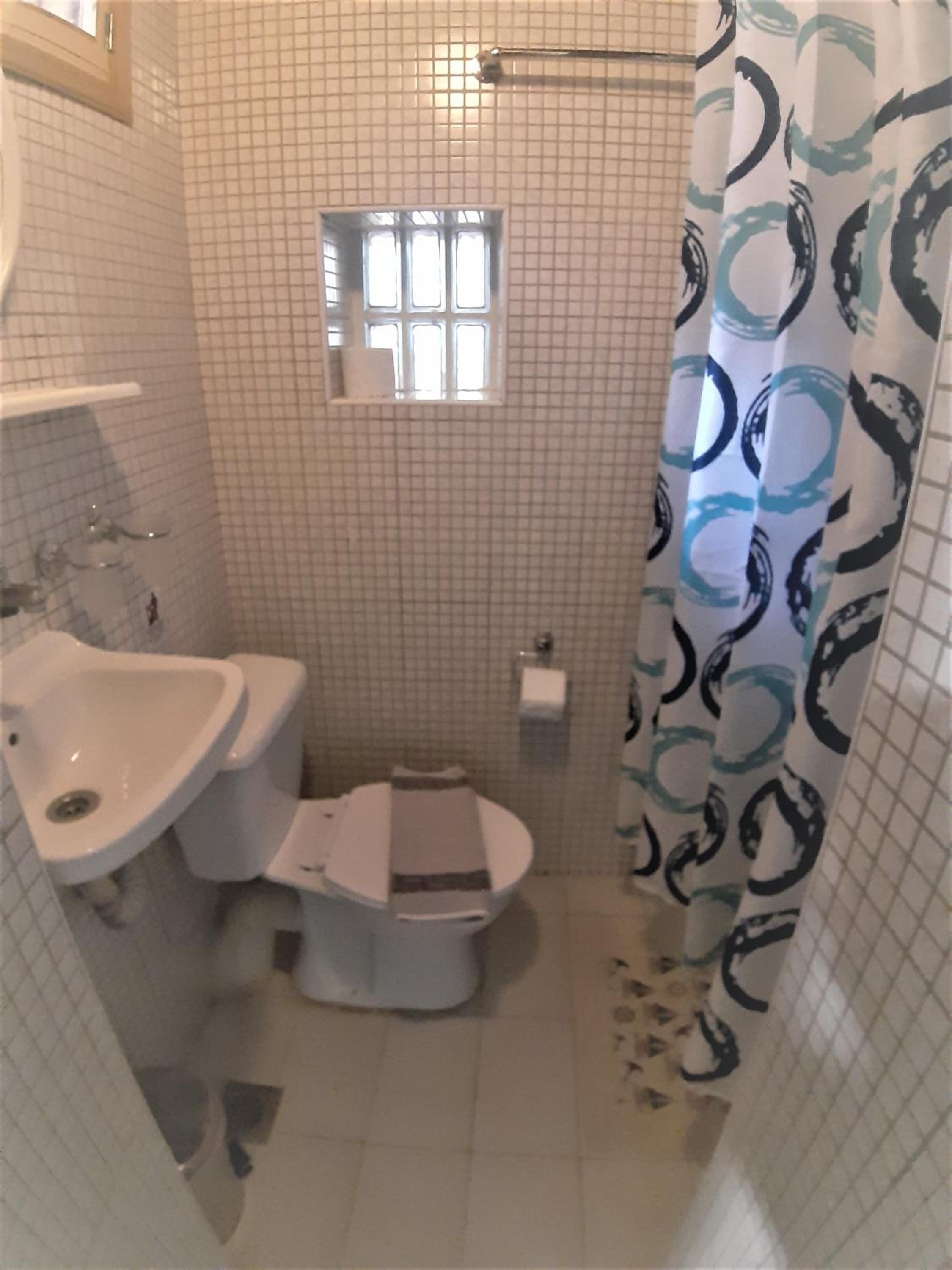 Toalett/dusch och säng var av enkel standard