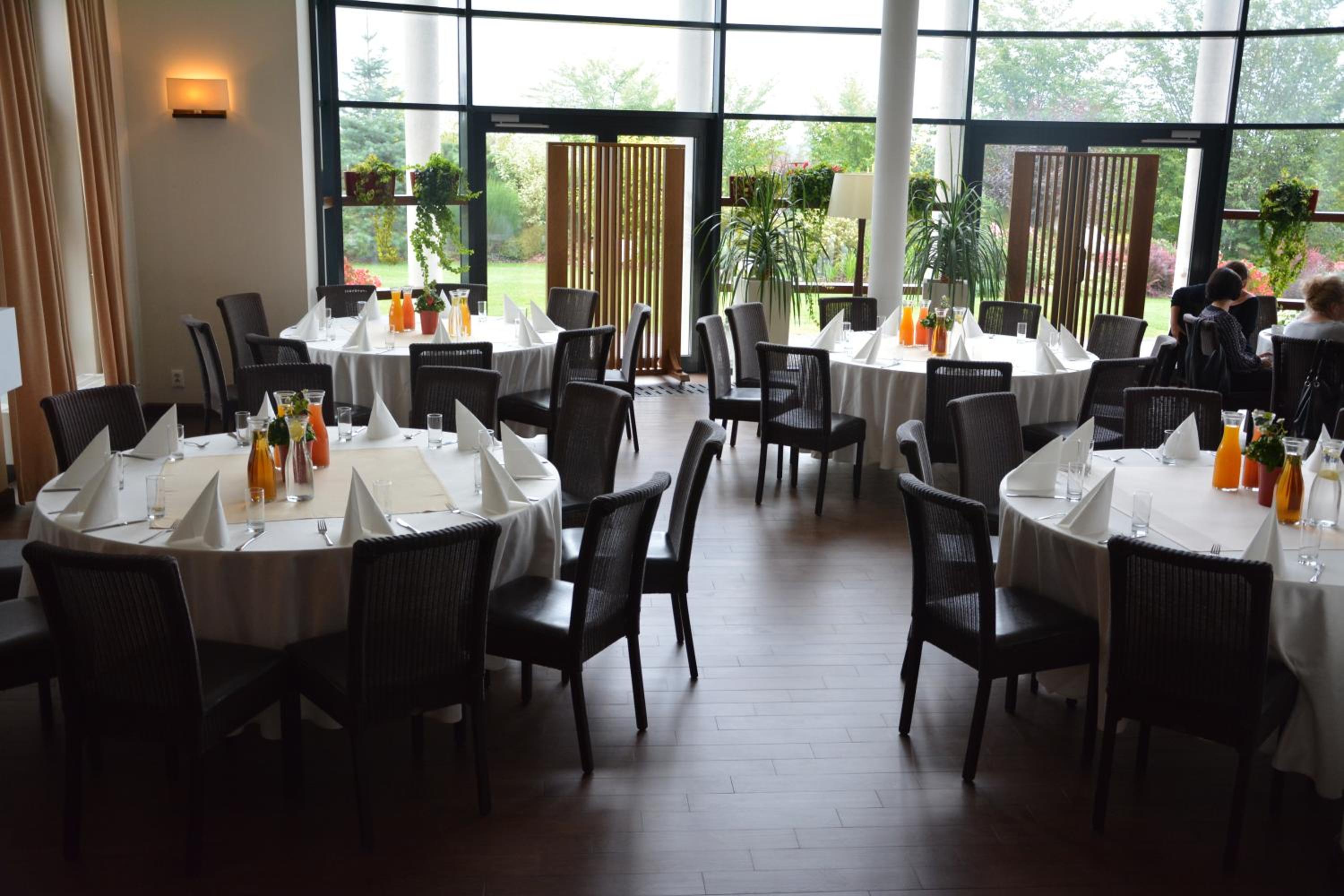 Savor a culinary journey at the hotel's restaurant, serving a delectable array of Polish and international cuisines. During the warmer months, relish your meal on the charming terrace overlooking the picturesque garden.