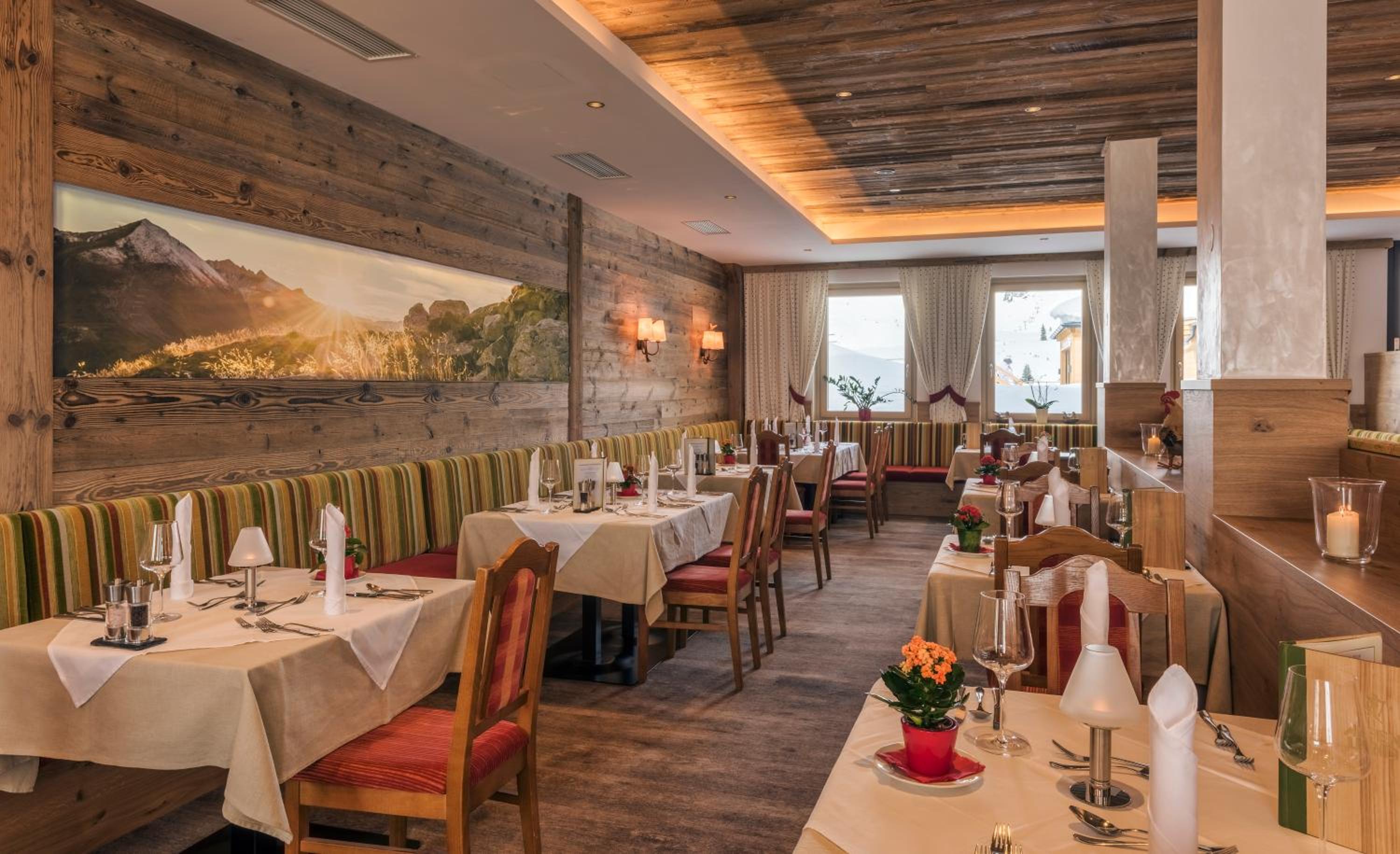 Breakfast, dinner, afternoon snacks, all food is great. Staff super nice. Ski’s safe in lockers. Very pleasant atmosphere. Zentrallift right outside the Skiraum.