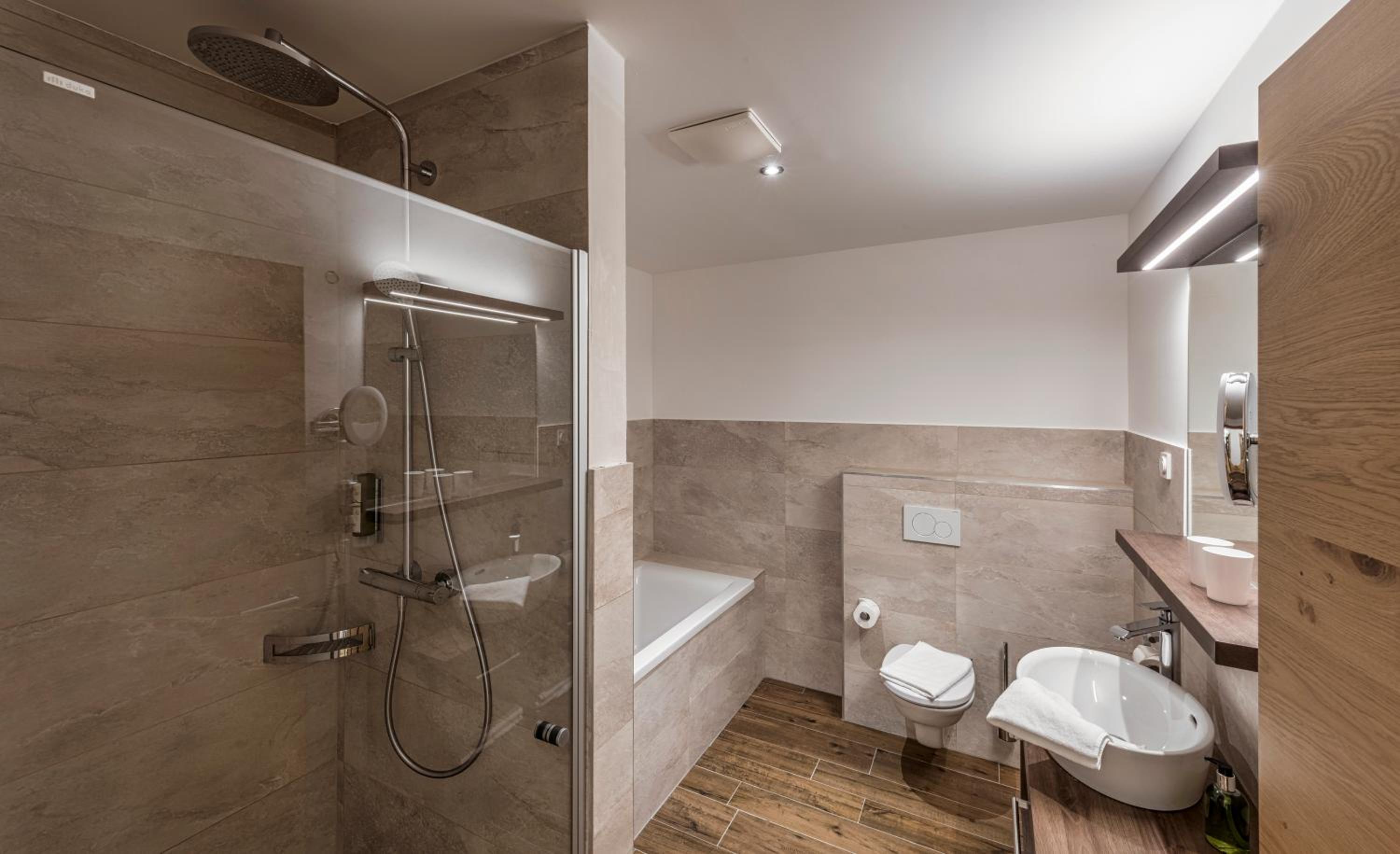Das Alpenland Hotel ist extrem Empfehlenswert. Das Personal, egal ob Management, Front Desk, Service, Bar oder Housekeeping ist außergewöhnlich hilfsbereit und zuvorkommend. Die Auswahl, Qualität und der Geschmack der Menus und der Buffets ist sehr gut. Das Silvester Vorspeisenbuffet war sehr, sehr gut und Umfangreich. Pool, Saunen und Relaxbereich sind ausreichend groß und bieten einen tollen Ausblick auf die Berge. Die Bäder scheinen frisch renoviert. Die Fußbodenheizung in den Bädern ist sehr angenehm. Die Tiefgarage ist auch mit großen SUVs gut zu befahren. Der Schikeller ist Super. Habe ich in dieser Form noch nicht gesehen. Die Lage ist mitten im Ort. Alle Geschäfte, Bars und Restaurants sind gut fußläufig zu erreichen. Perfekter Ski-In, keine 20m vom Schikeller. Unser Zimmer hatte einen tollen Ausblick auf die Berge.