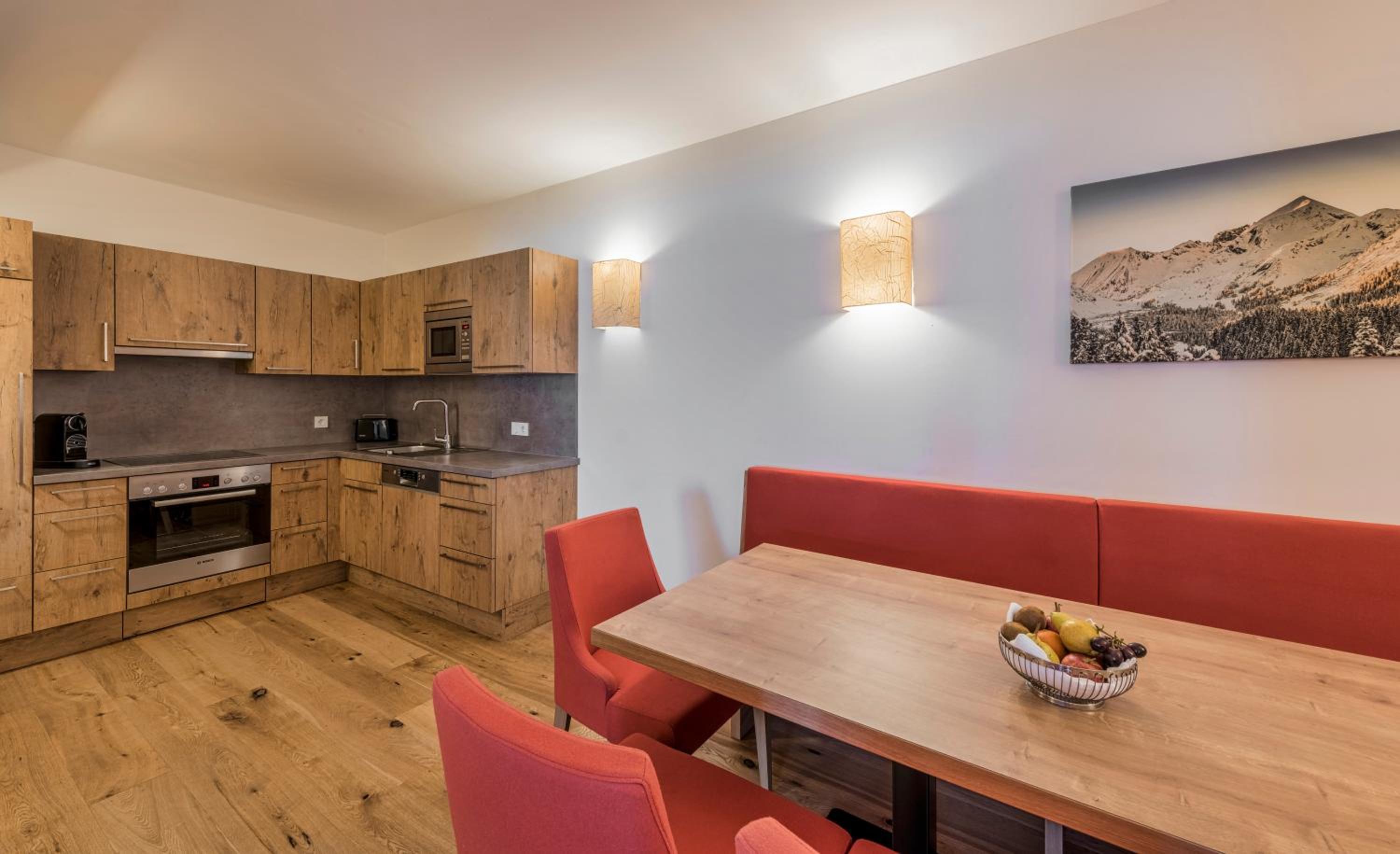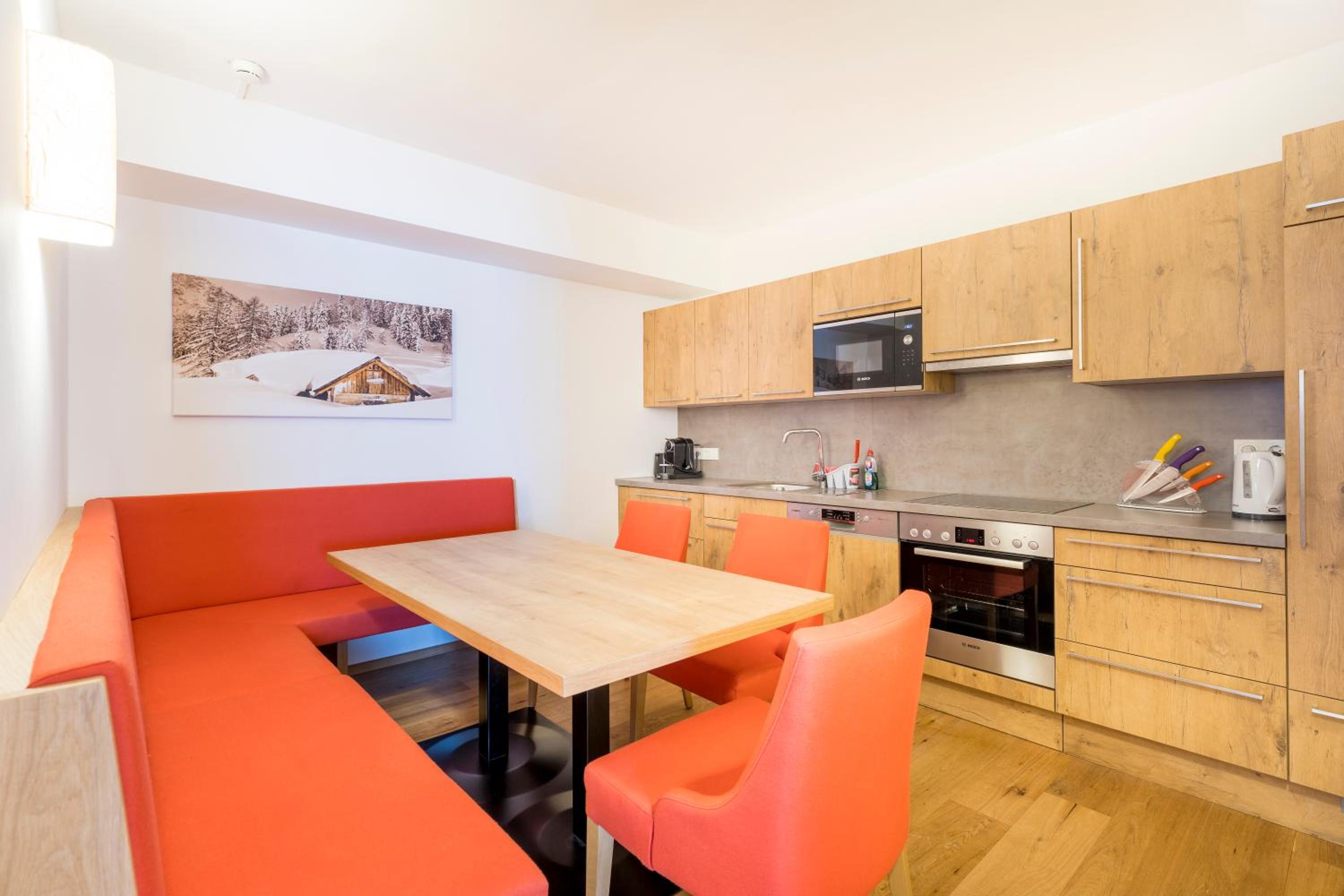 Everything was beyond expectations. The staff are very accommodating and friendly. The parking is in a garage, and everything is connected by elevators. The ski room is perfect. The first lift is less than 50 meters away—you literally just cross the street, put on your skis, and ski down to the Zentrum lift.