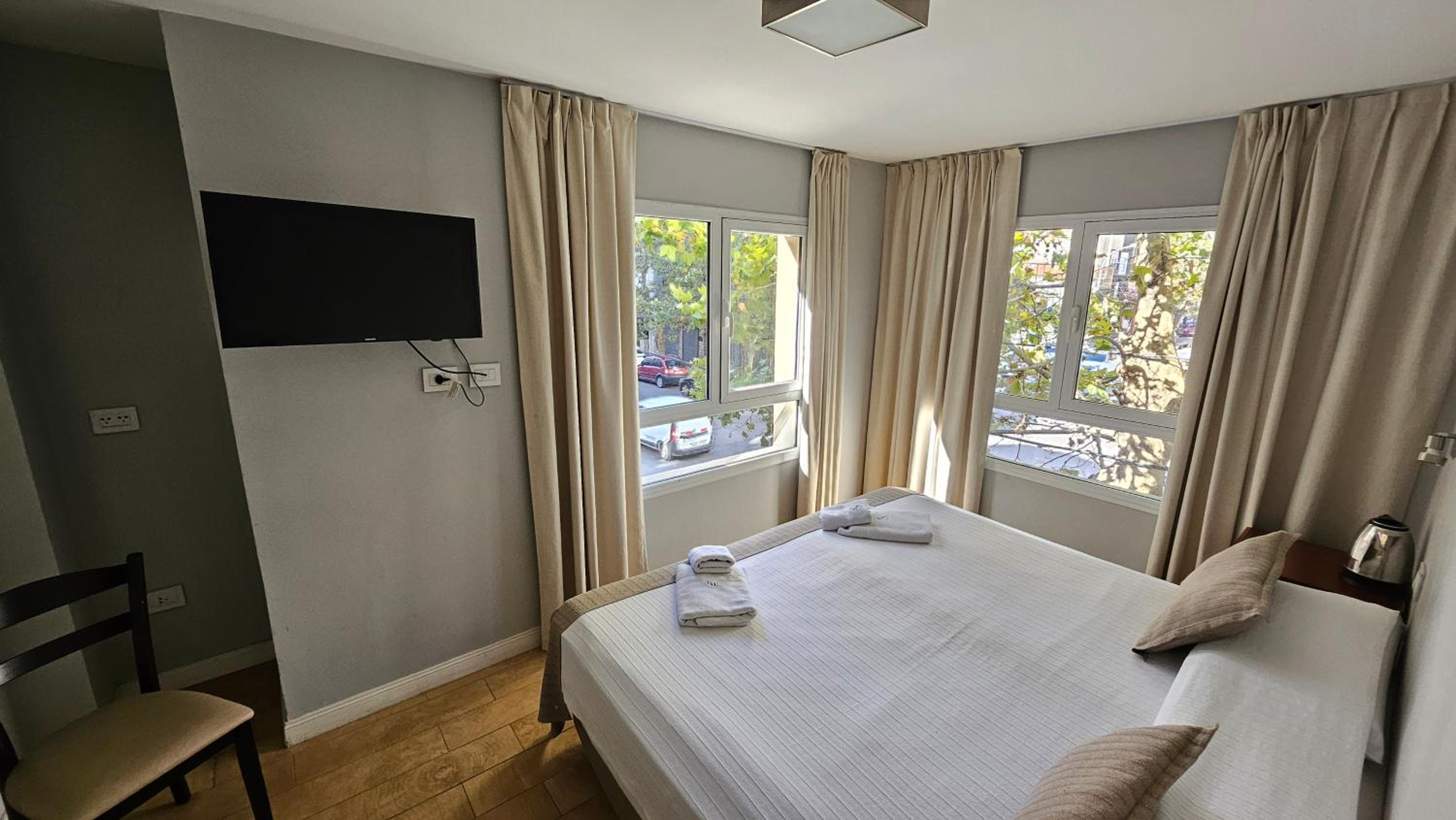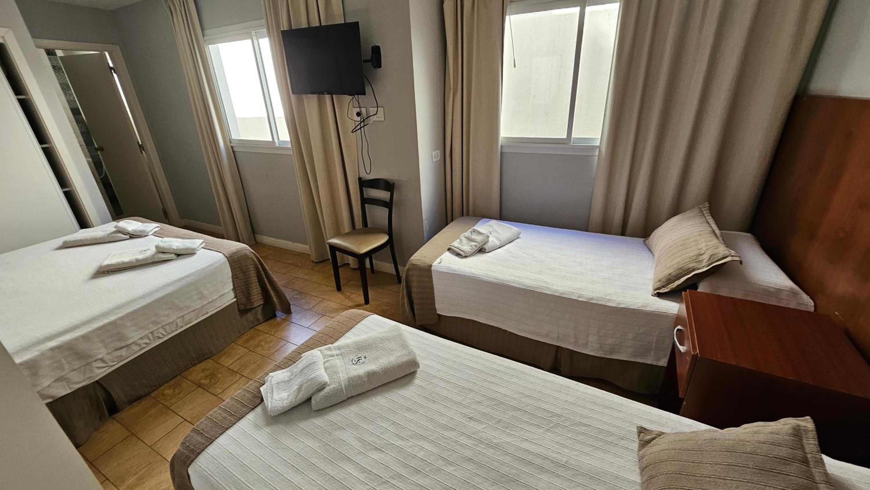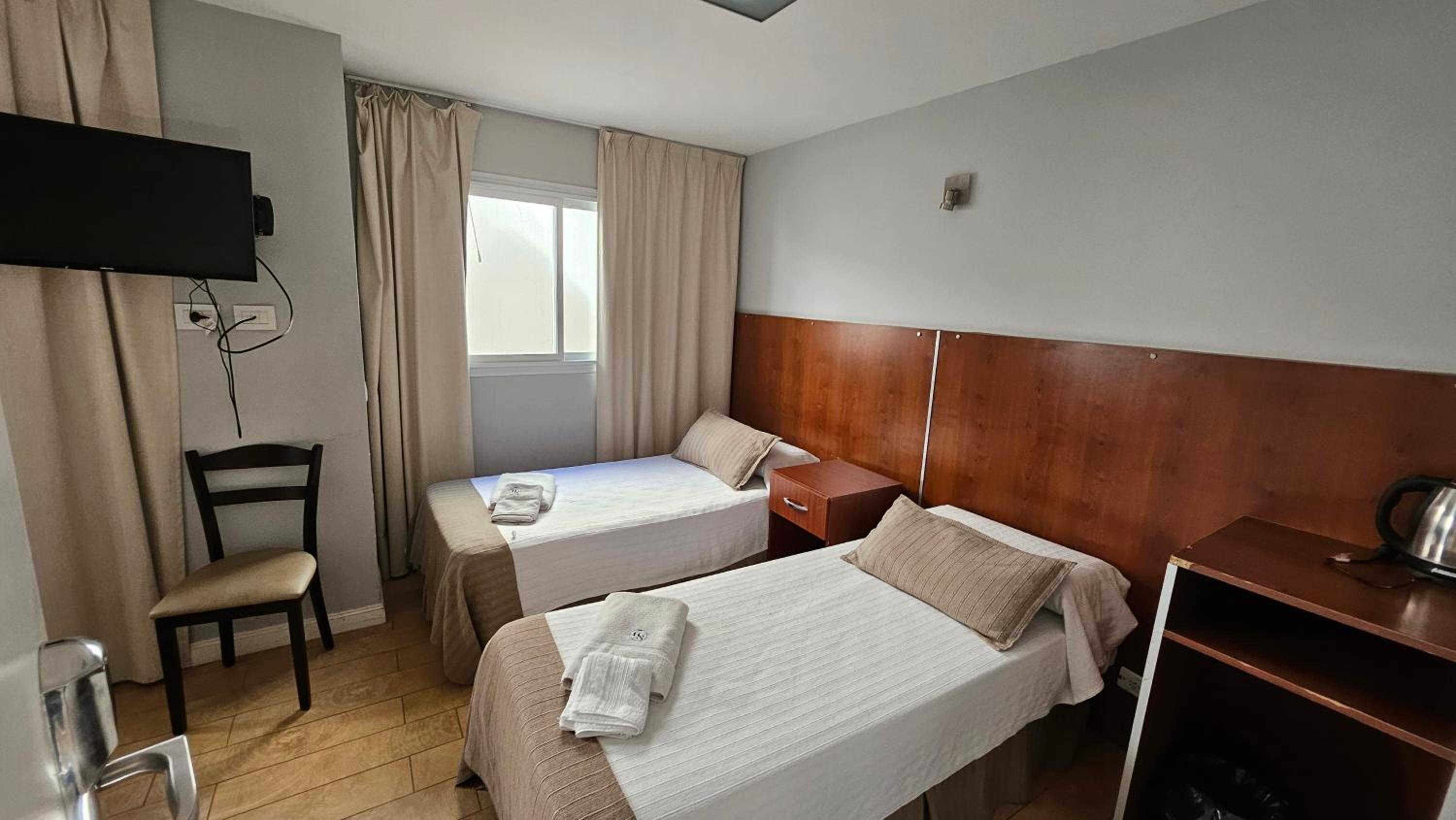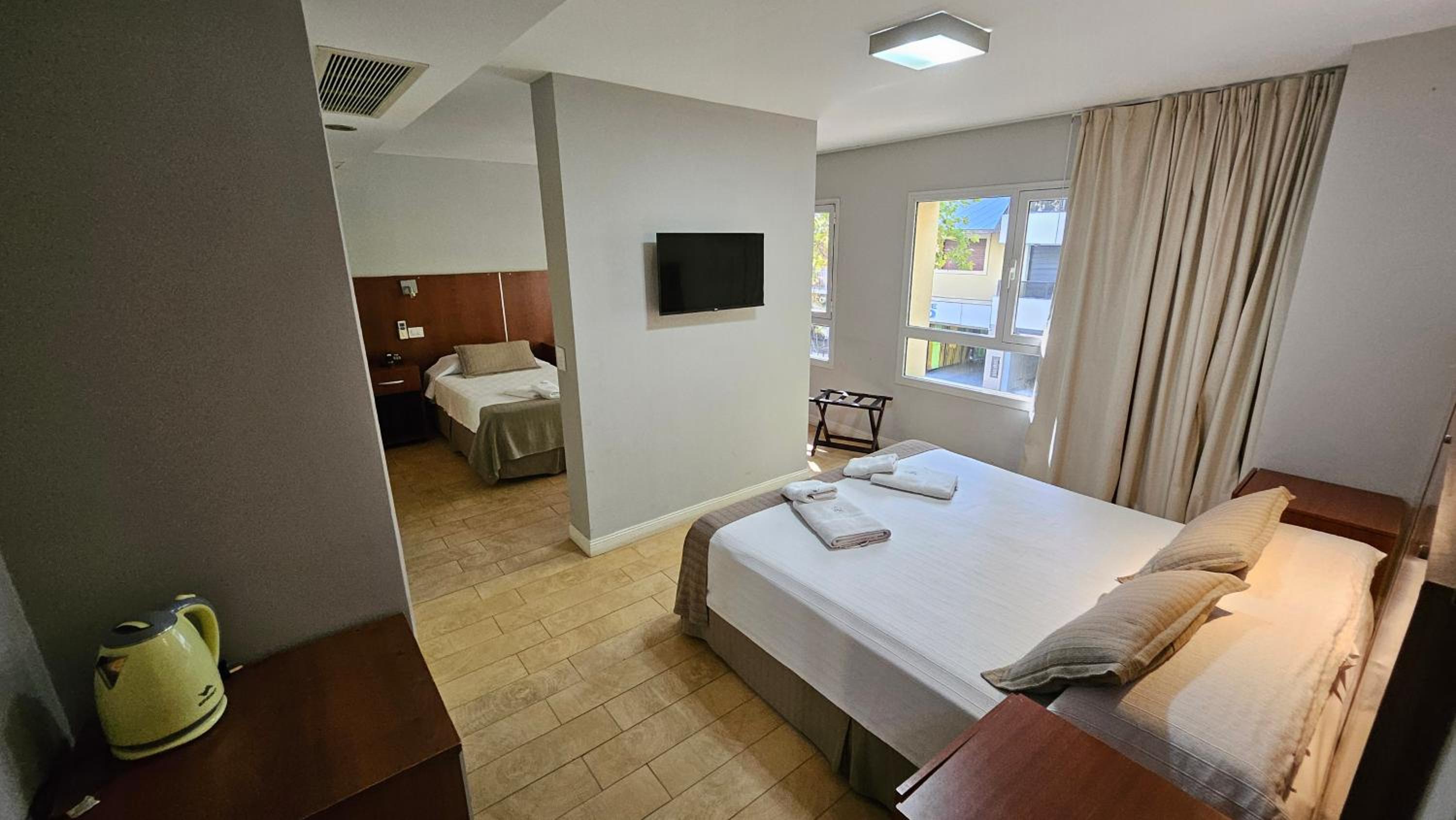 Me cobraron precio más que mostraba Booking, deberían cobrar 127.000 pero cobraron 129.300, pague 130.000 pero no me devolvieron 700... No había ni heladera, ni mesa .ni vasos, ni útiles básicos para poder comer. la pava tenía una tapa rota y enchufe muy bajo, tenía que poner pava al piso para calentar. Calificaron como 3 estrellas, pero solo pusieron 2 toallas, 1 shampoo 1 jabón y 1 acondicionador. Limpieza podría ser mejor, pelos en la bañera y en inodoro. Primer noche sentí mucho olor de cigarillos, en habitación, comenté en recepción dia seguiente y resolvieron. El desayuno podría ser mejor, sólo cosas dulces, no hay opción si sos diabético, ni frutas, nada de proteina.