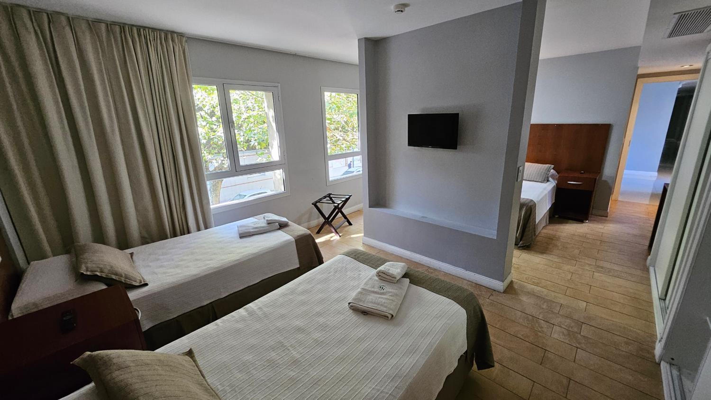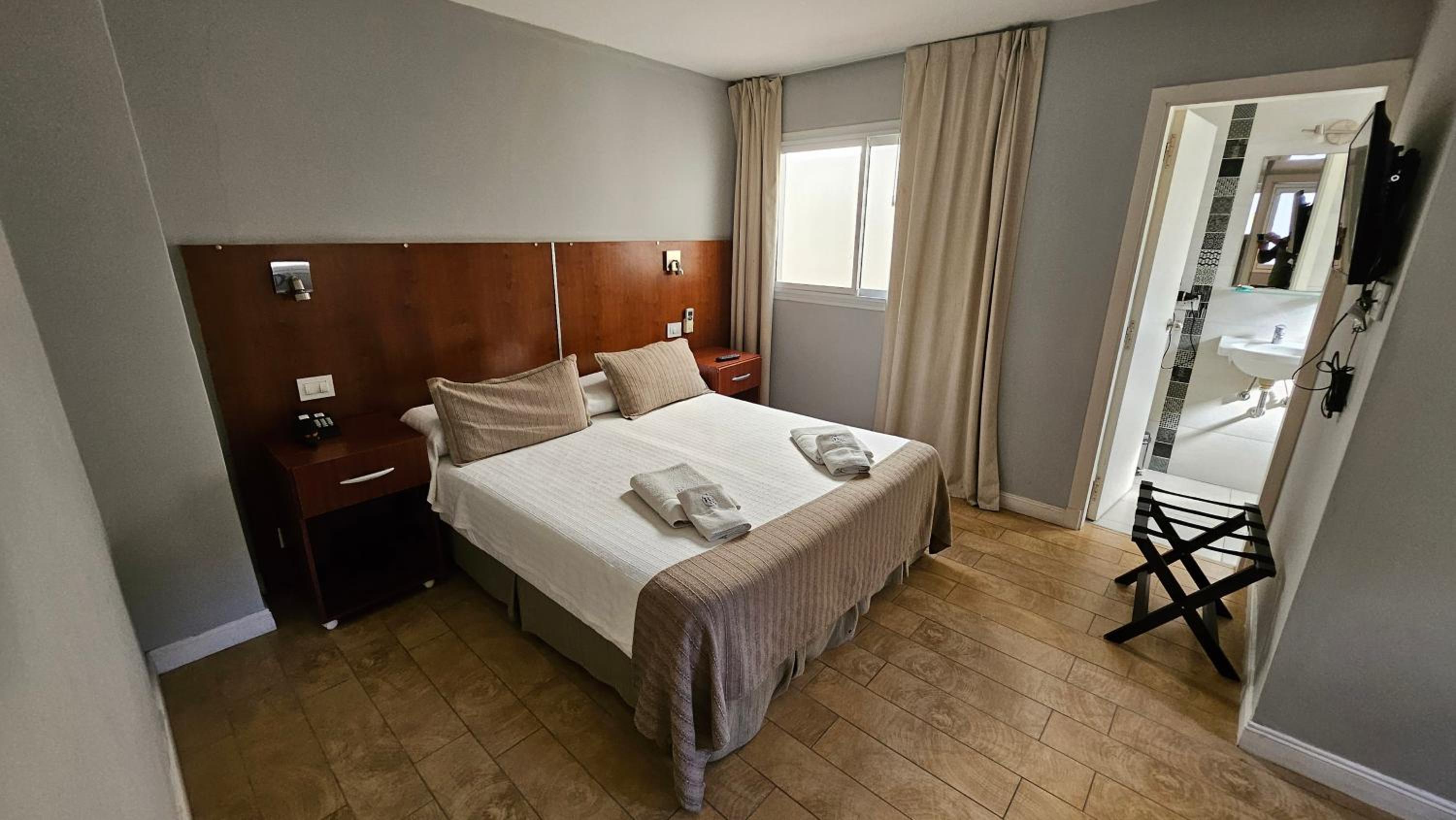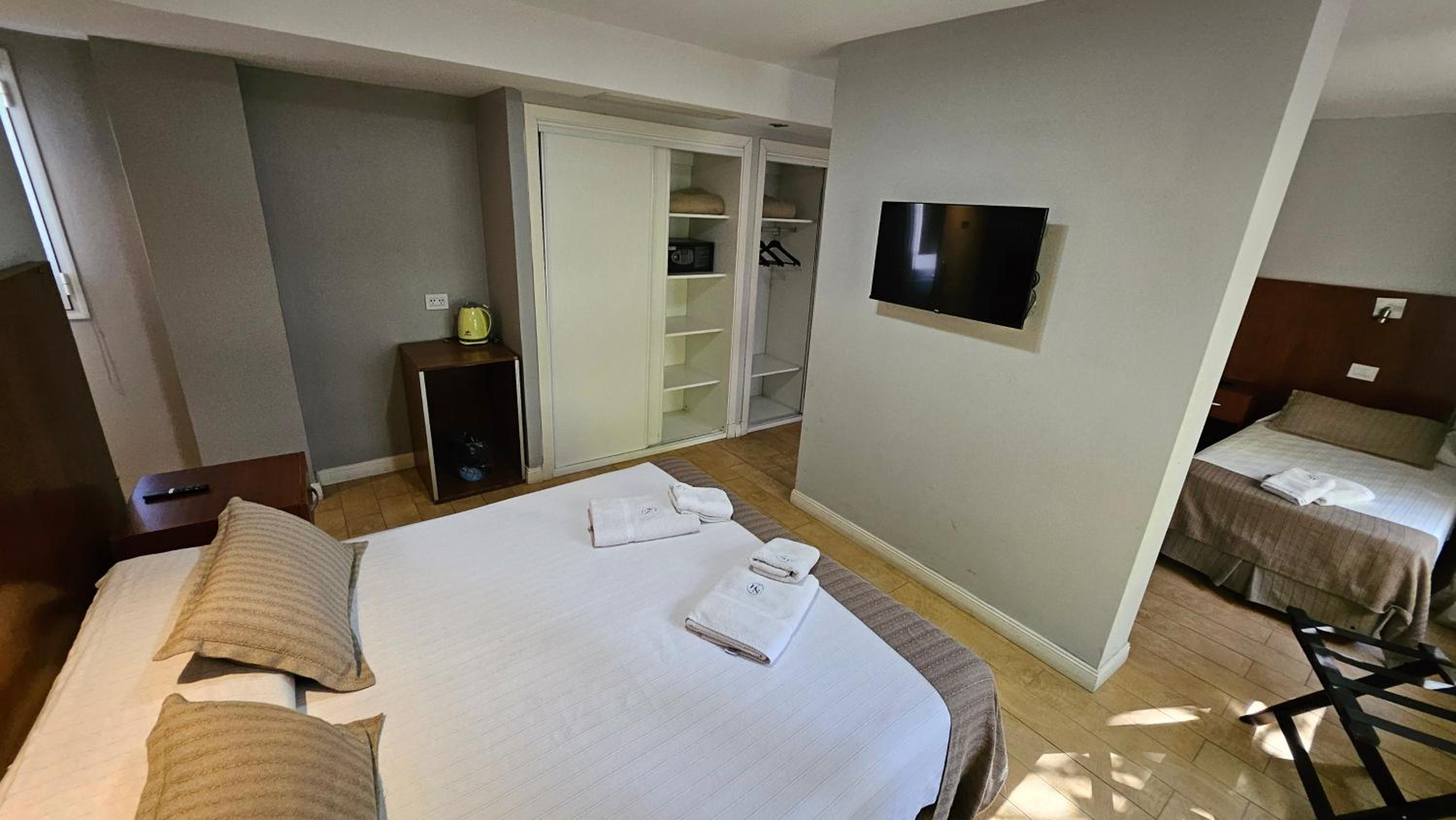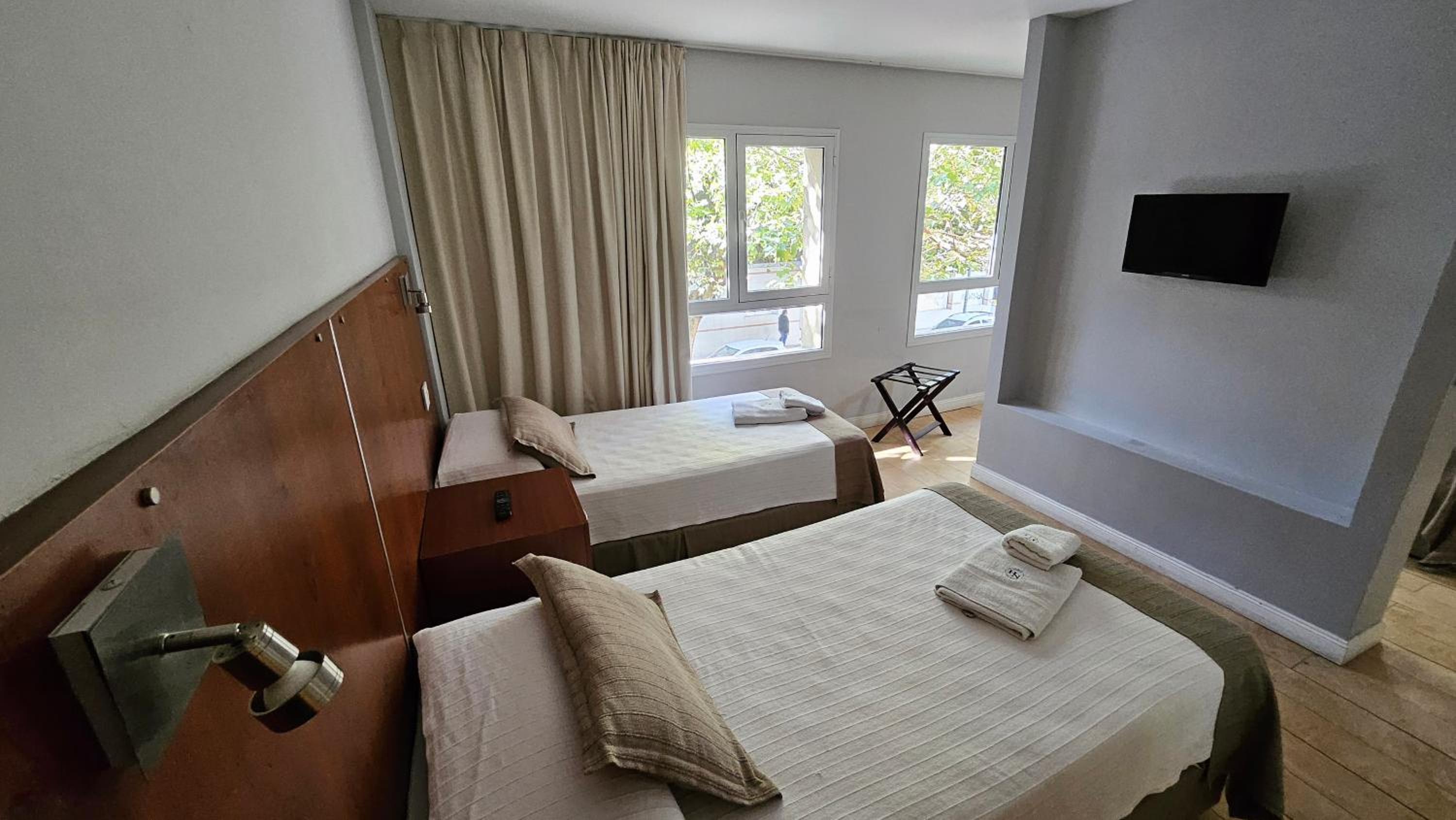 Me cobraron precio más que mostraba Booking, deberían cobrar 127.000 pero cobraron 129.300, pague 130.000 pero no me devolvieron 700... No había ni heladera, ni mesa .ni vasos, ni útiles básicos para poder comer. la pava tenía una tapa rota y enchufe muy bajo, tenía que poner pava al piso para calentar. Calificaron como 3 estrellas, pero solo pusieron 2 toallas, 1 shampoo 1 jabón y 1 acondicionador. Limpieza podría ser mejor, pelos en la bañera y en inodoro. Primer noche sentí mucho olor de cigarillos, en habitación, comenté en recepción dia seguiente y resolvieron. El desayuno podría ser mejor, sólo cosas dulces, no hay opción si sos diabético, ni frutas, nada de proteina.