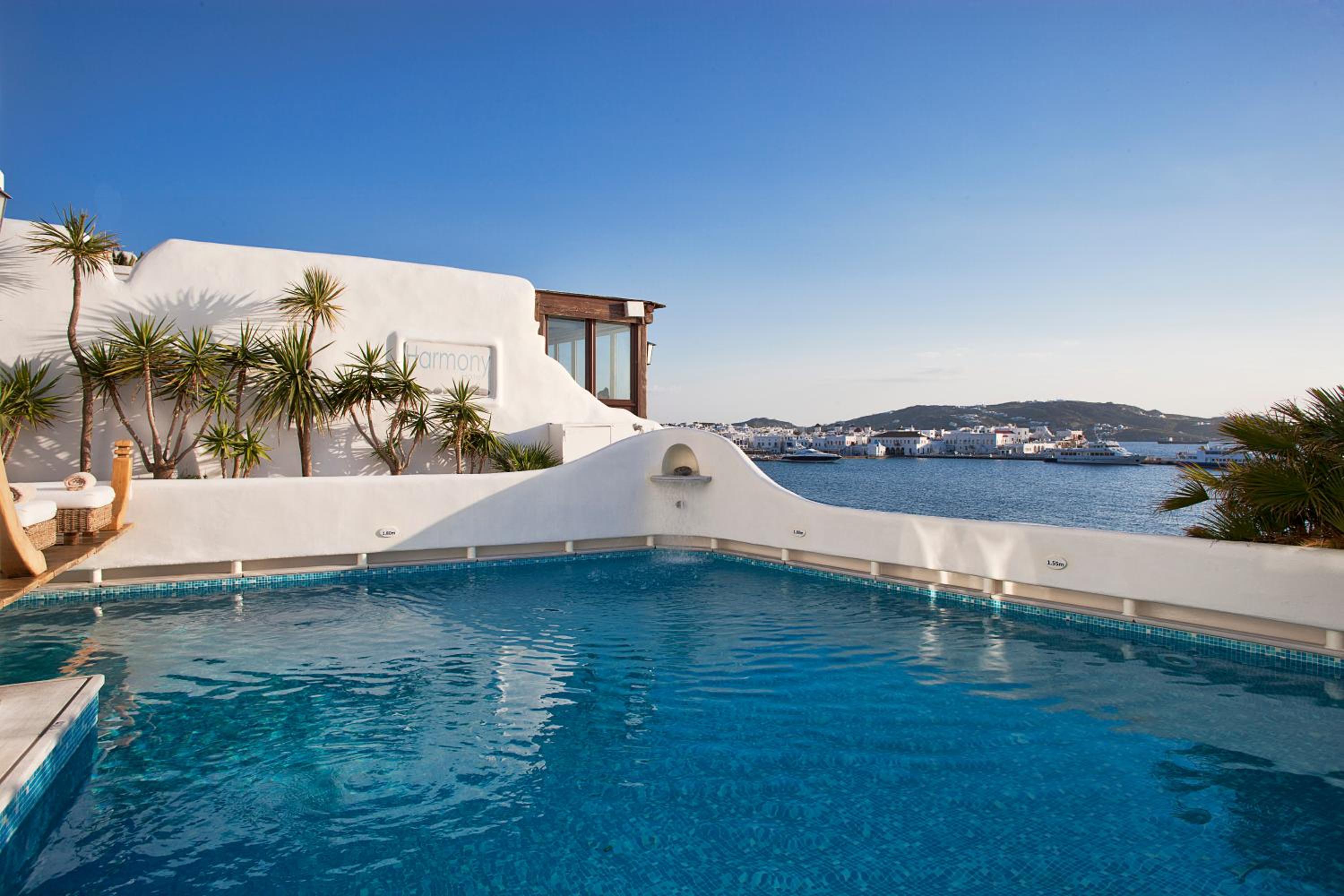 Experience the vibrant heart of Mykonos with entertainment options just steps away from Harmony Hotel. Book now to enjoy a luxurious stay with stunning views and top-notch amenities.