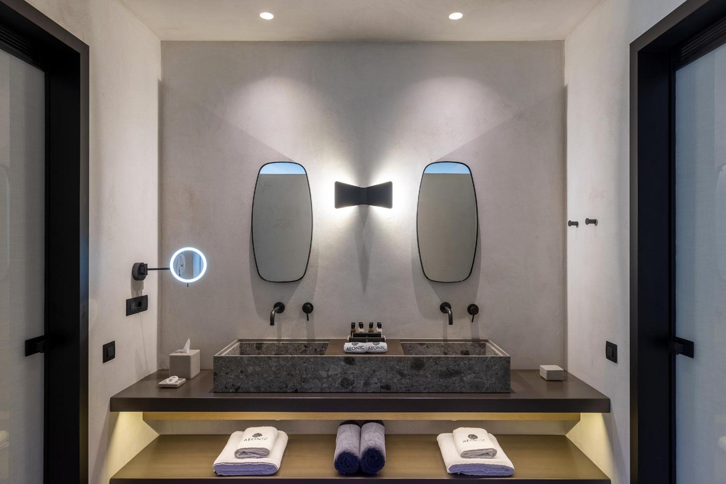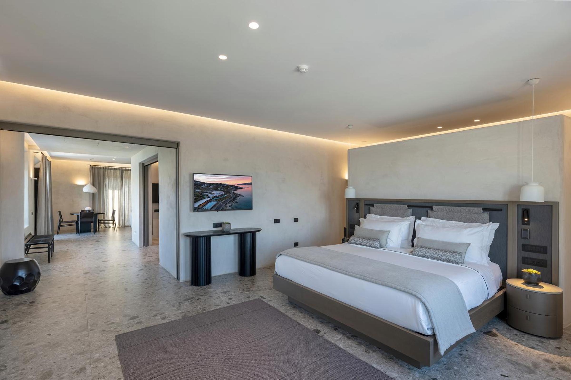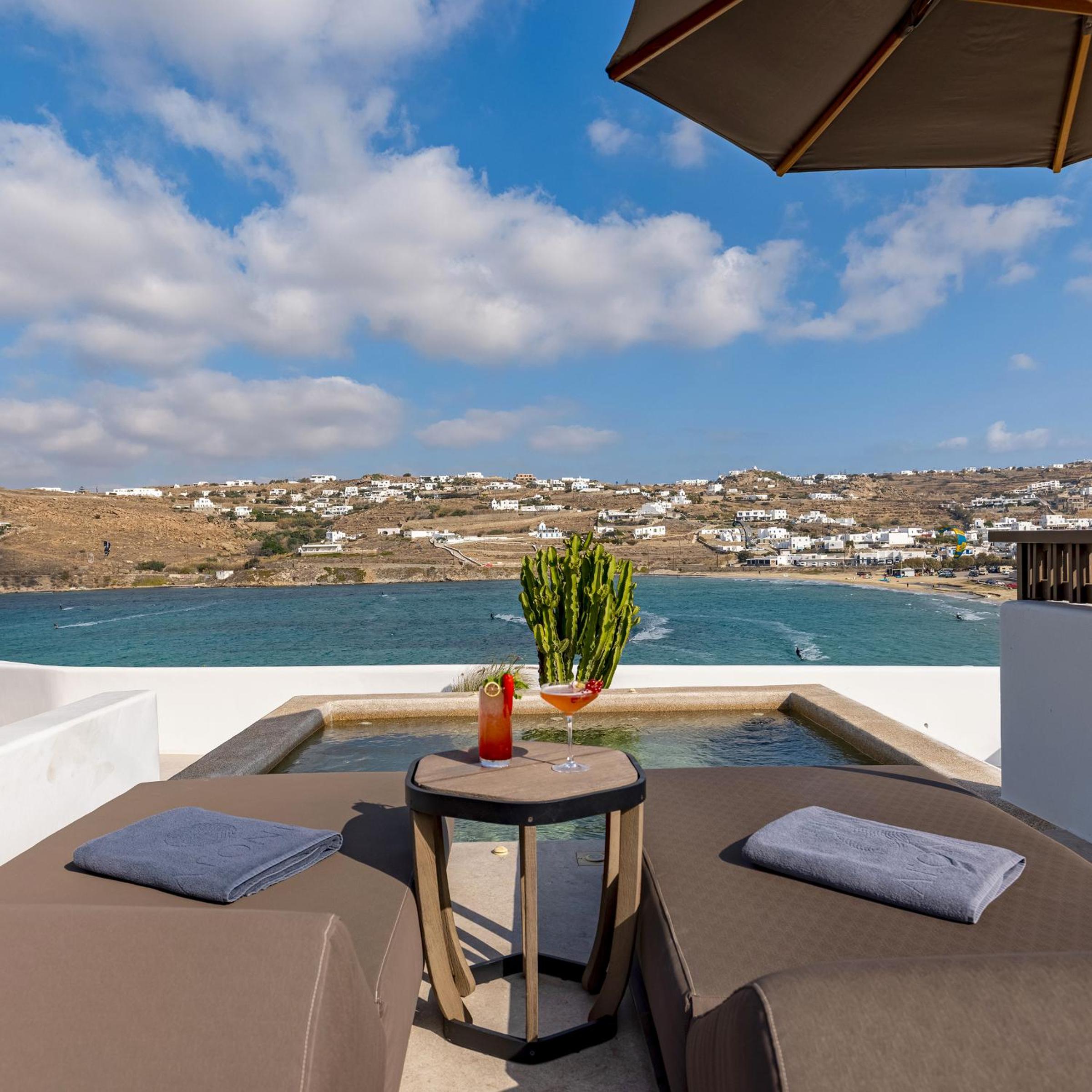 Aeonic Suites and Spa in Mýkonos City offers 5-star accommodation with air-conditioned rooms, private bathrooms, and stunning sea views. Enjoy the convenience of room service and free WiFi during your stay.