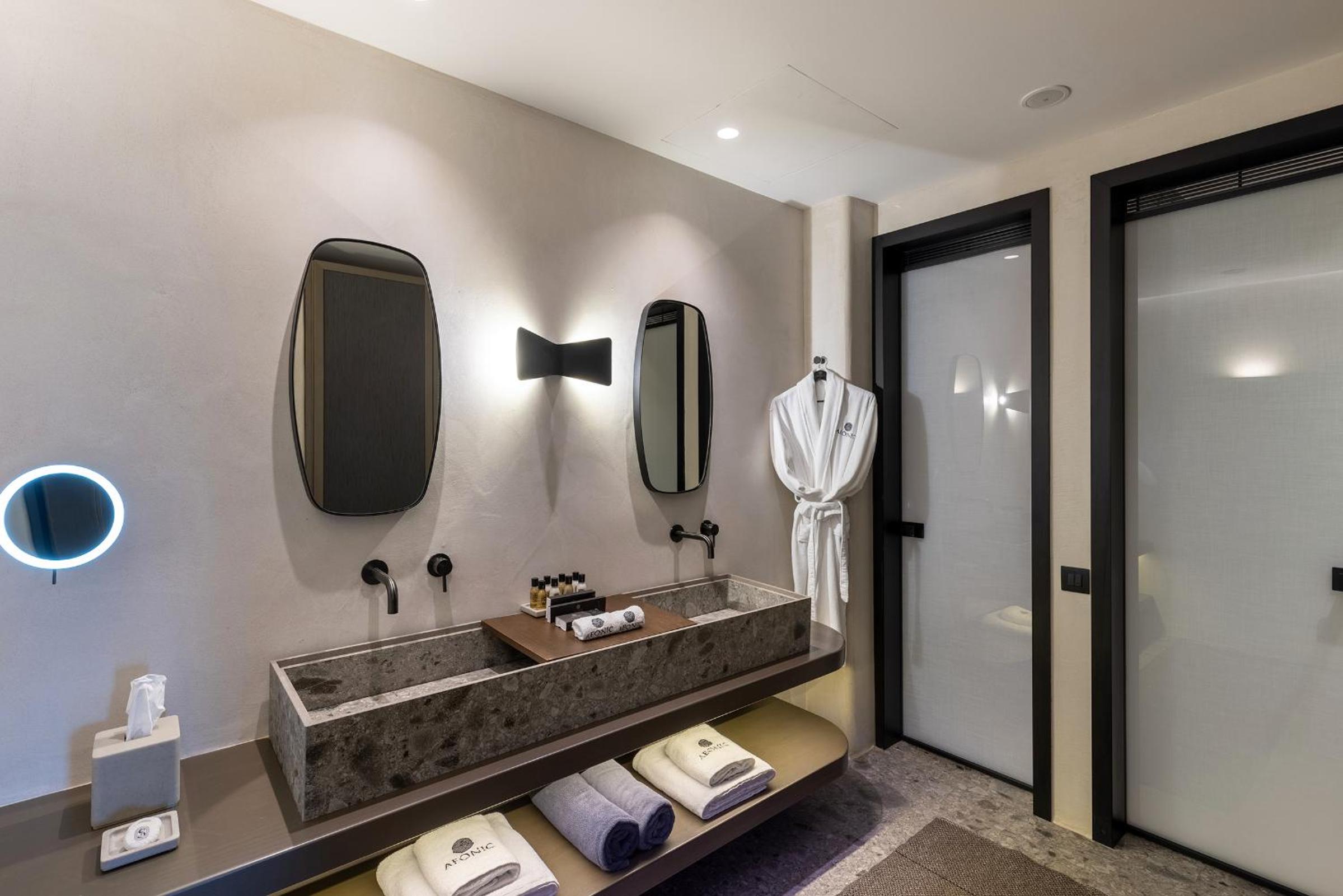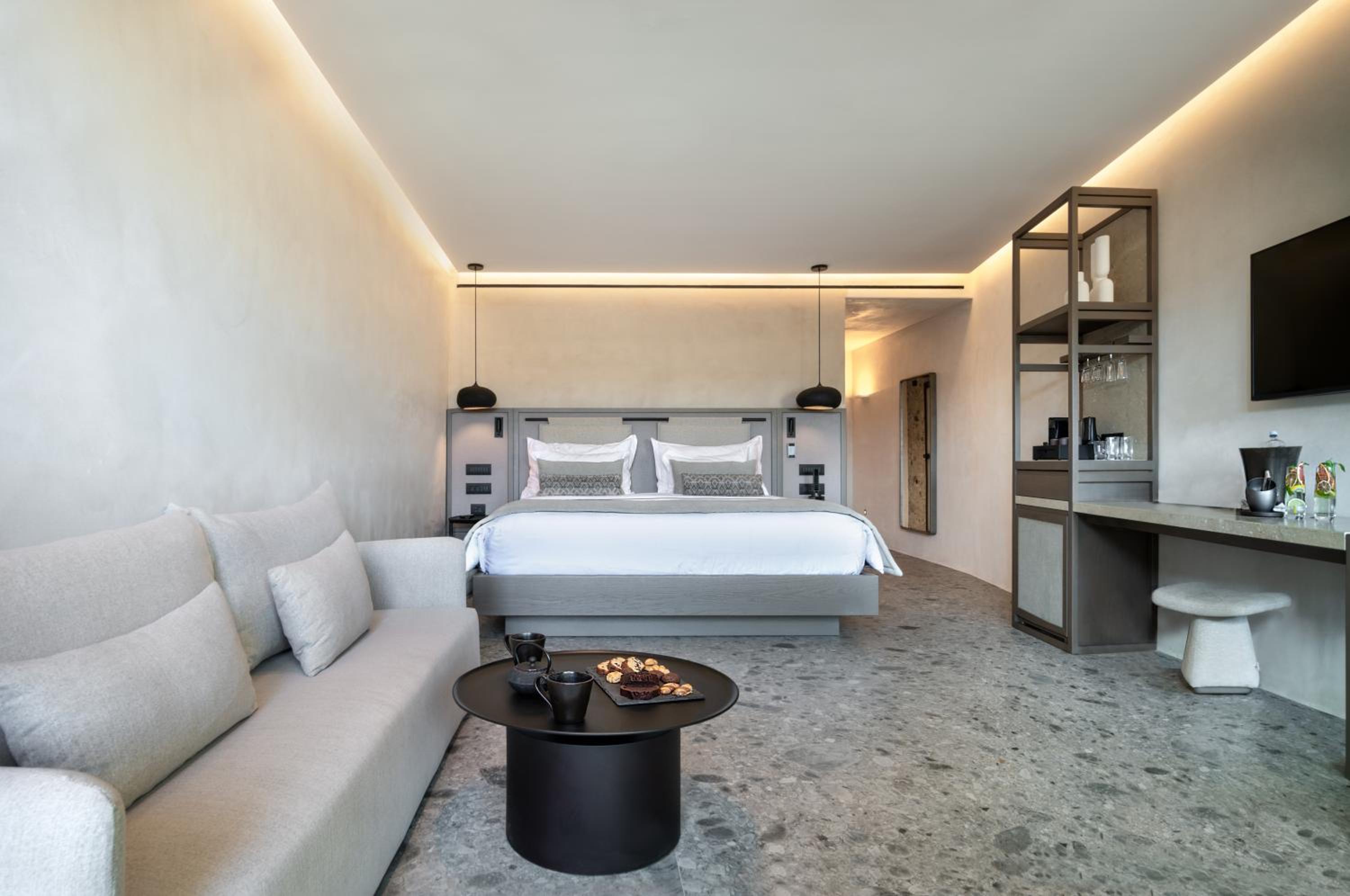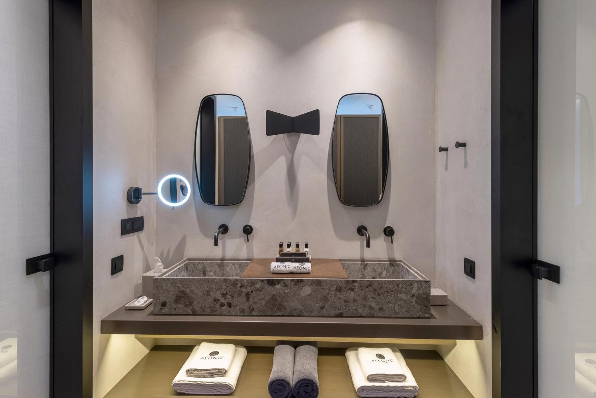 Aeonic Suites and Spa in Mýkonos City offers 5-star accommodation with air-conditioned rooms, private bathrooms, and stunning sea views. Enjoy the convenience of room service and free WiFi during your stay.