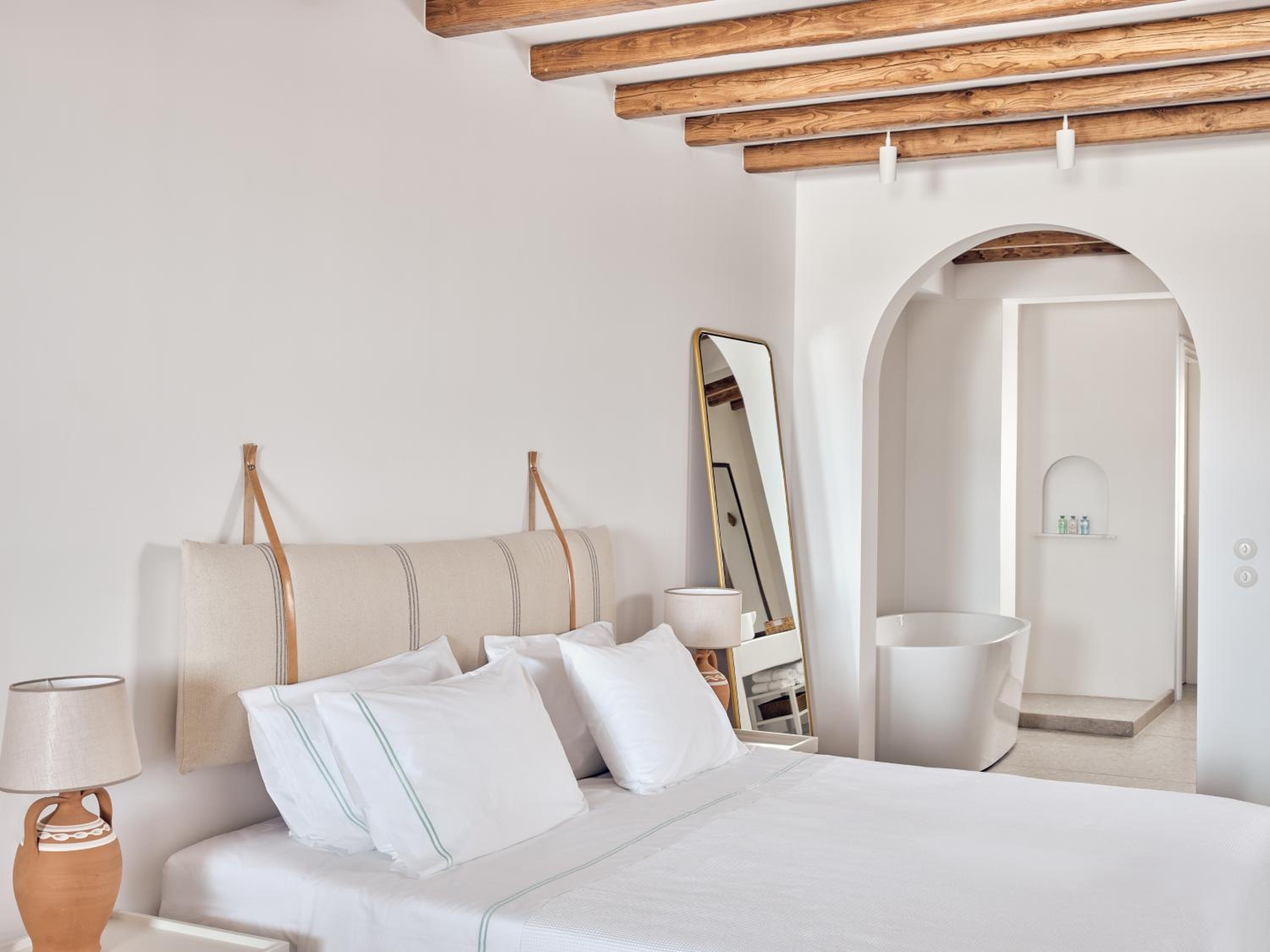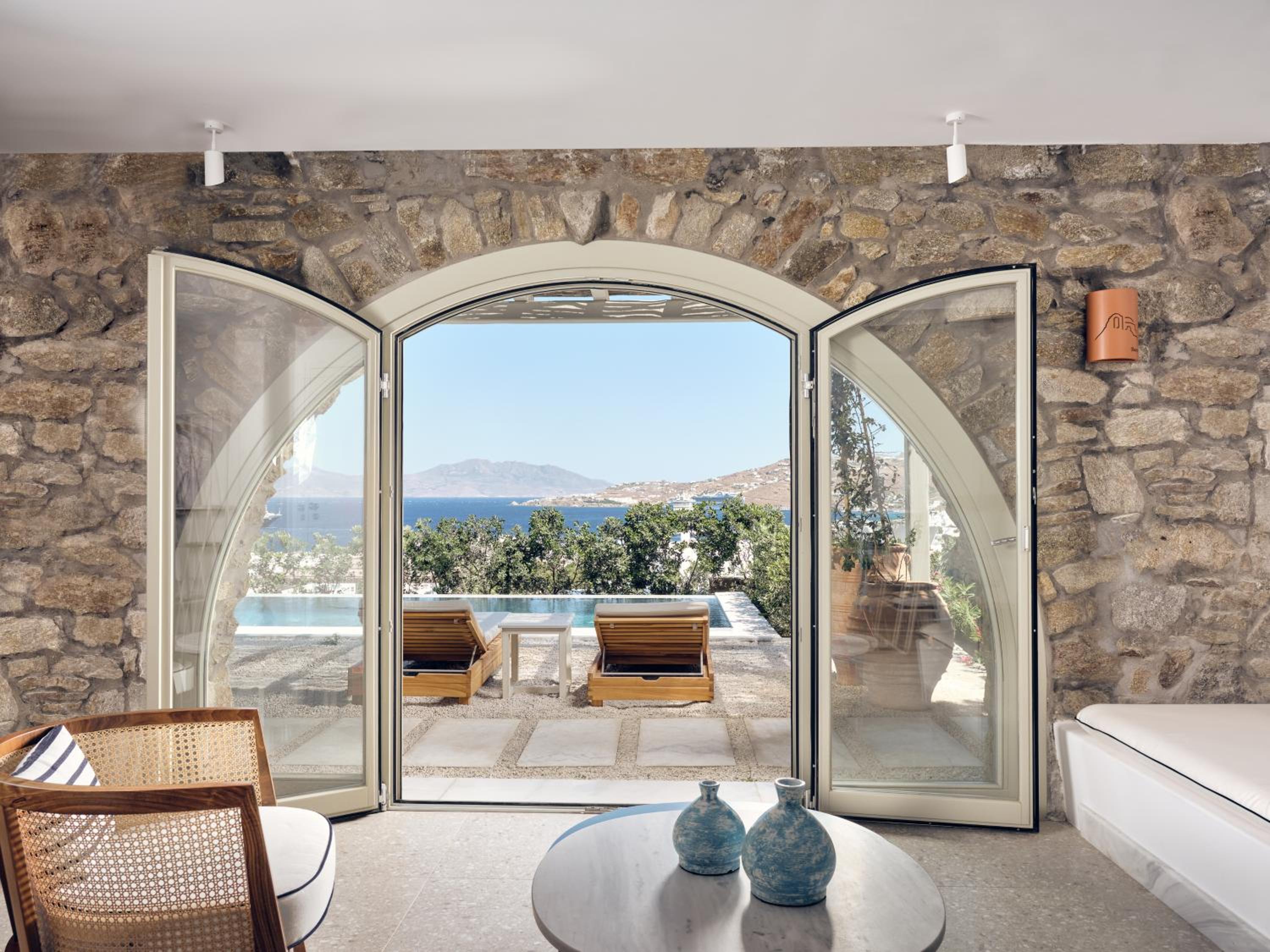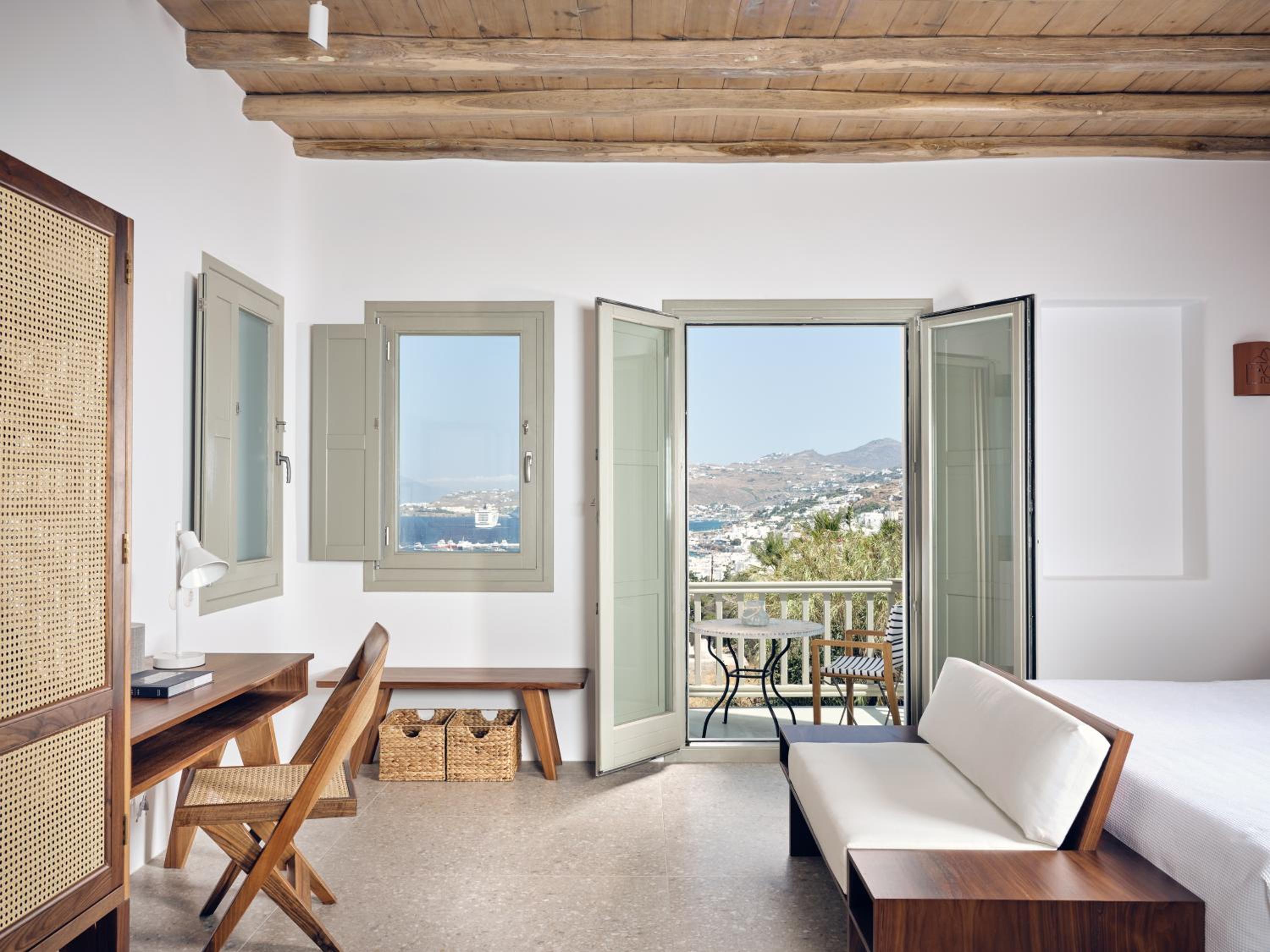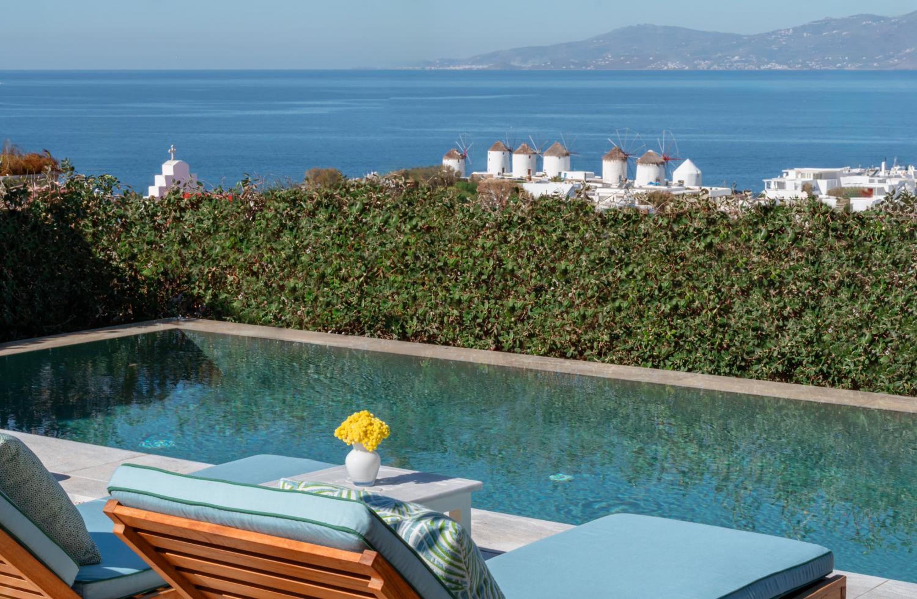 Breathtaking Views: Enjoy panoramic views over the Aegean Sea and Mykonos Town from your room or suite, some of which feature a private pool or outdoor hot tub.