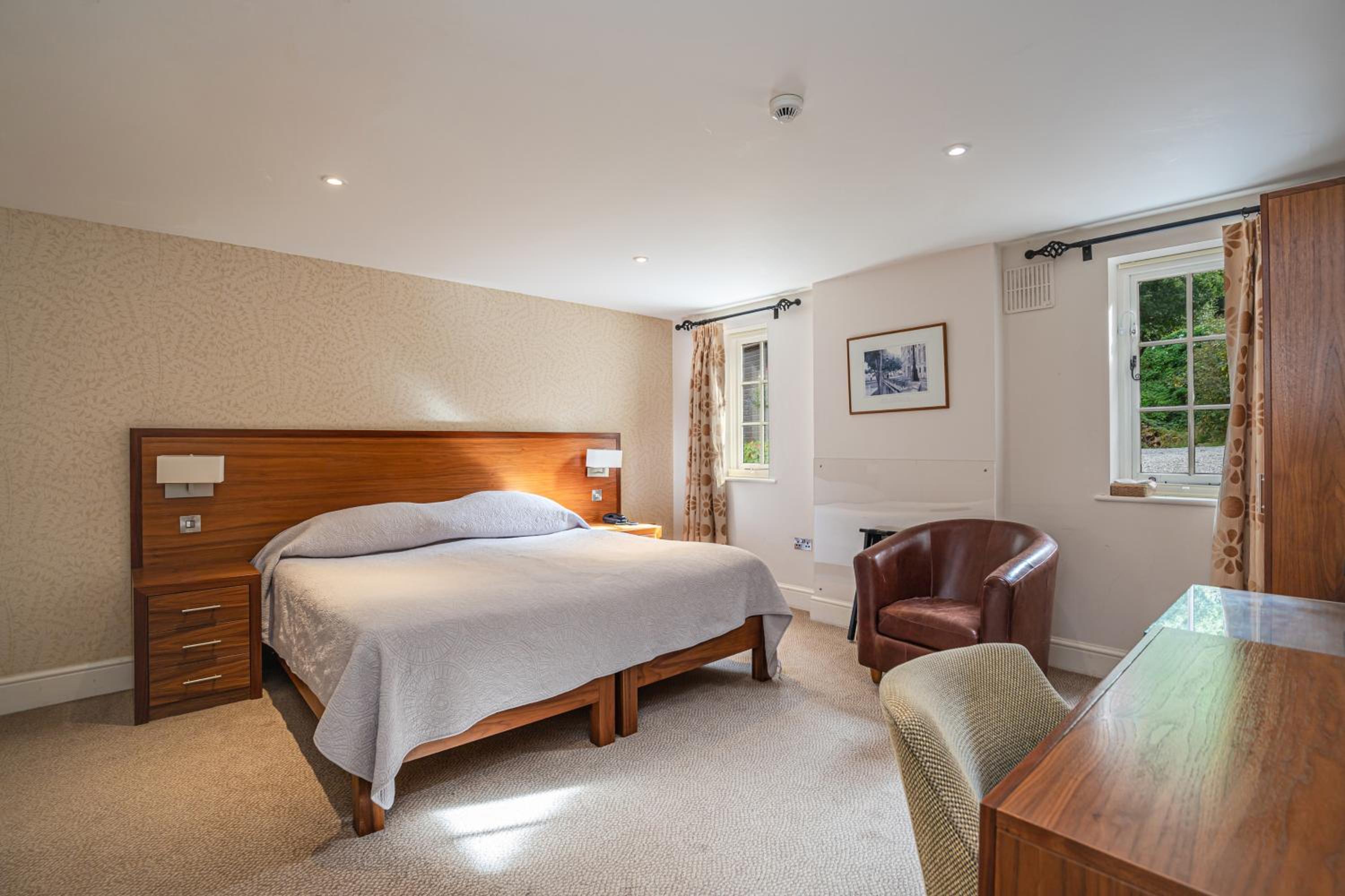 Indulge in the comfort of en suite rooms equipped with modern conveniences, including TVs, free Wi-Fi, and complimentary sherry. Unwind in the expansive gardens, enjoy drinks in the cozy lounge, and savor delectable meals at the on-site restaurant.