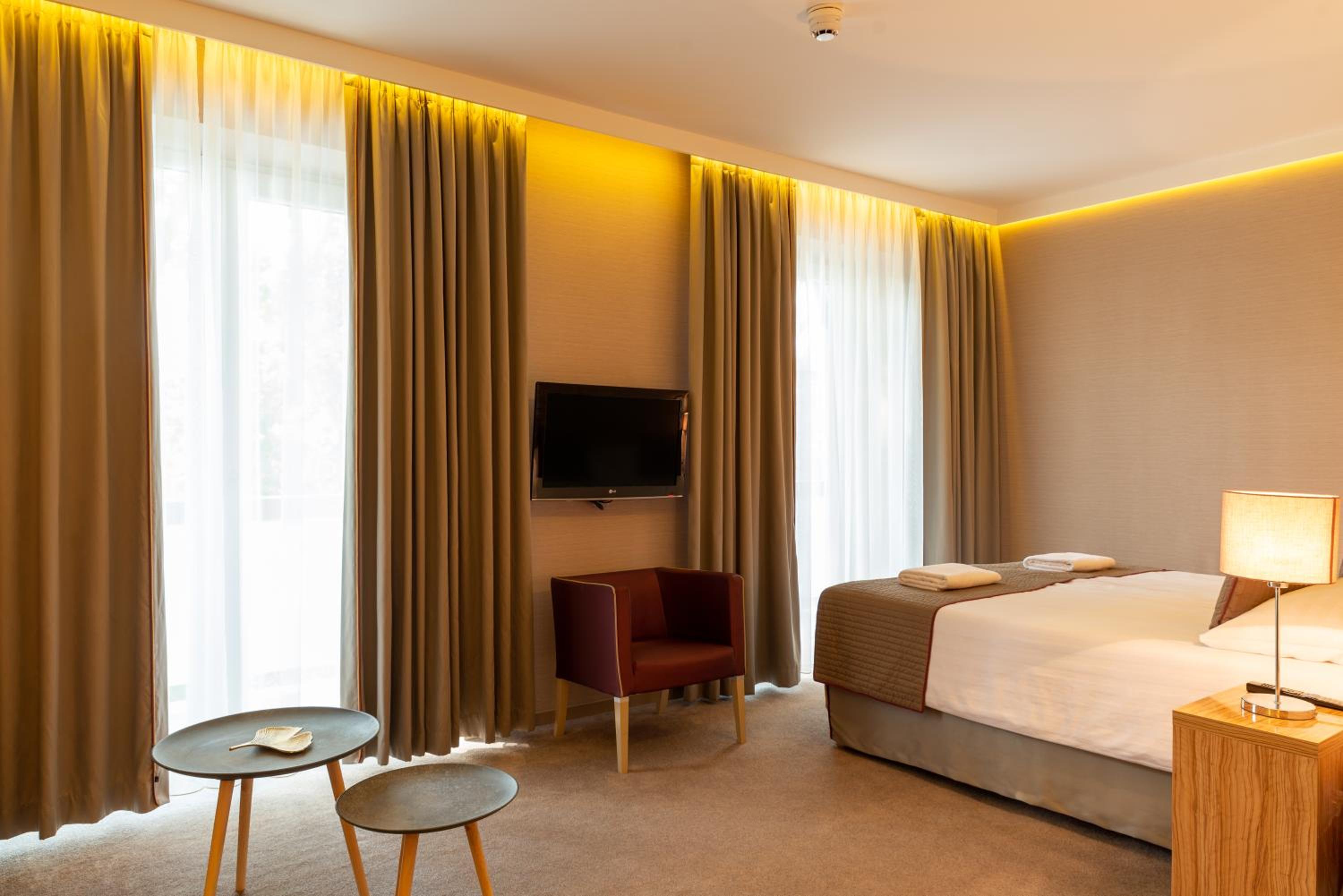 Hotel Pagony Wellness & Conference offers a serene escape with a 55-hectare green park and stylish accommodation featuring flat-screen TVs. Enjoy the convenience of air-conditioned rooms, some with balconies and minibars, and modern bathrooms with showers or bathtubs.