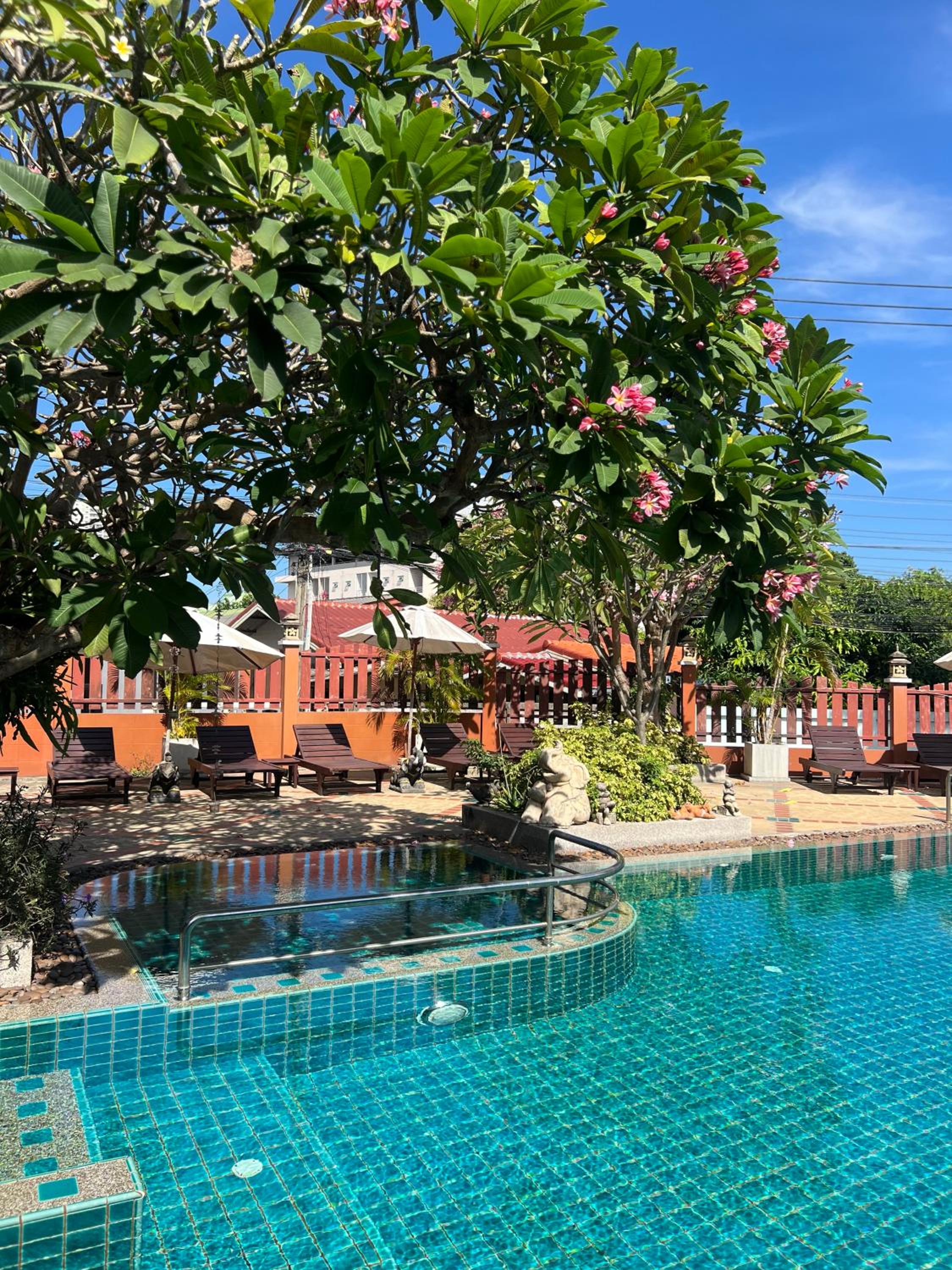 En retrait de la route, au calme, mais à proximité de Nuklea road et des taxis 10 baths.