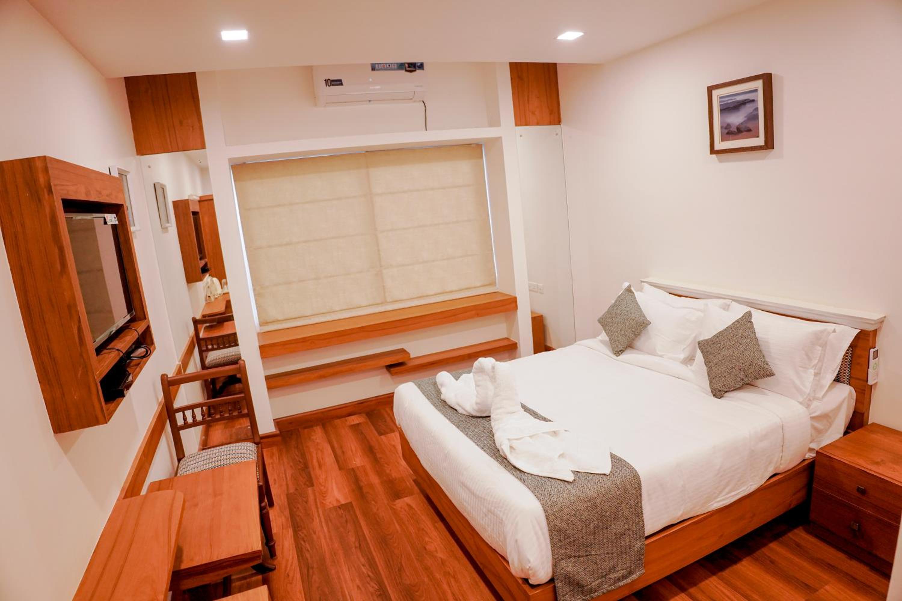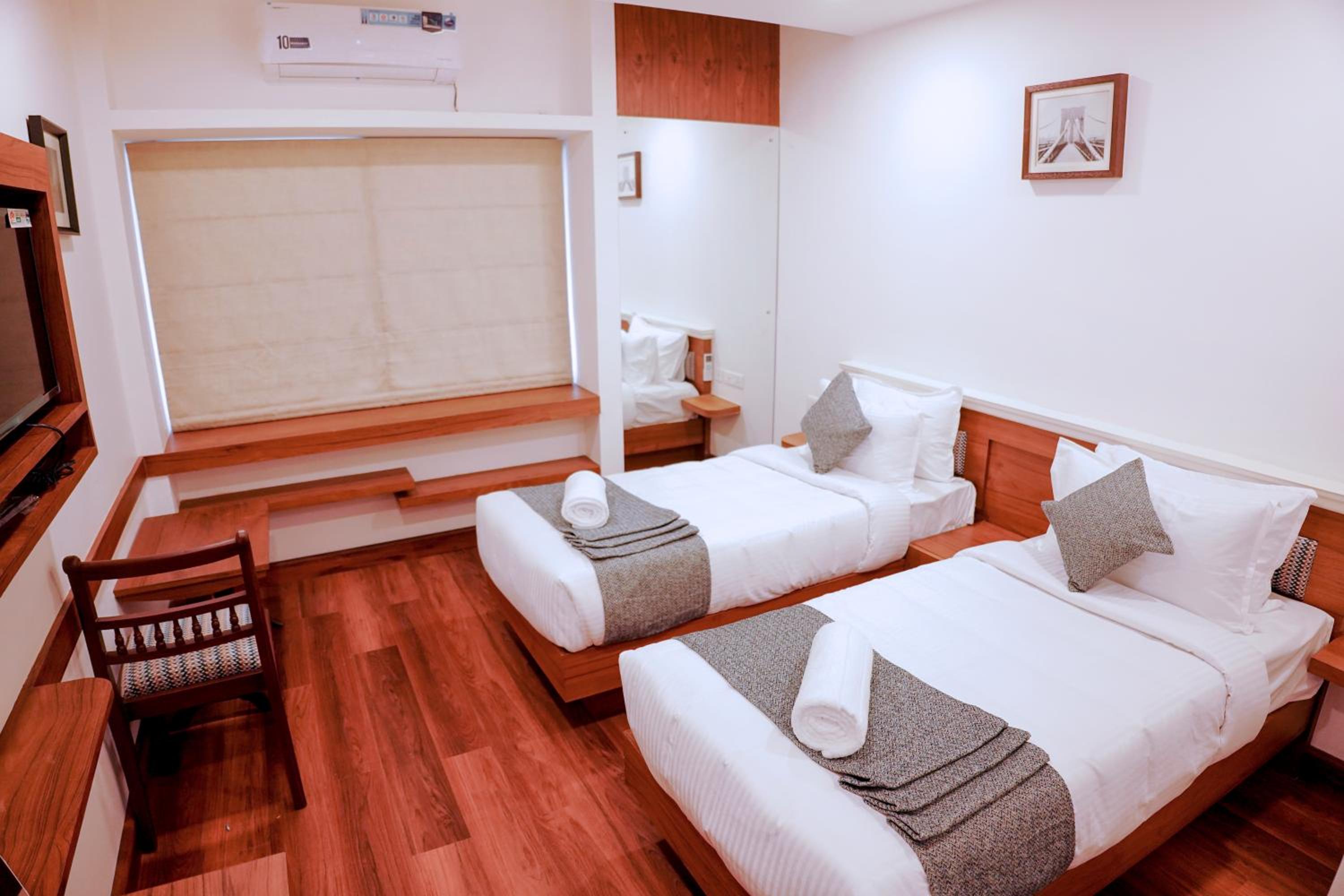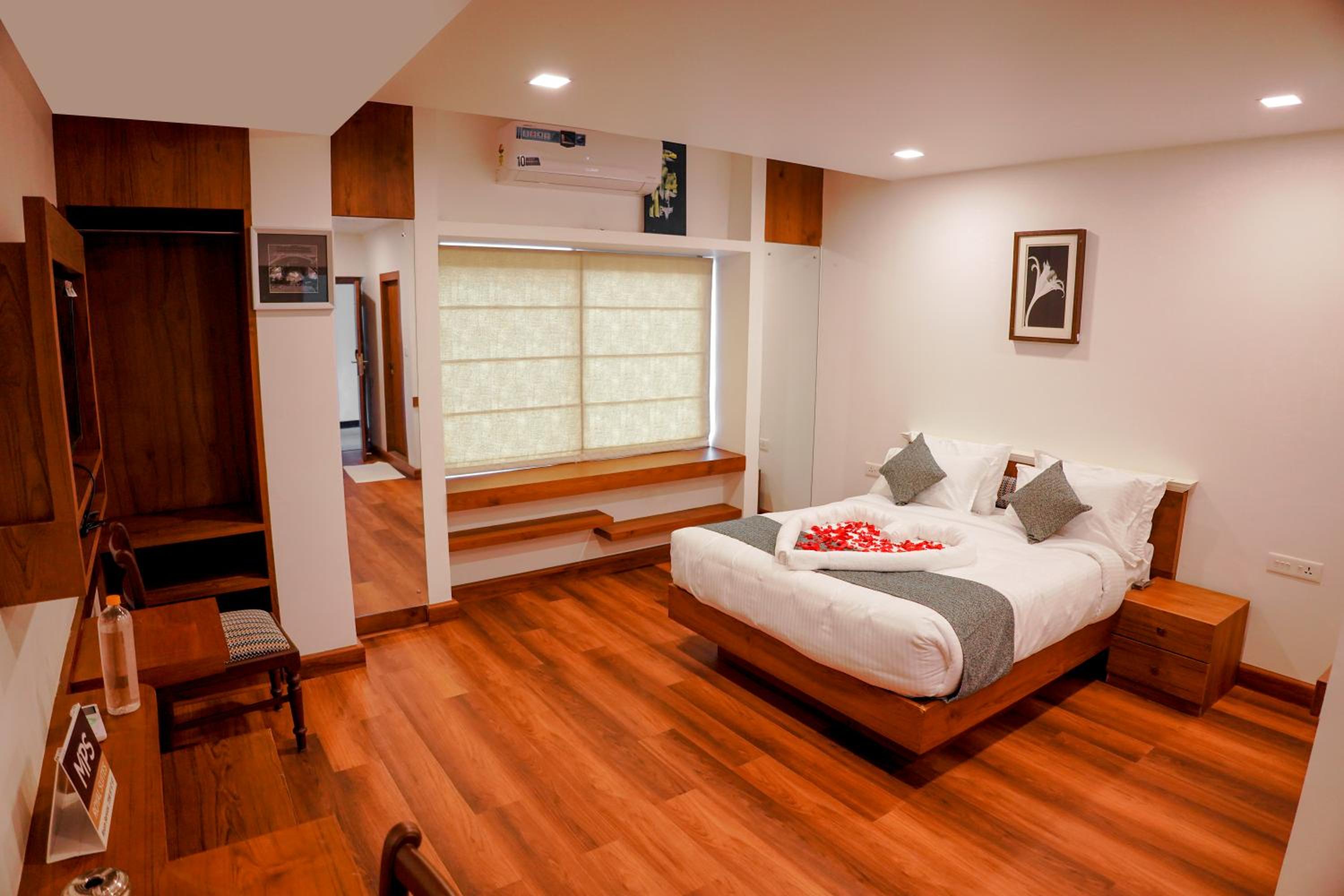 Luxurious Accommodation: Experience comfort and convenience at MPSROYALSUITES in Perintalmanna. Indulge in our well-appointed guest rooms featuring modern amenities like air conditioning, flat-screen TVs, and cozy bedding. Some rooms even boast a private balcony for a relaxing retreat.