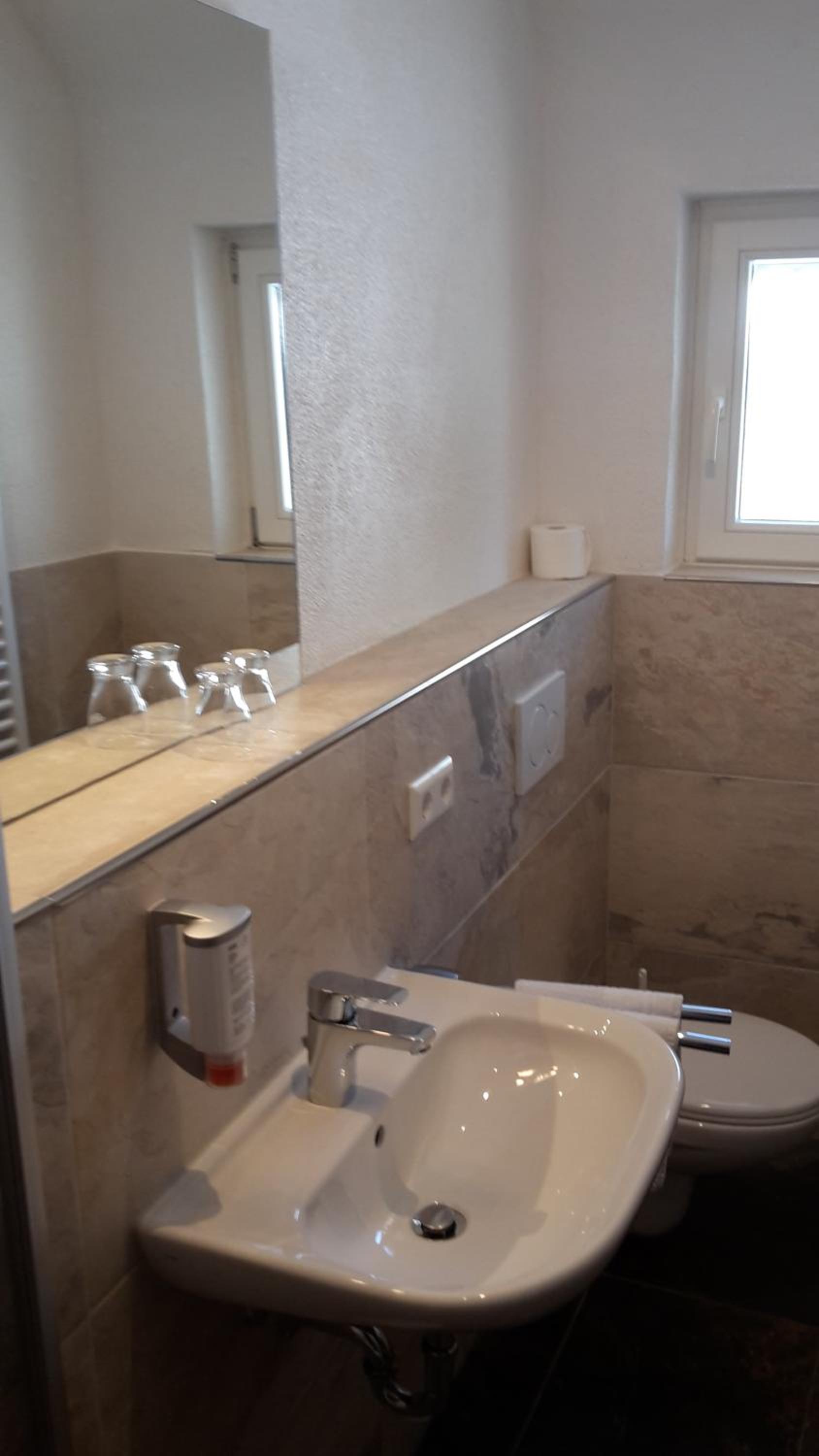 La struttura è facile da raggiungere e mette a disposizione un comoda parcheggio gratuito. La proprietaria è stata molto gentile nonostante non parlassimo tedesco e ci ha subito fatto sapere della possibilità di aggiungere la colazione anche per un solo giorno (a pagamento). Camera pulita, spaziosa e molto confortevole.