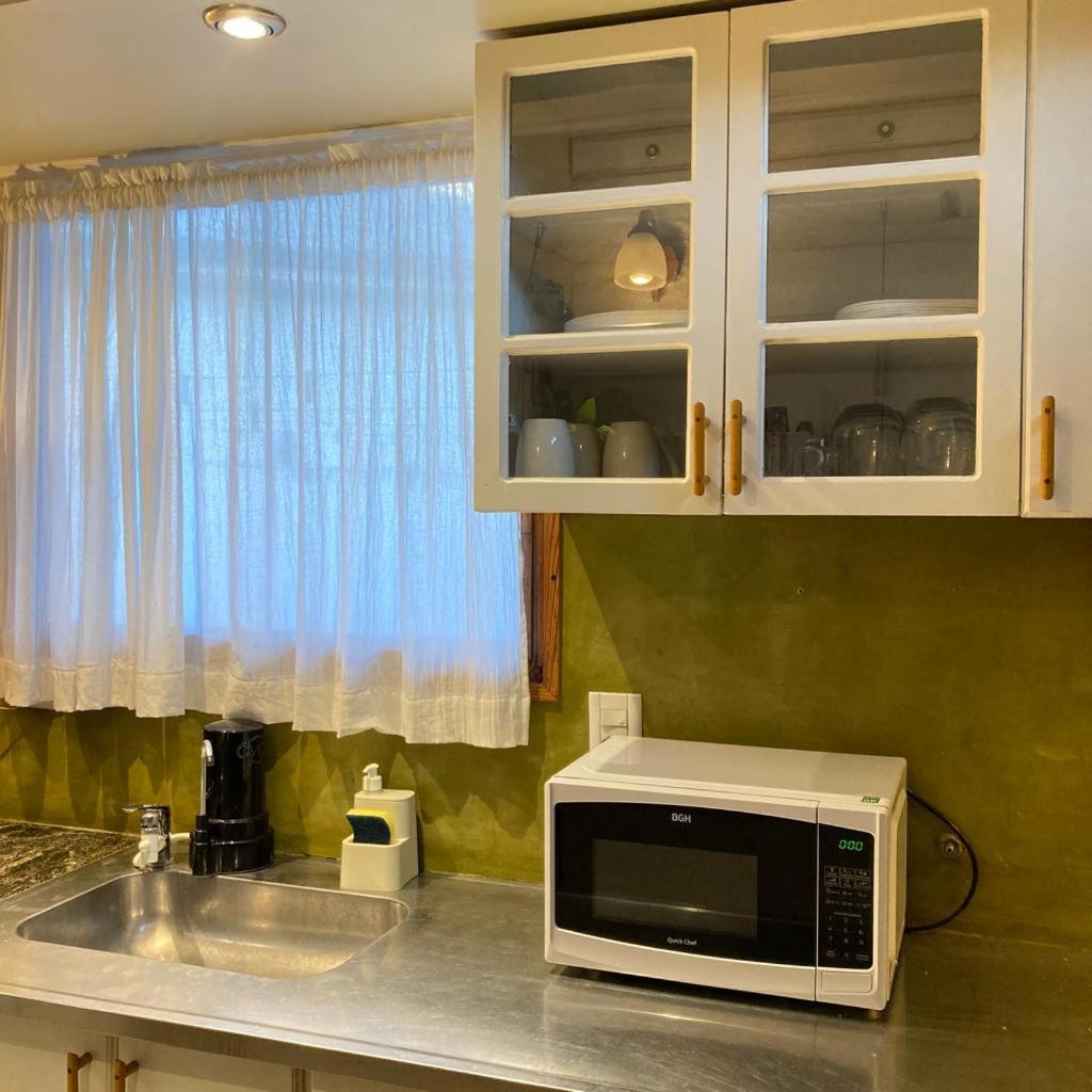 Queda cerca del centro, pero no se escucha nada que moleste. Se descansa muy bien, se llega muy fácil, se puede cenar ahí (hay cocina y comedor comodísimos) o salir a cenar muy bien a pocas cuadras.