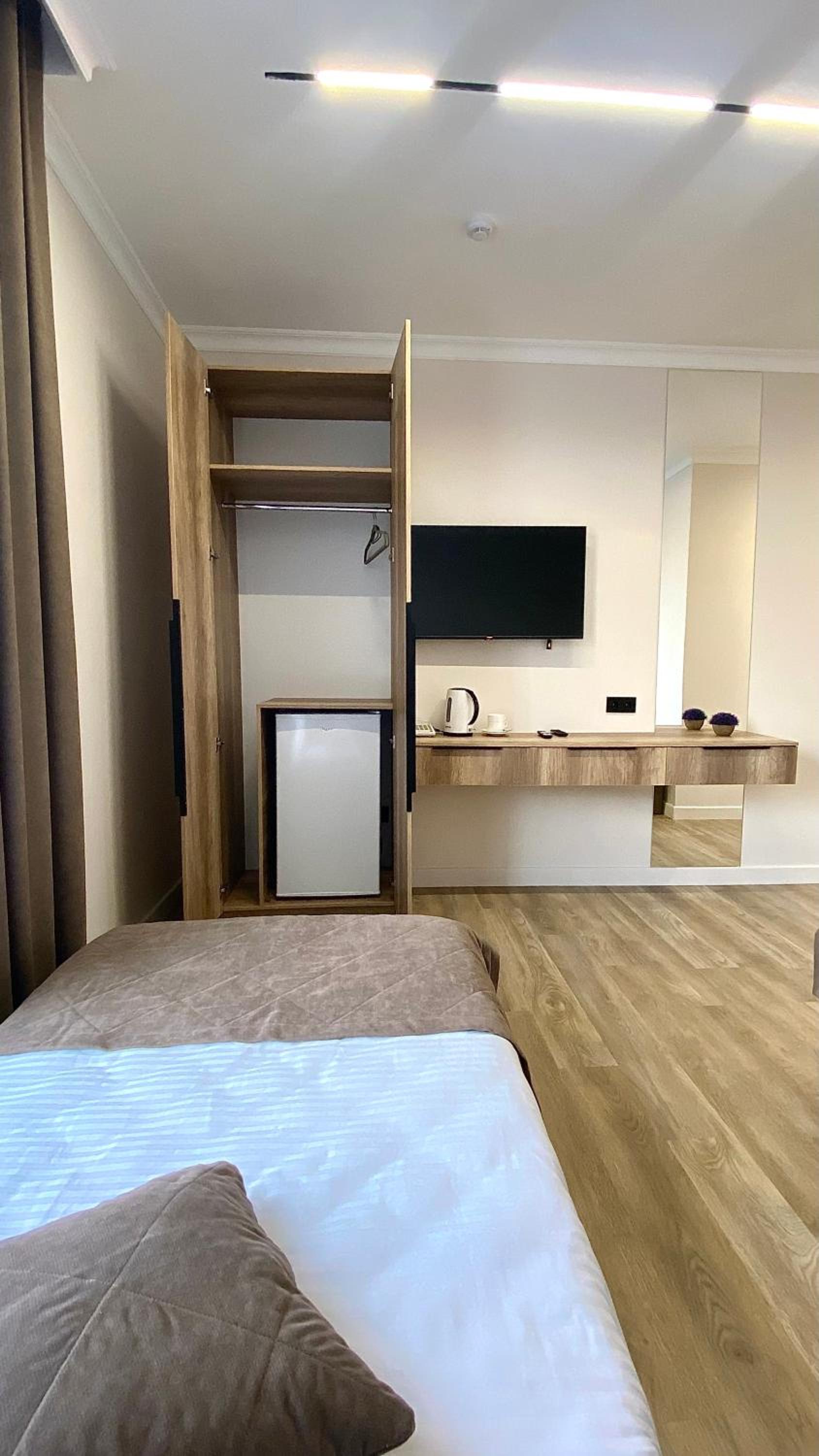 В номере не хватает шкафа/гардероба для вещей, было очень неудобно складывать вещи на вторую кровать.