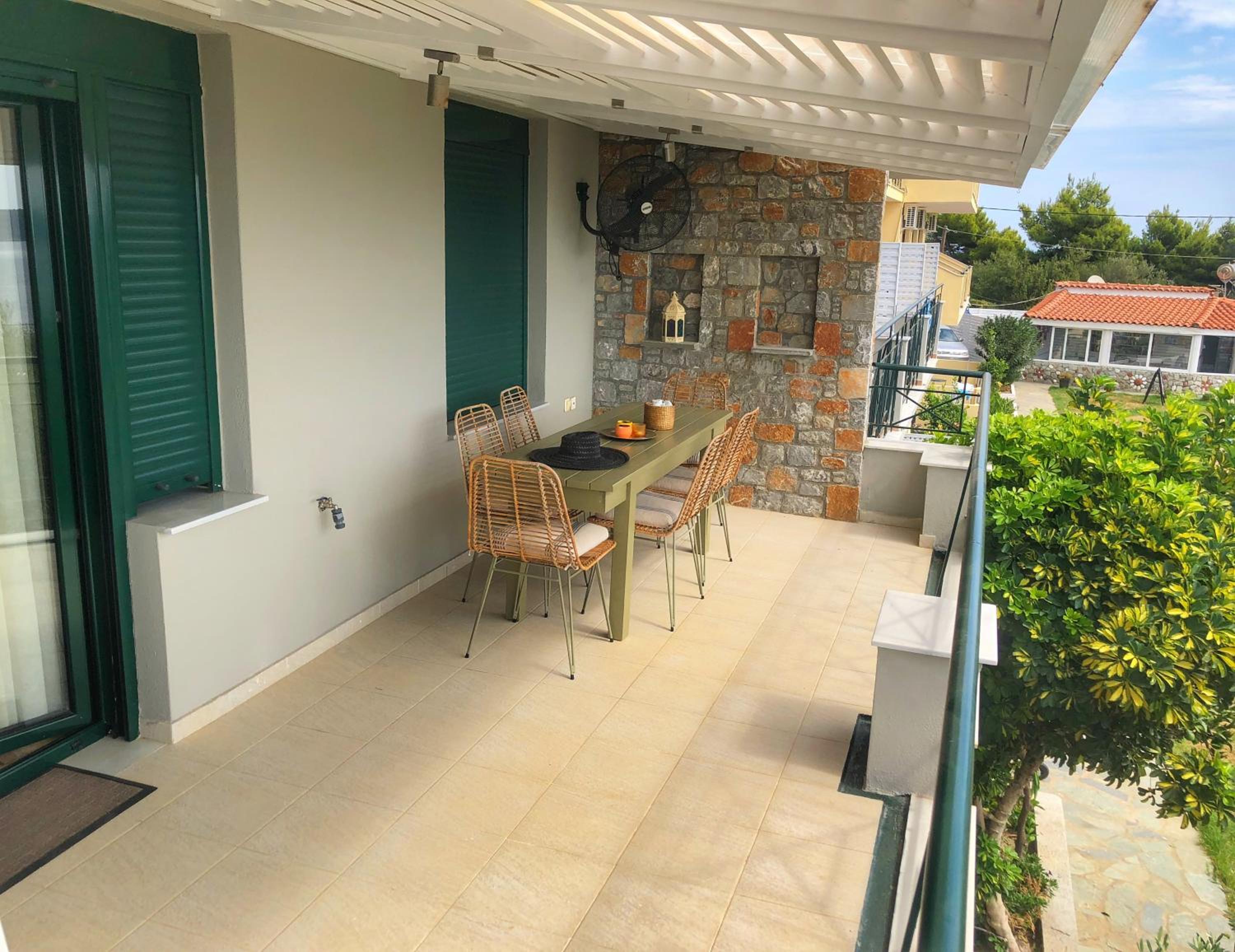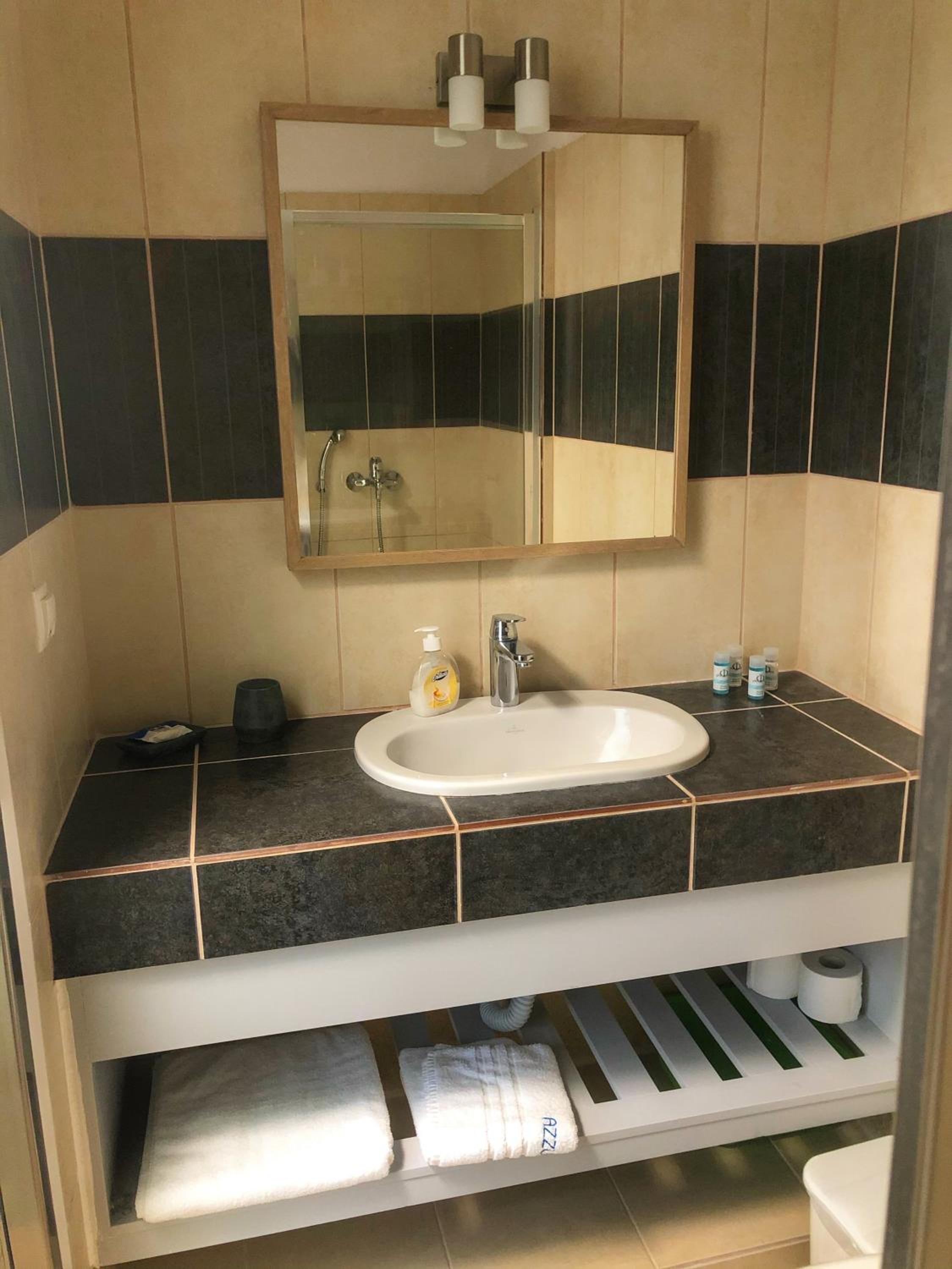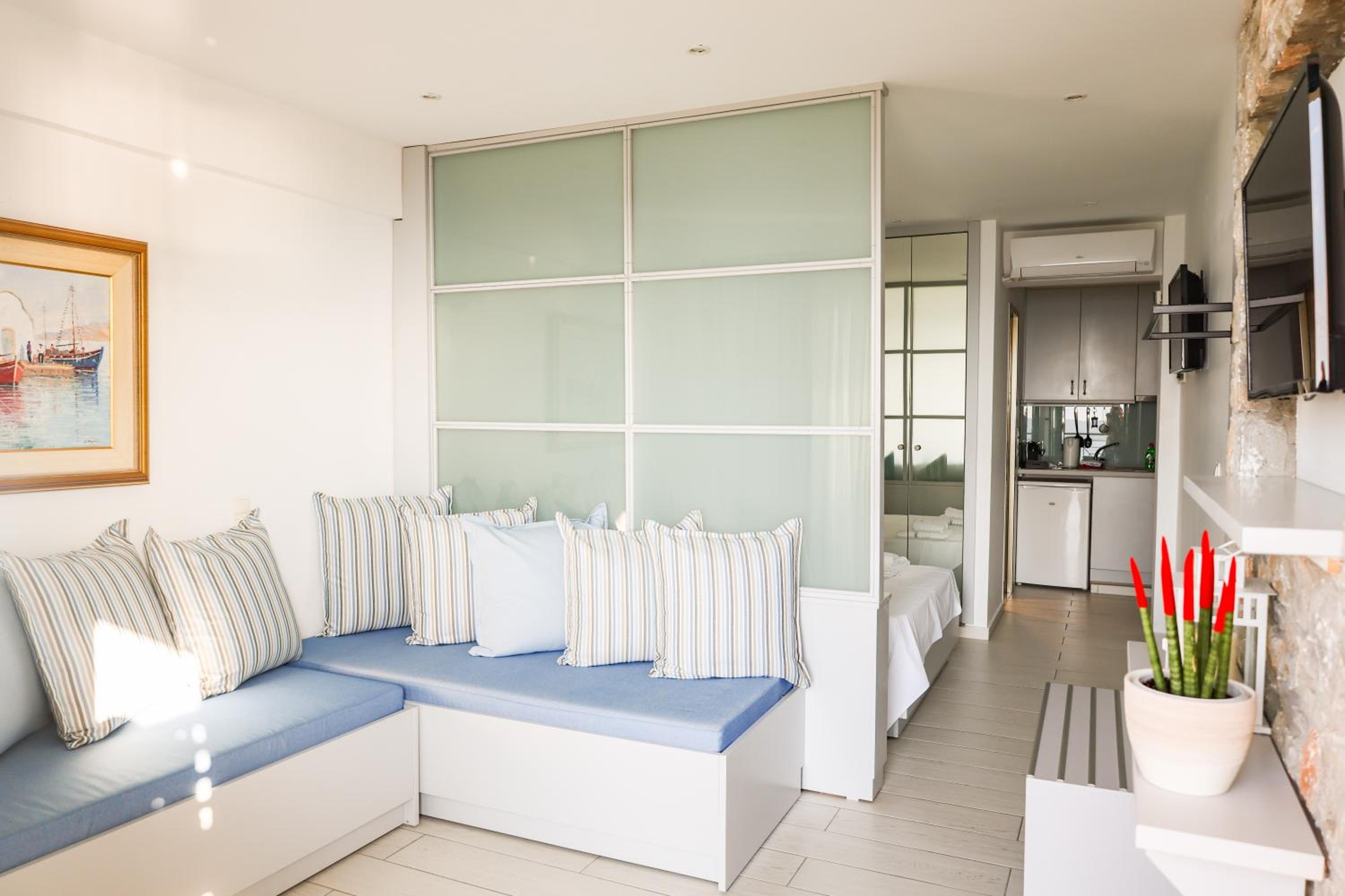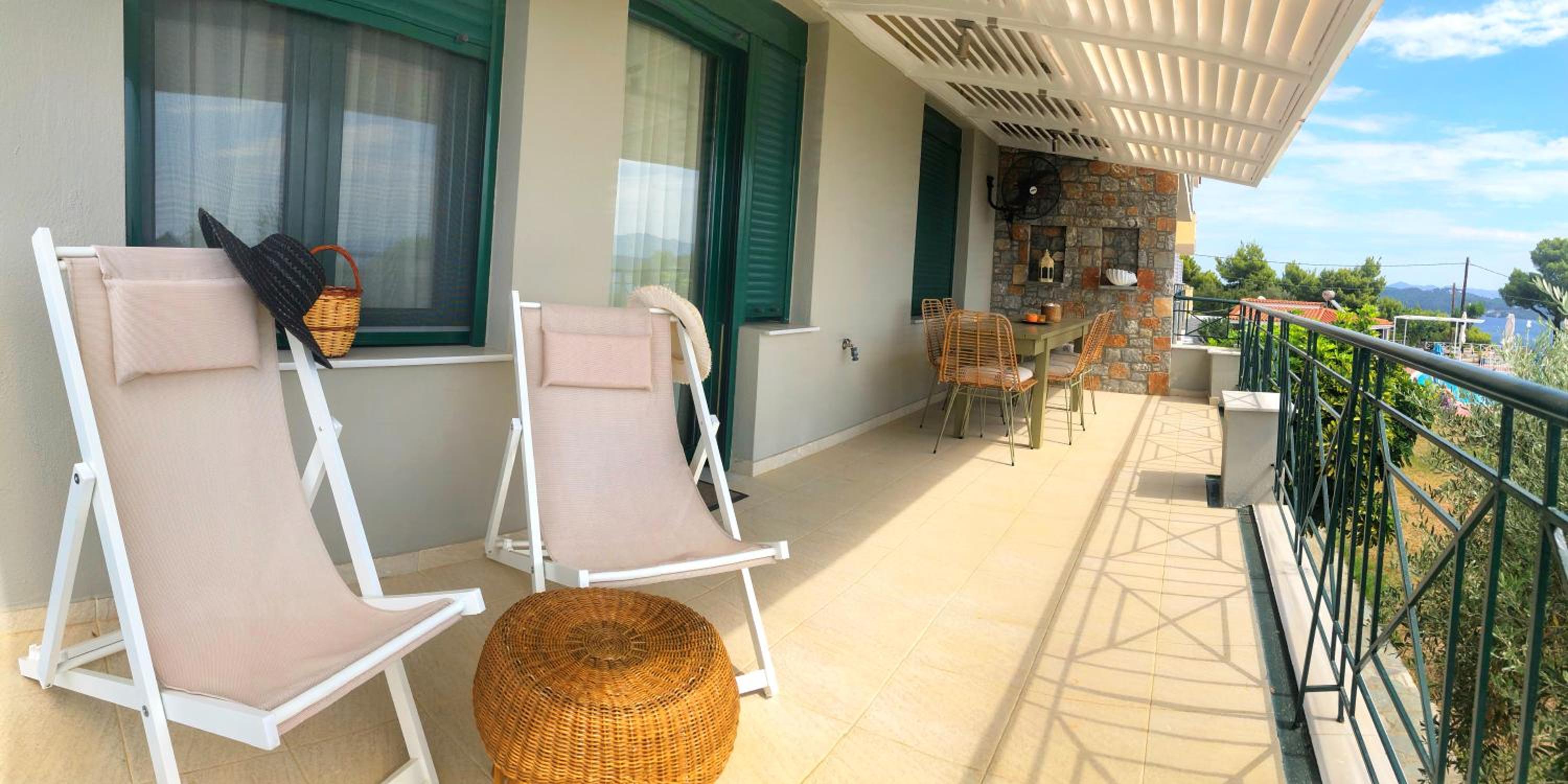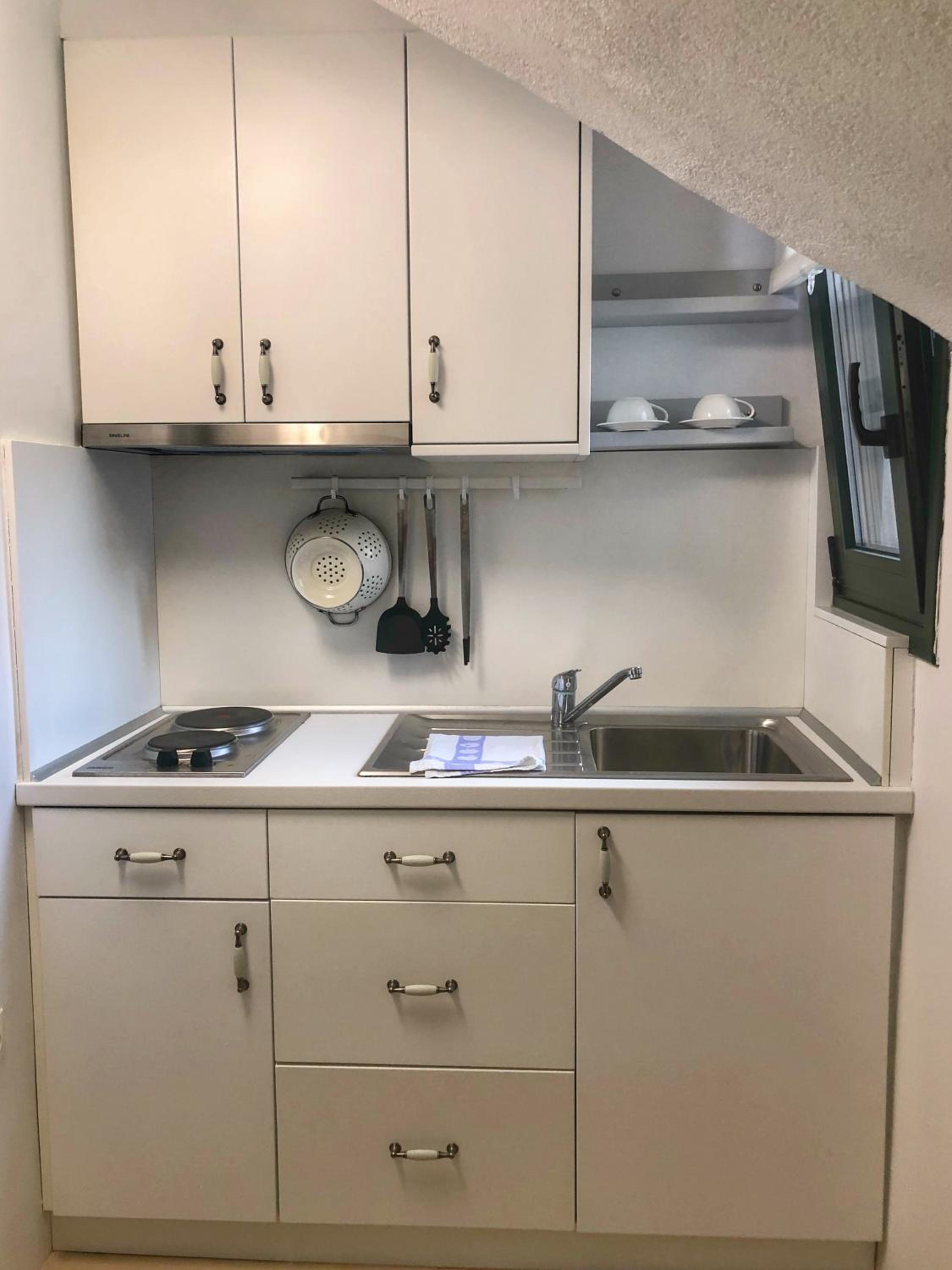 Overall, good accommodation, close to bus stop 9 and the beautiful Achladies beach. The apartments are about a 5-minute walk uphill from the bus stop. The room is well equipped with a kitchenette, which we used for breakfast but it’s also fine for simple lunches. Just note there’s no microwave or oven. For groceries, you can easily order through Wolt from a larger supermarket, delivery is quick, fresh, and much cheaper than the nearby mini markets.