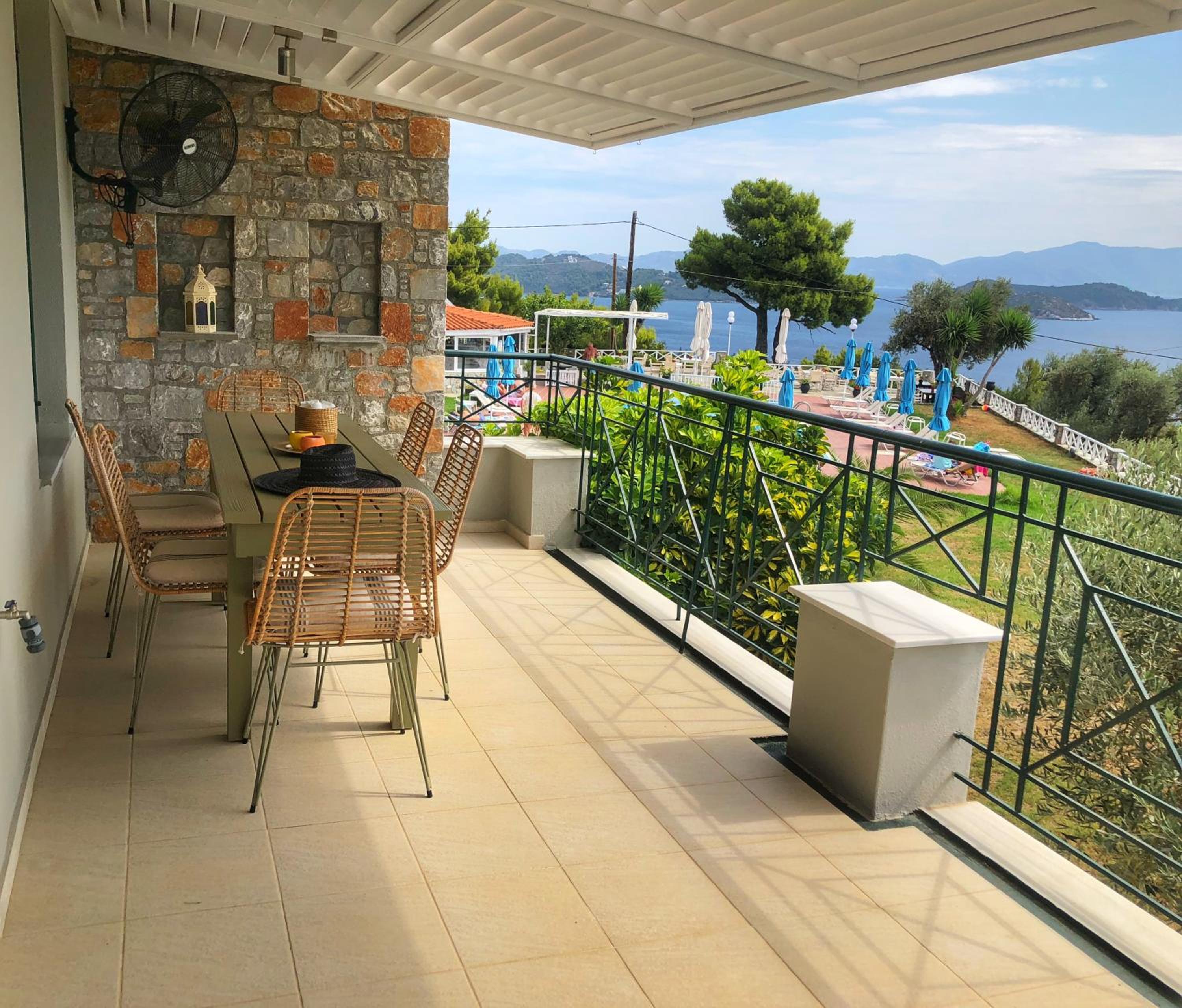 Accueil excellent. Restaurant sur place très bon. Emplacement idéal à 7 mn en voiture du centre port de Skiathos. Vraiment PARFAIT.