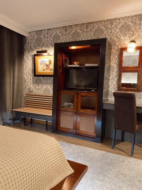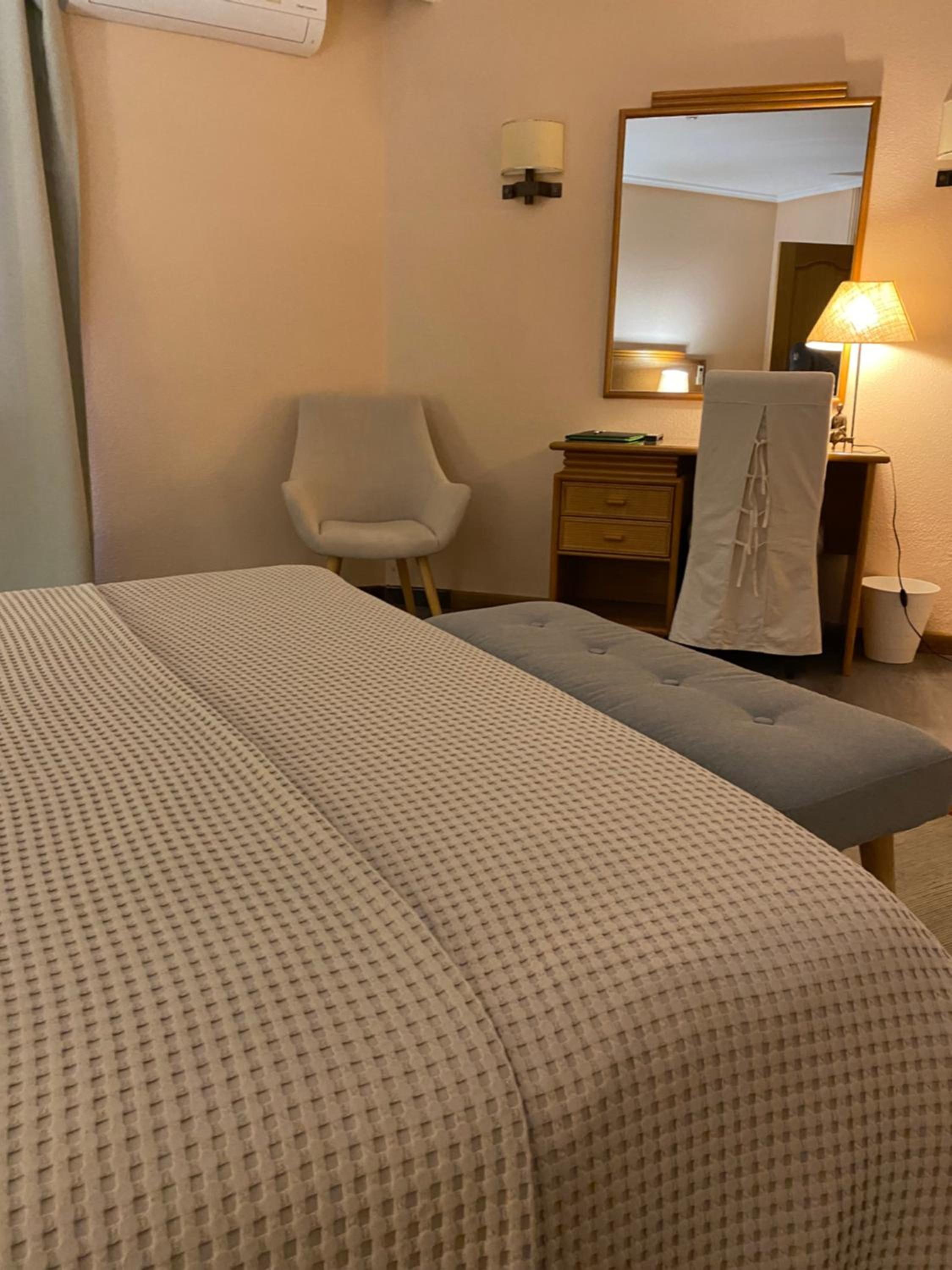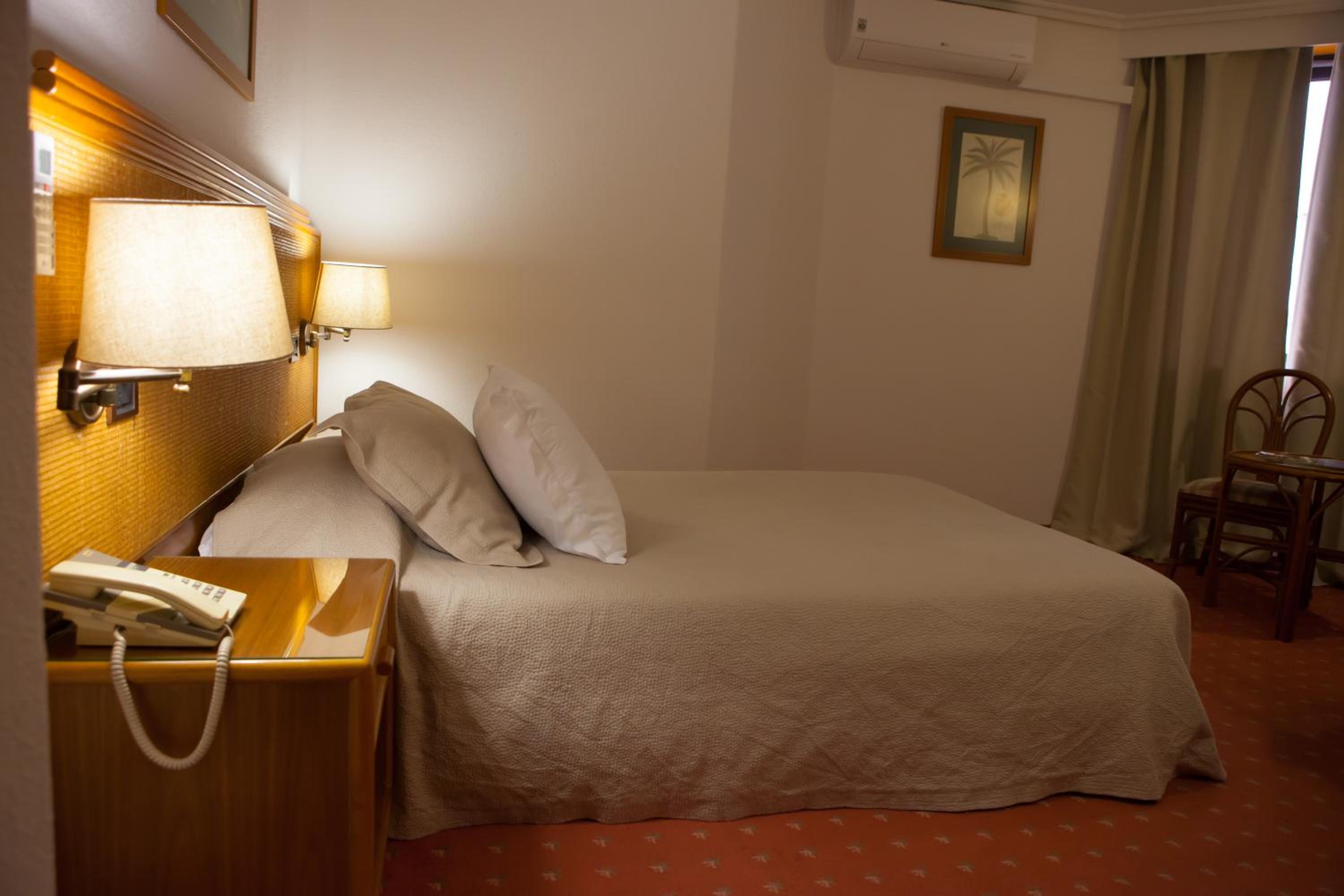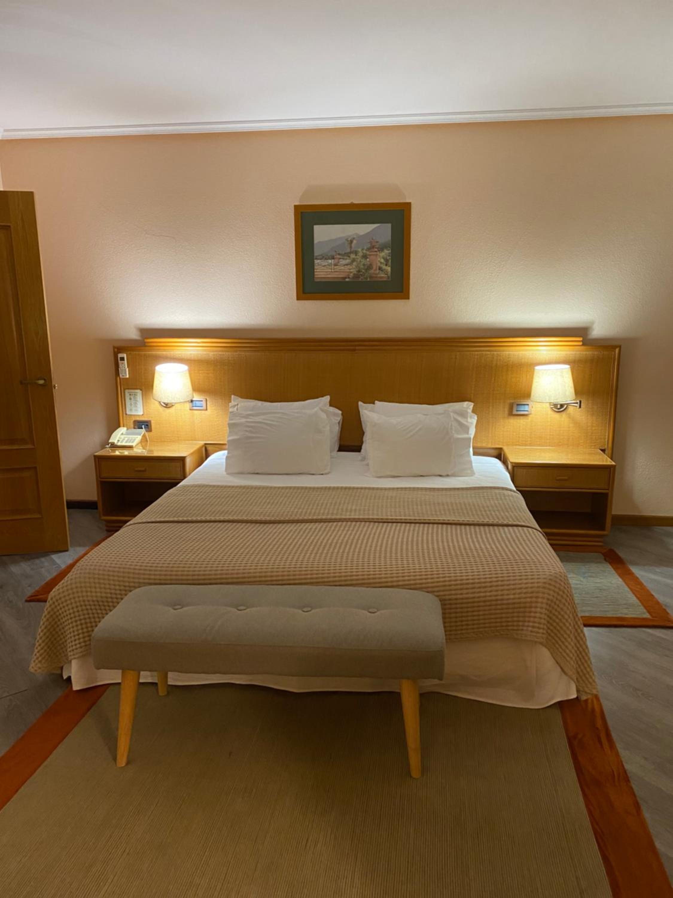 The air-conditioned rooms at Lusitano are designed for relaxation, featuring amenities like satellite TV, safe, minibar, and luxurious spa baths in some. The perfect retreat after a day of travel.