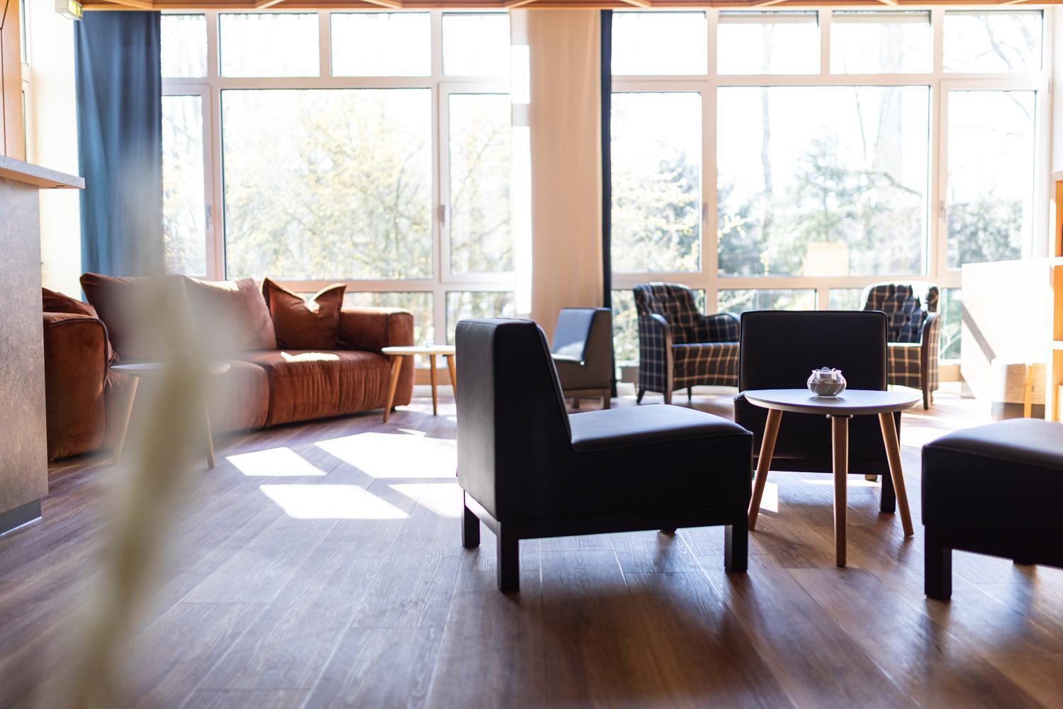 Luxurious Wellness Area: Indulge in relaxation at our spacious spa area featuring a modern sauna and fitness room, perfect for unwinding after a day of exploring Wilhelmshaven.