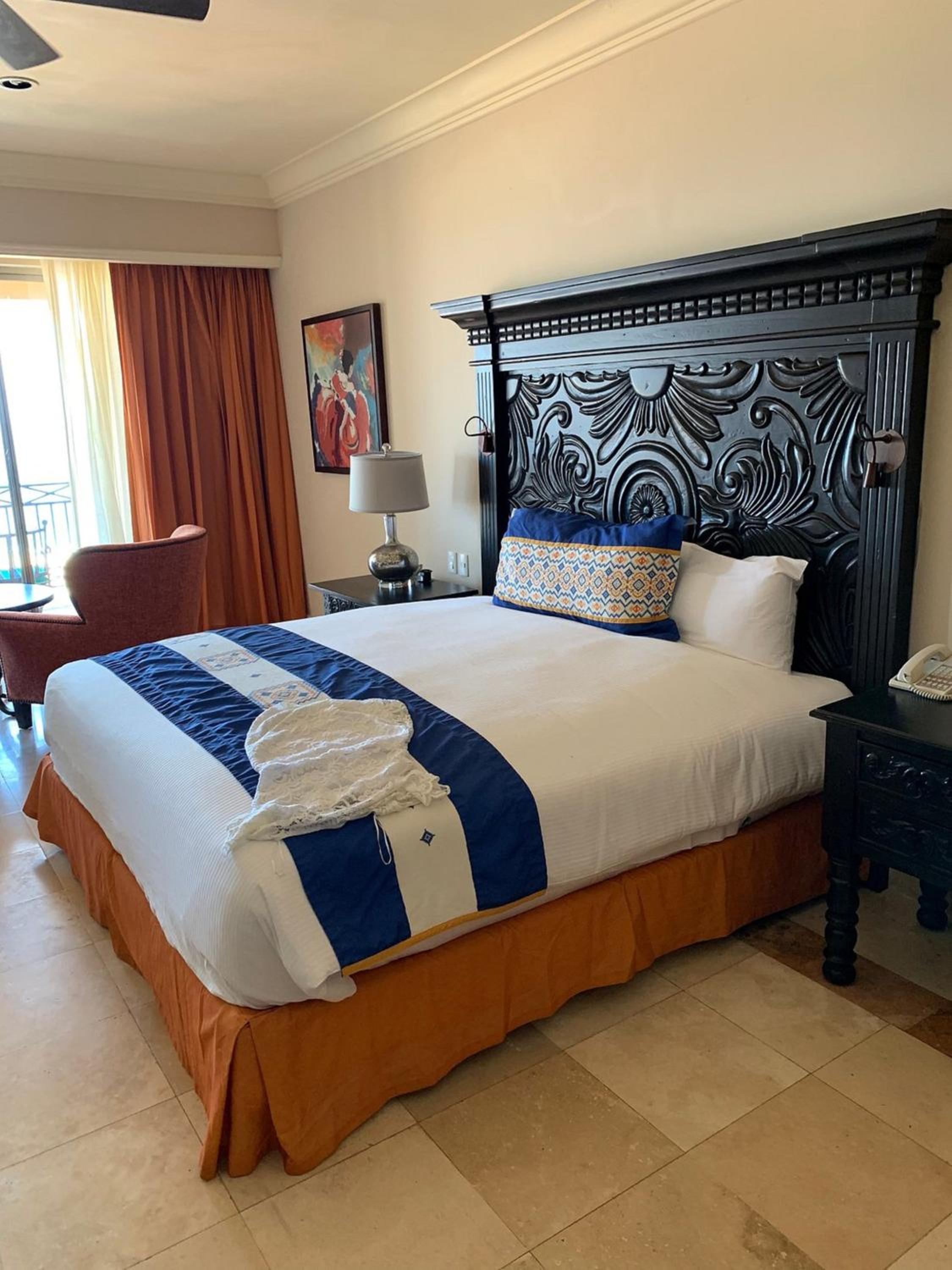 The Suites at Pueblo Bonito Sunset Beach Cabo San Lucas offer a lavish experience with Mahogany wood furniture, stonework decor, and modern amenities like air conditioning and HDTVs. Enjoy the comfort of daily maid service and a fully stocked kitchen, along with a terrace hot tub and jetted bathtub in the master bedroom.