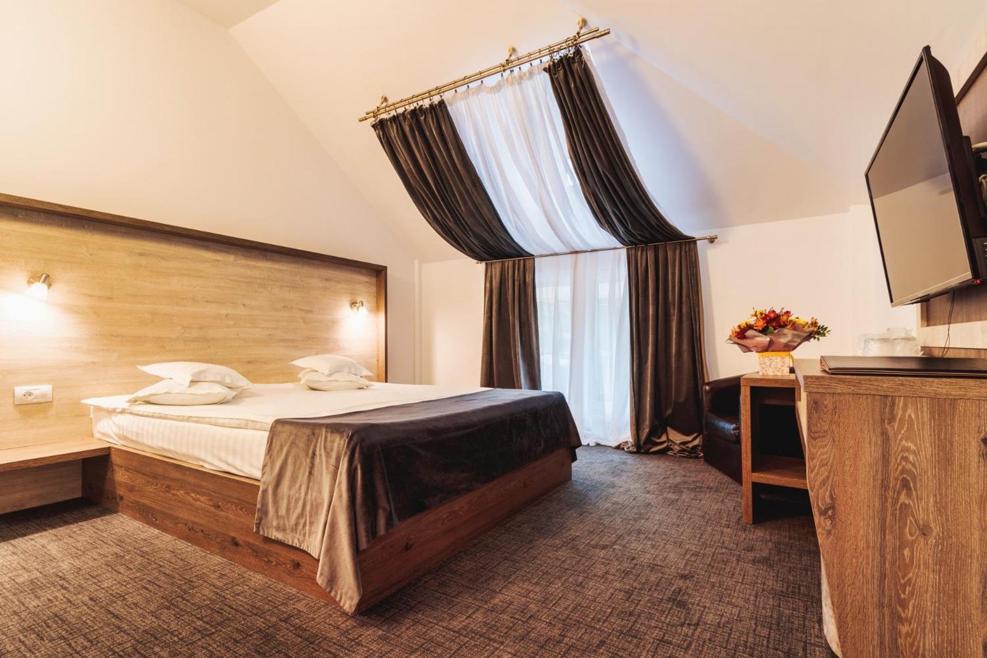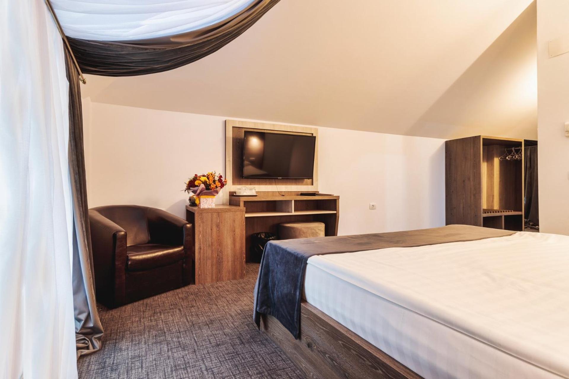 Hotel Domnitei in Căciulata District offers en-suite rooms with modern amenities like air conditioning, flat-screen TVs, and minibars.