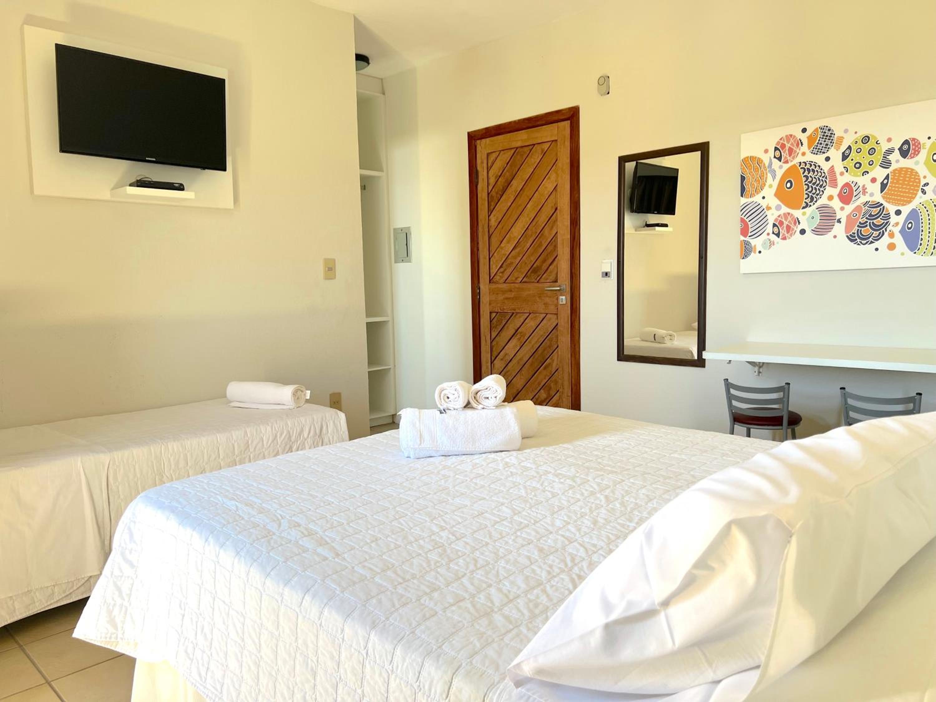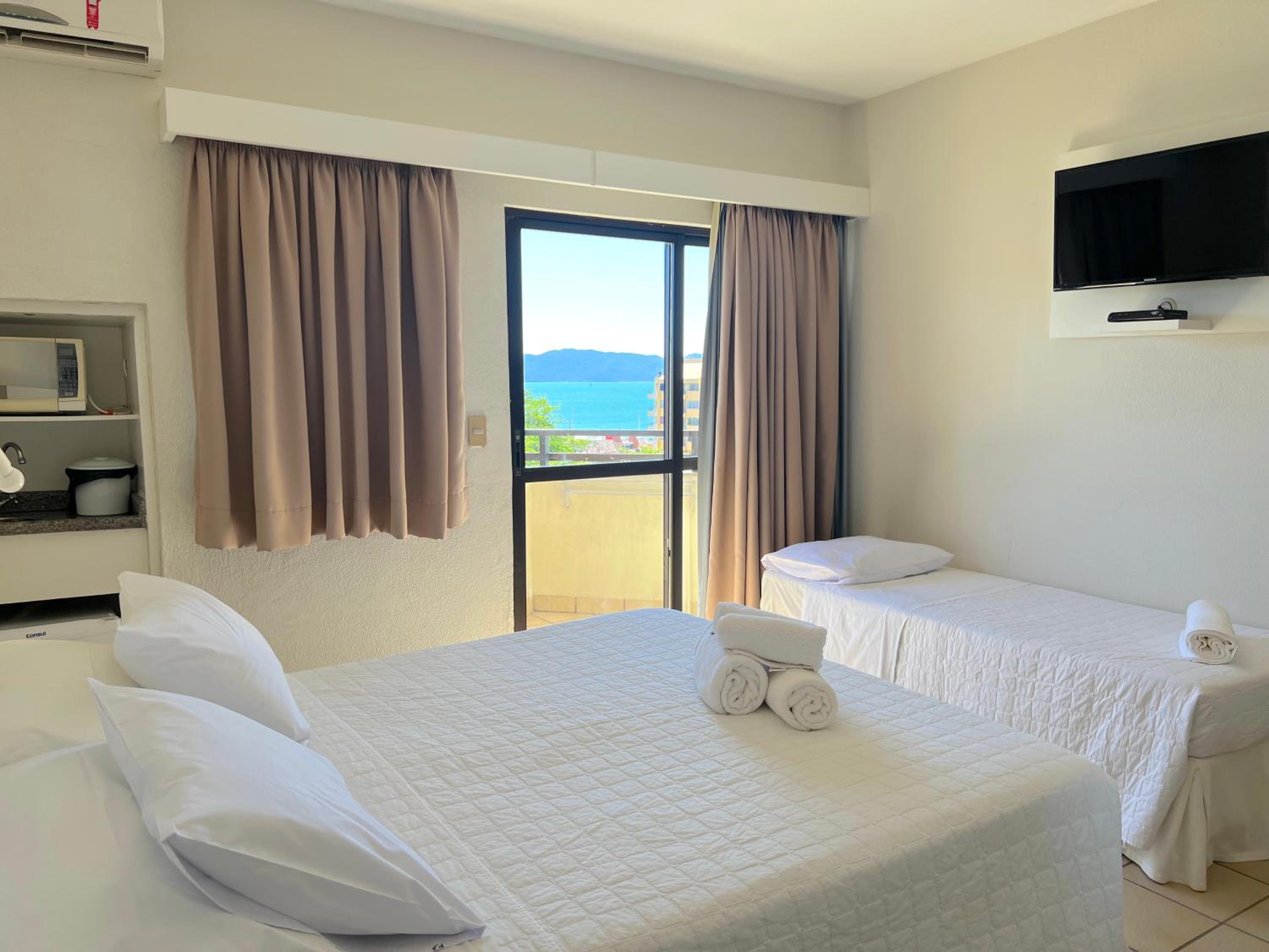 Localização excelente, café da manhã bom, quartos grandes, comodidade de uma pia no quarto e microondas. Tem um largo/rua (público) ao lado do hotel que dá direto na praia, um acesso limpo, arrumado, iluminado, bonito.