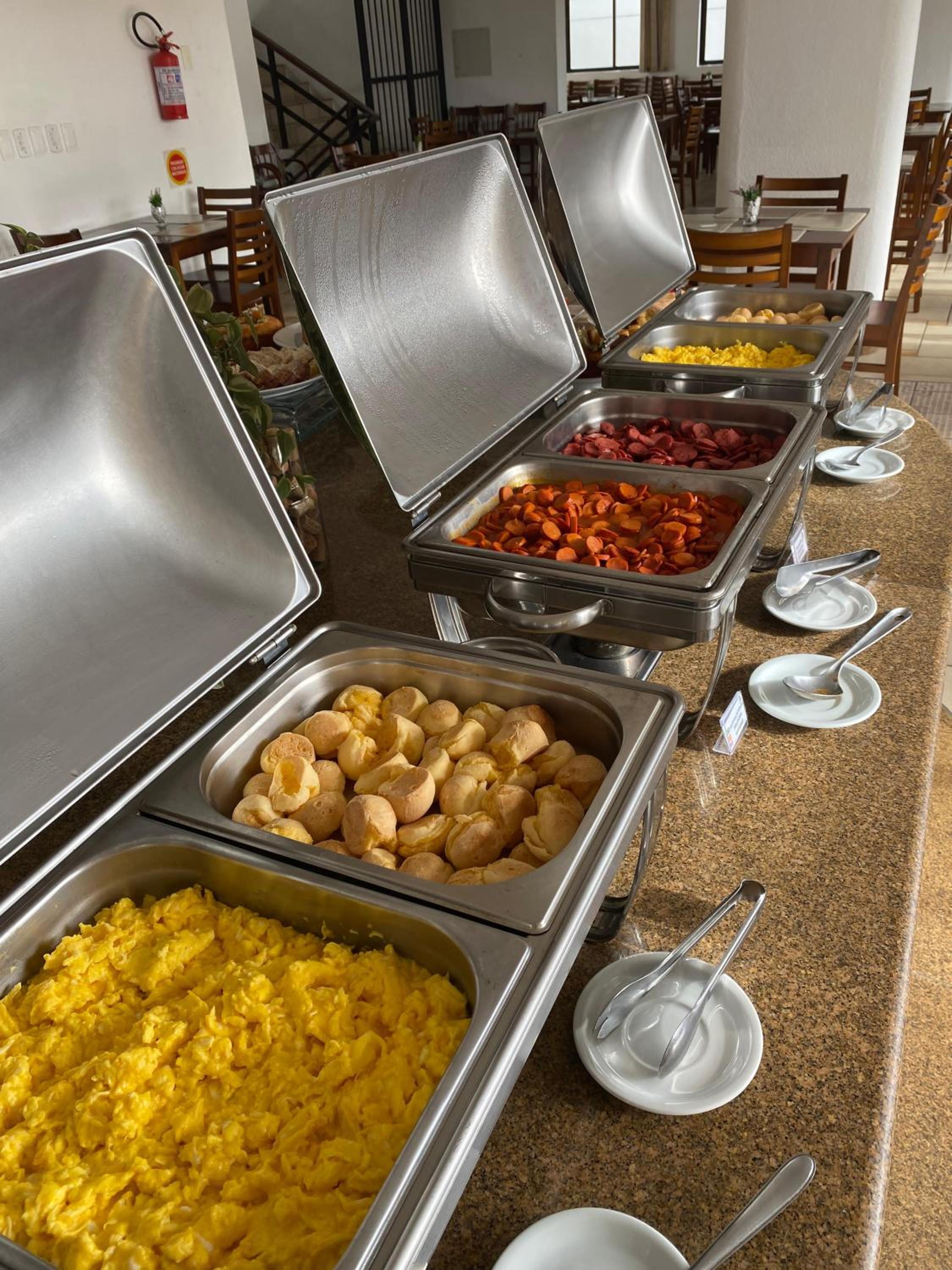 Café da manhã tem quantidade, mas a qualidade deixa a desejar.