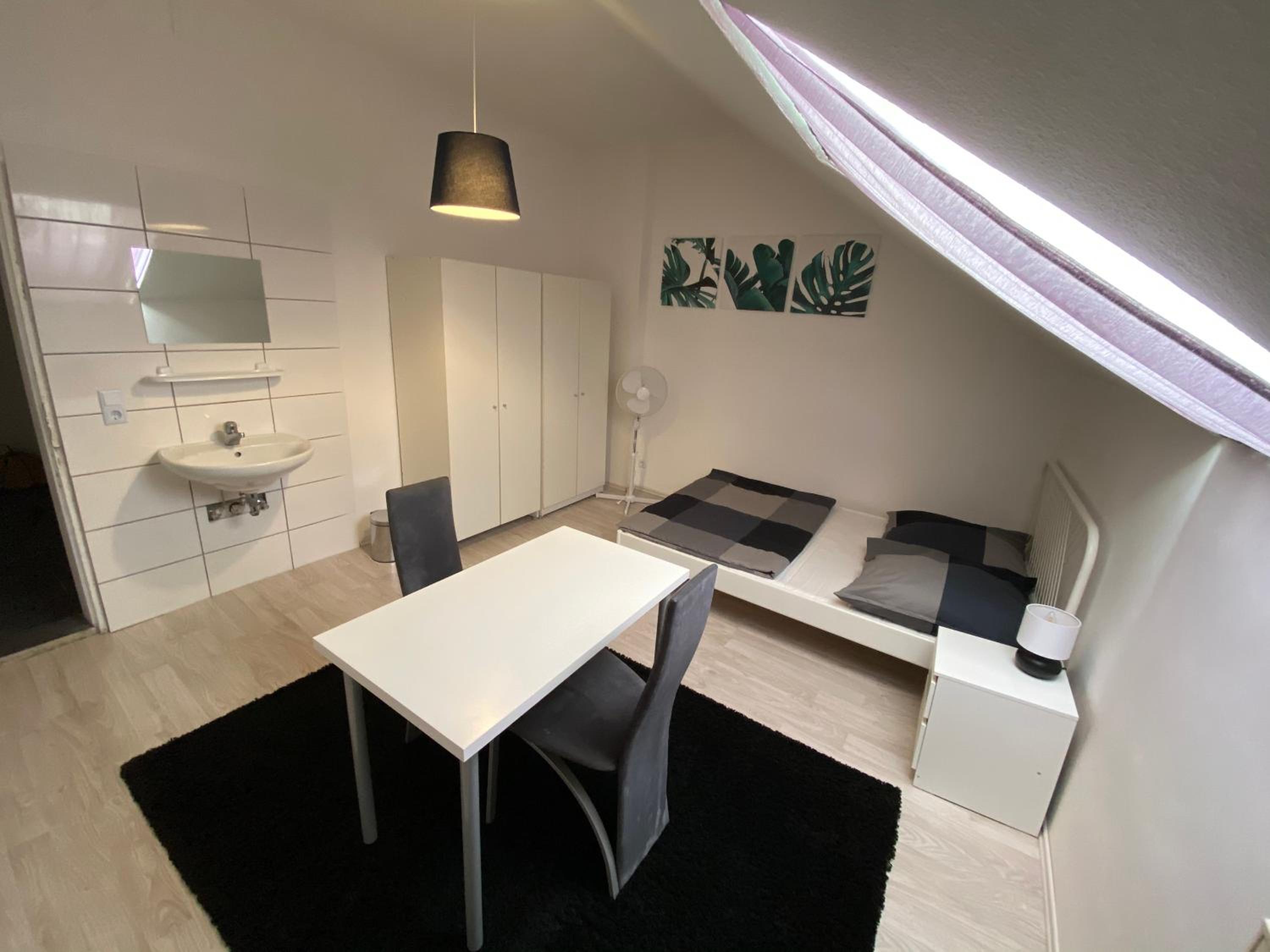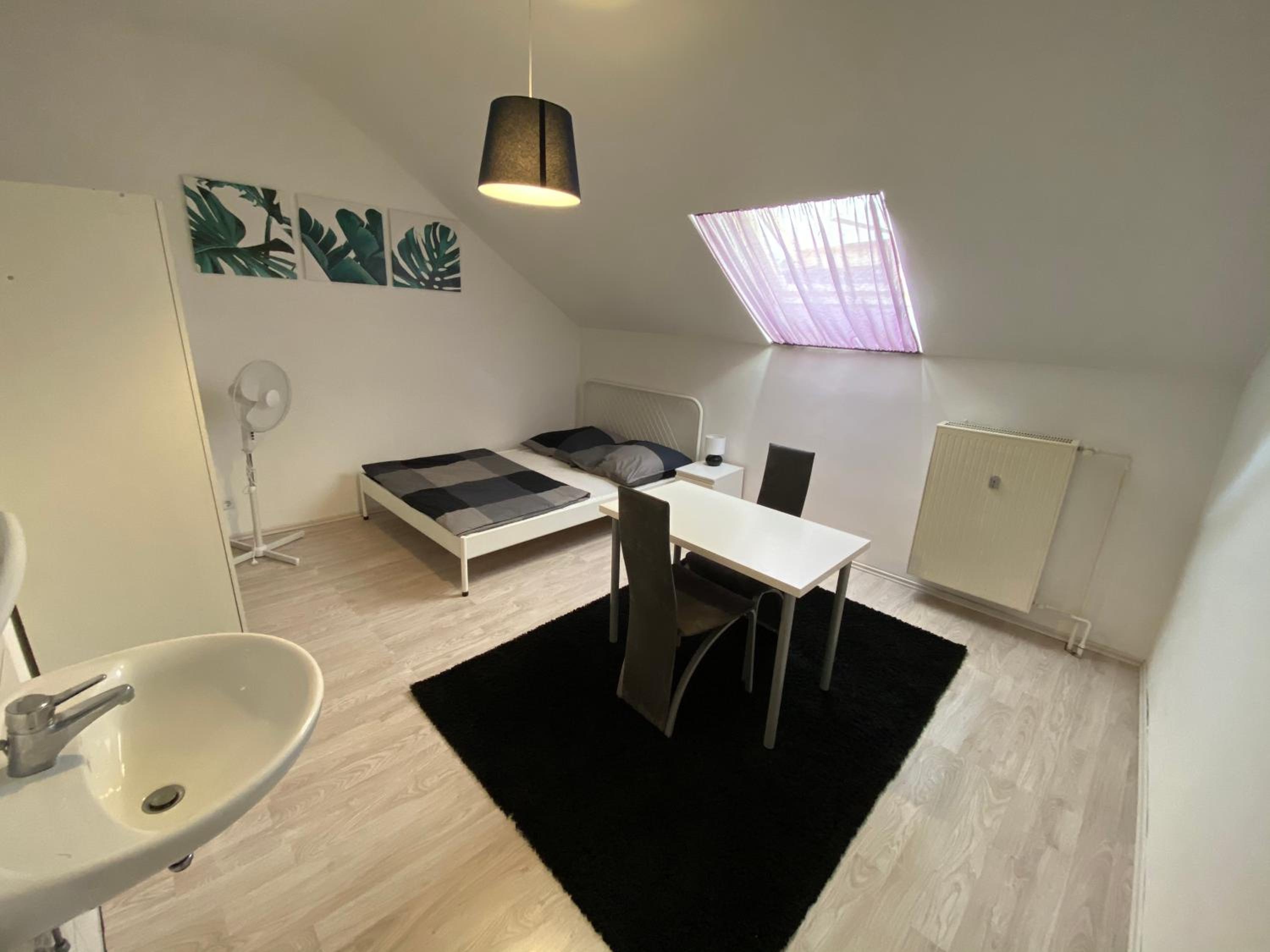 bij aankomt kon de dame daar alleen Duits, ze ging iemand bellen om het te regelen. ik moest ze zelf vertellen wat voor kamer ik geboekt had. de kamer was vervallen en zeer verouderd. er was één douche voor 5 kamers. 2 wc's. het was niet hotel waardig, het was meer een hostel.