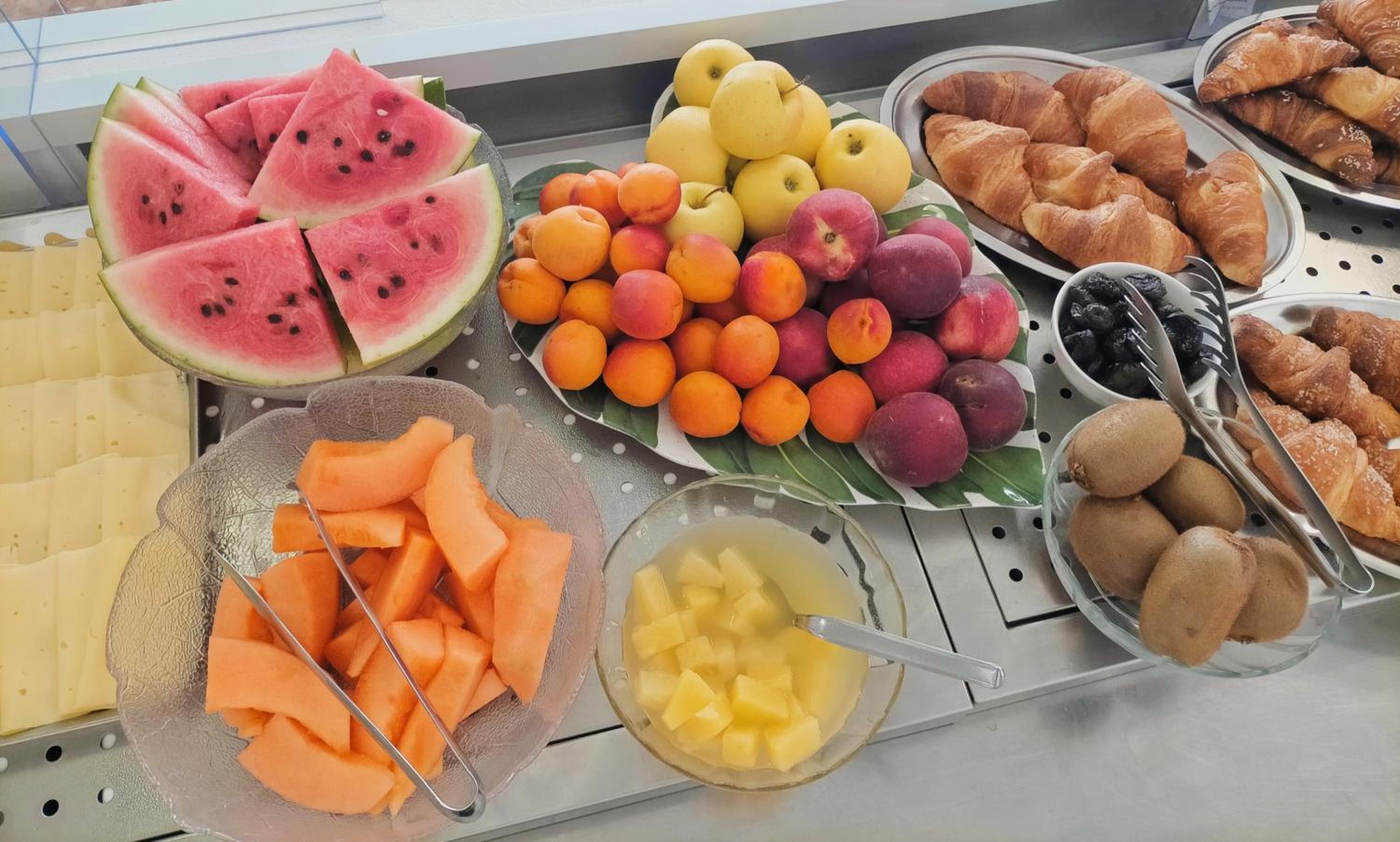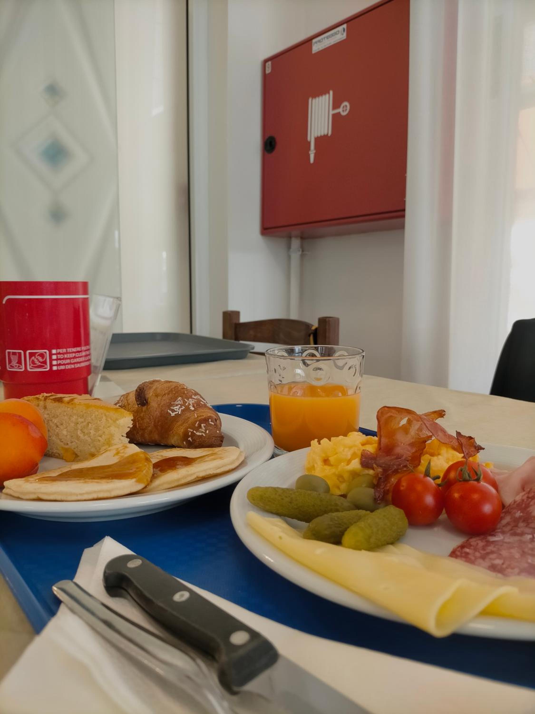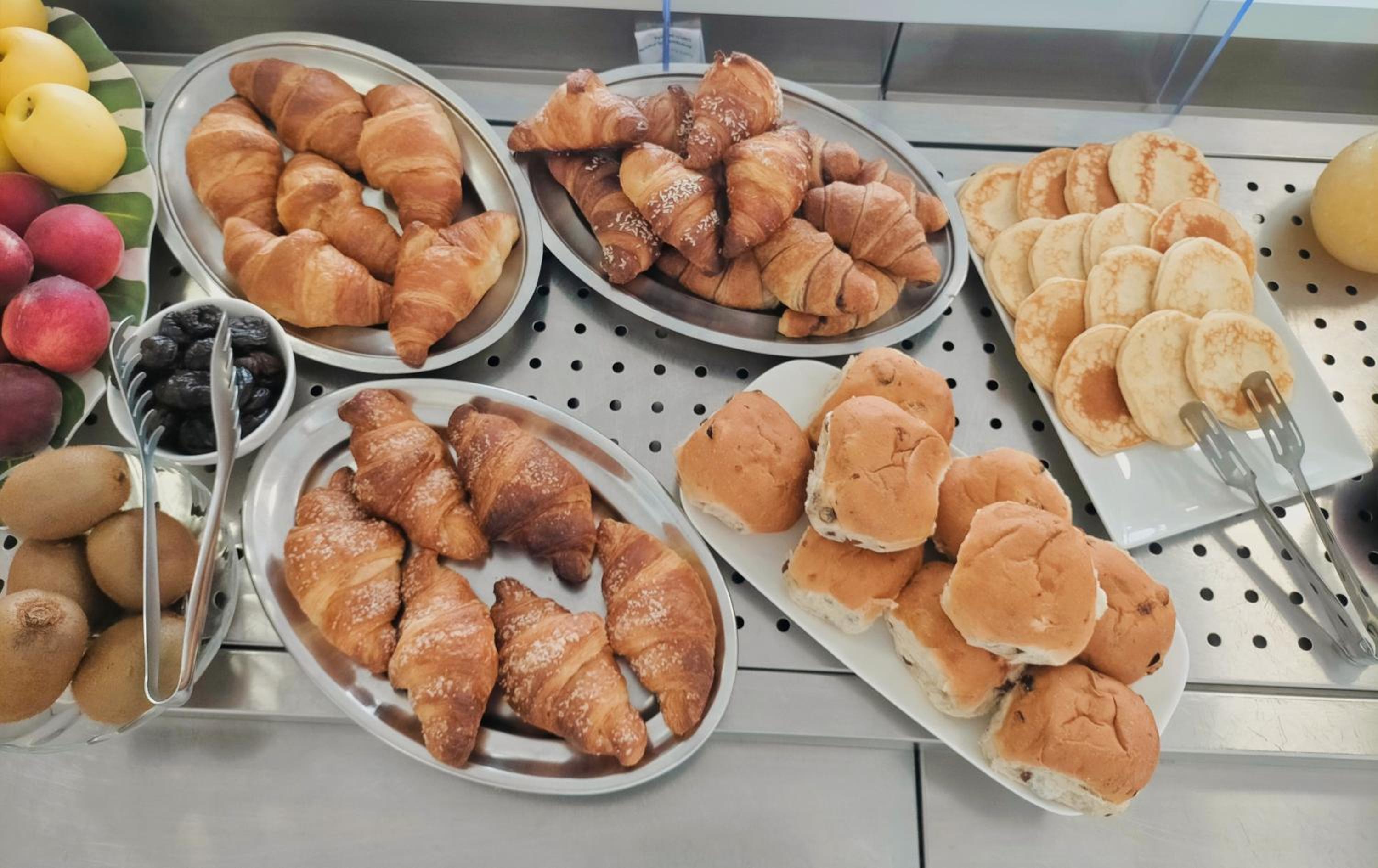 A reggeli bőséges, választékos. Sós és édes vegyesen, zöldsegekkel, gyümölccsel.