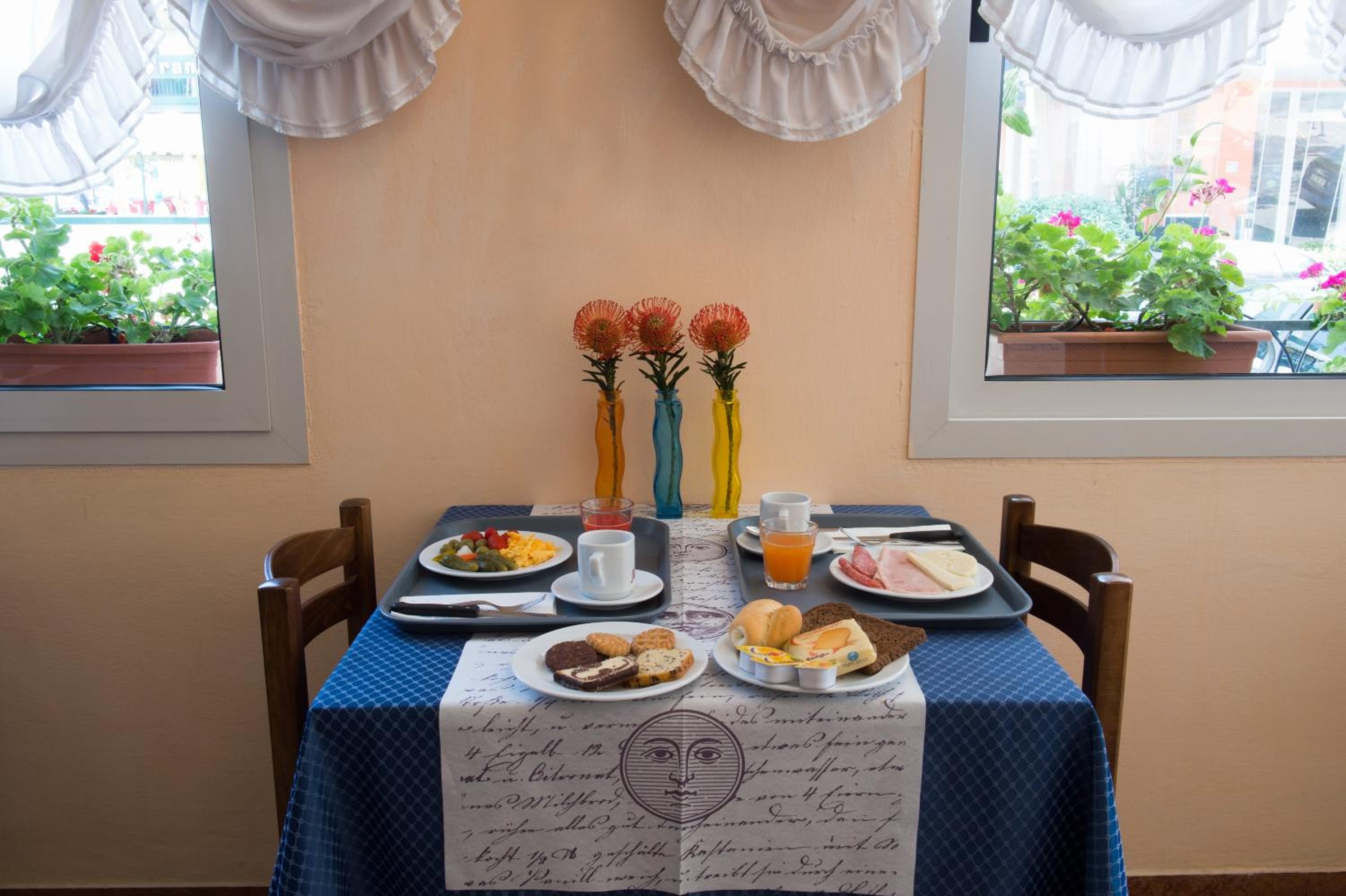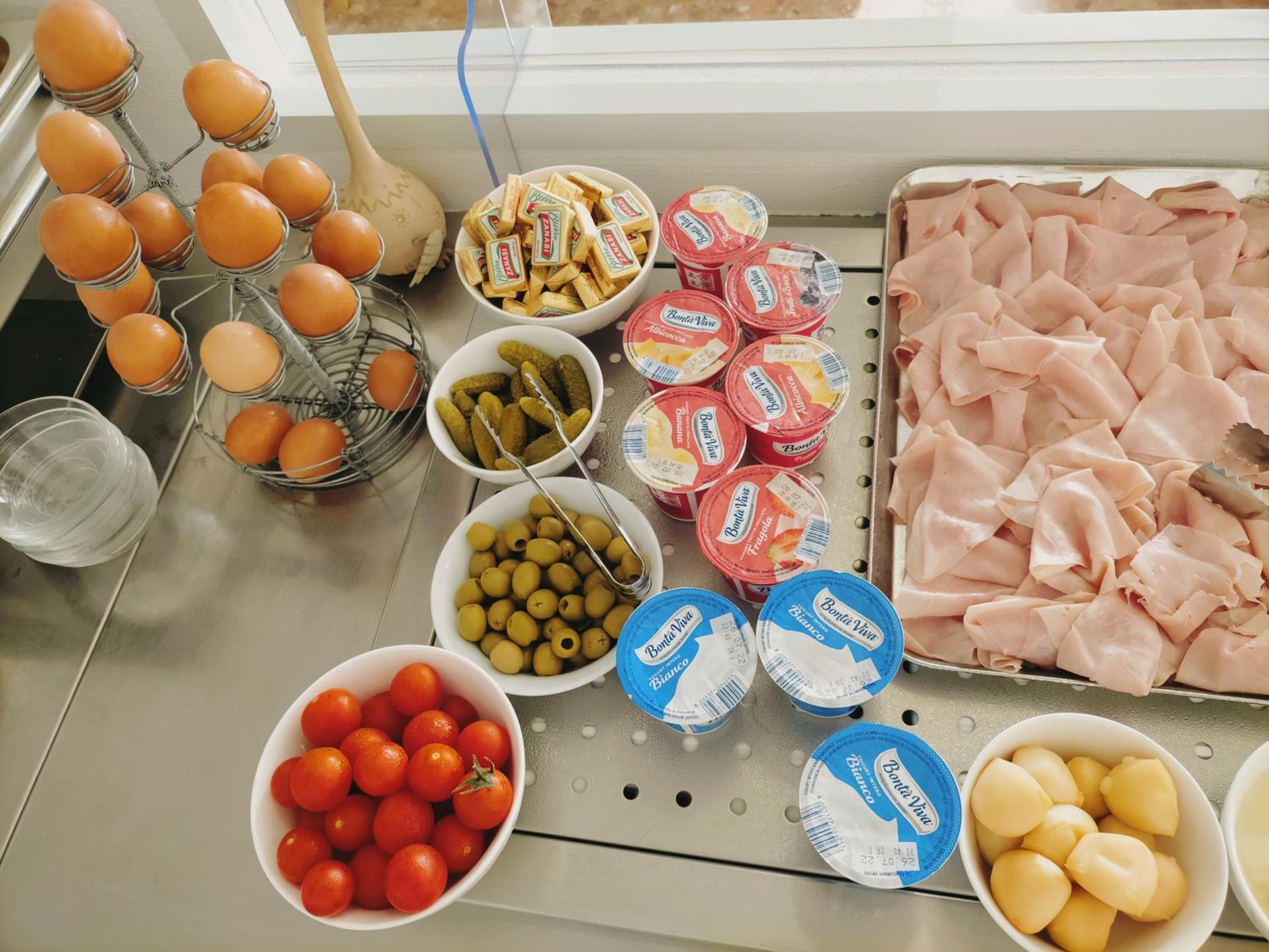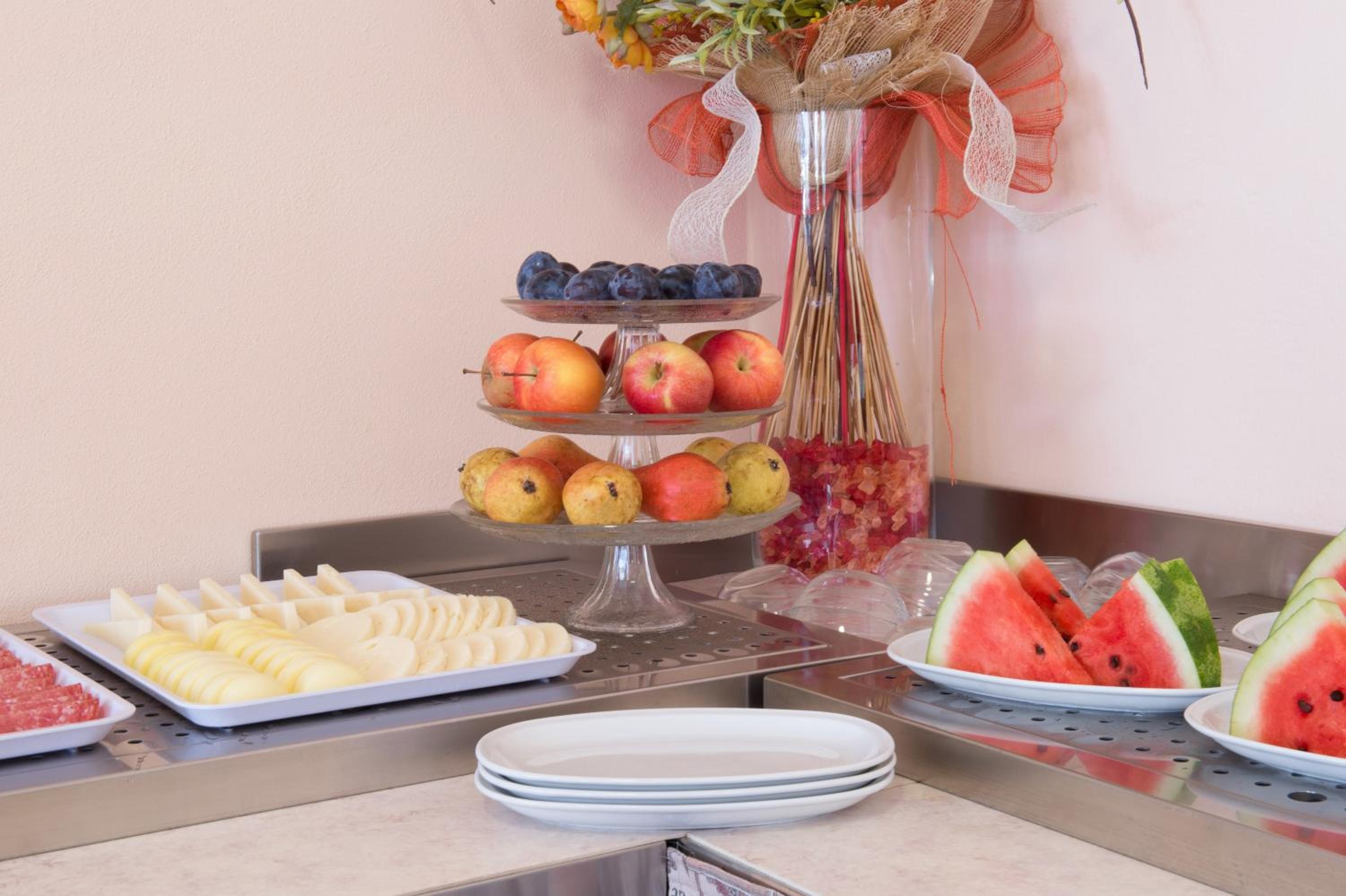 A reggeli bőséges, választékos. Sós és édes vegyesen, zöldsegekkel, gyümölccsel.