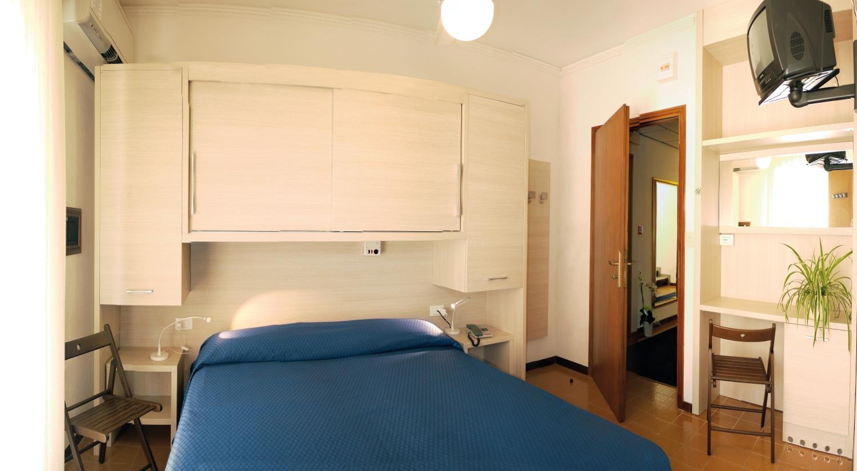 Zimmer und Bad sehr klein und alt, Zimmer sehr hellhörig, Bett ist unter einem Schrank, Personal hat kein Interesse an den Urlaubern (keine Frage ob alles gepasst hat usw. - außer die Dame beim Frühstück war sehr freundlich, für uns kein Problem aber Hunde muss man mögen da diese überall im Hotel frei herum laufen.