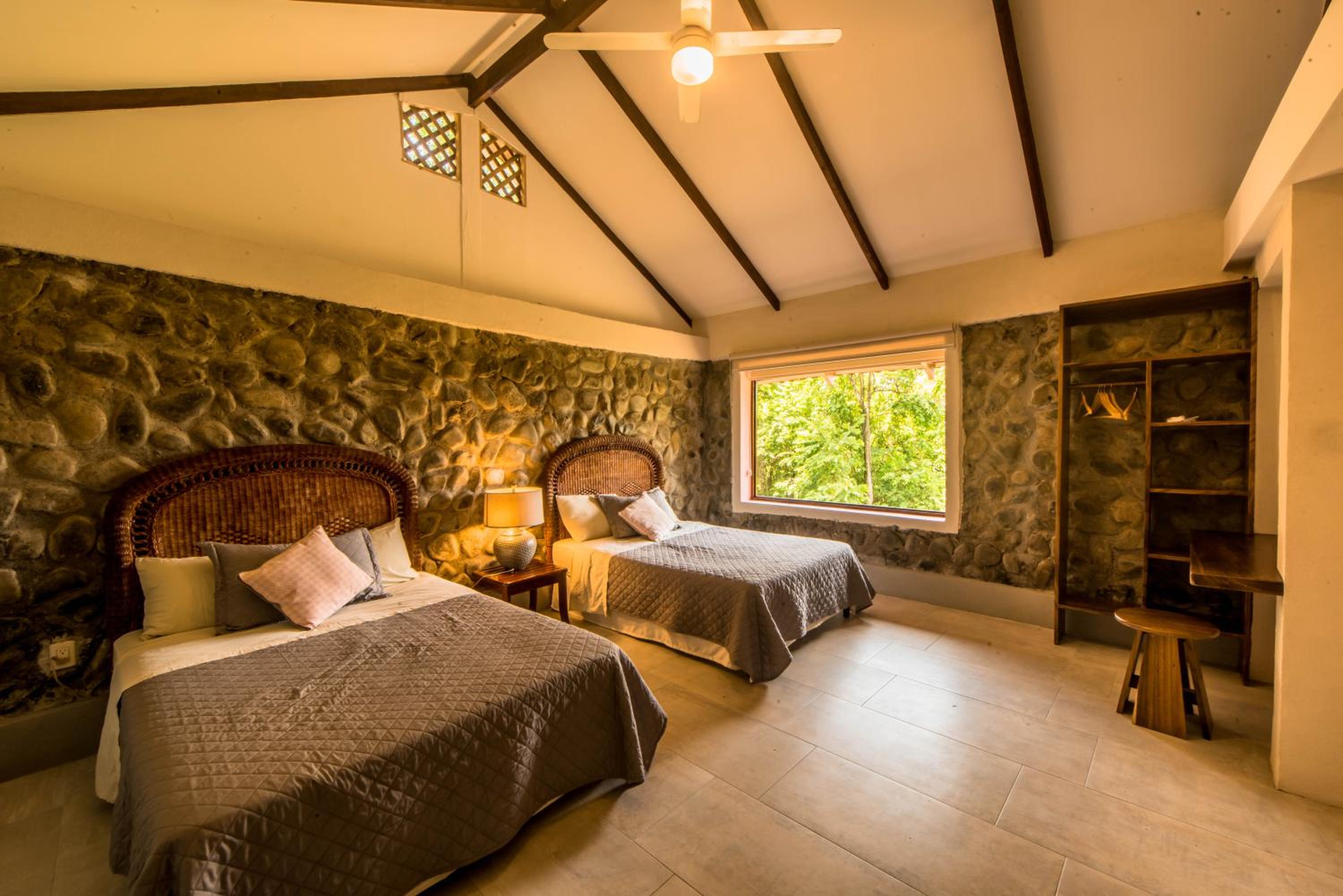 La vue de la chambre était exceptionnelle sur la baie, mais il faut monter une pente raide avec escaliers à pieds durant 5 min... donc être en forme ! Le restaurant donnant sur la plage est super et génial pour le petit déjeuner extra ! Les transats sont agréables et on a vu pleins d'animaux directement sur la plage : maman paresseux et son bébé, toucans, iguanes, et une ribambelle de singes... c'était magnifiques