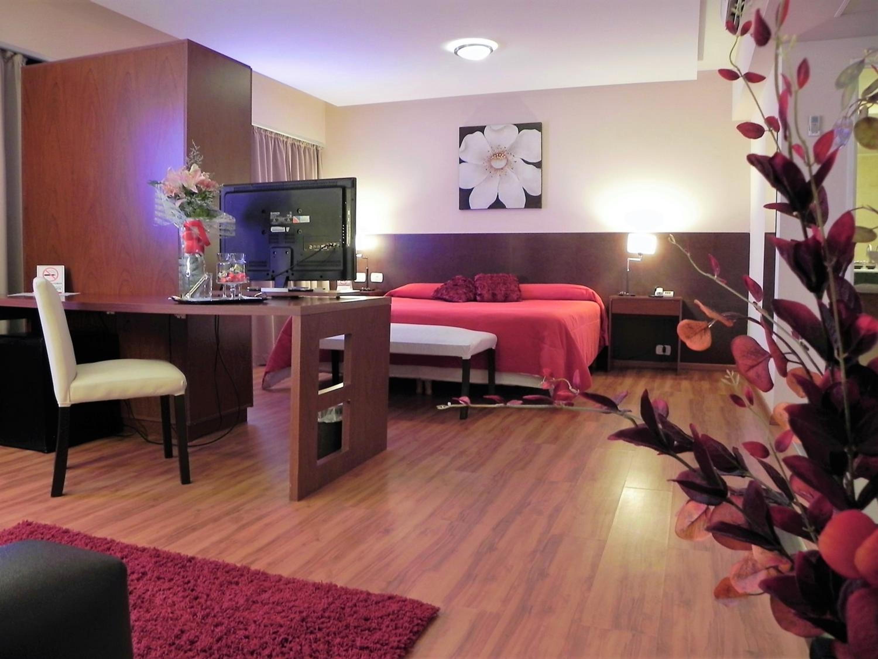 Each room at the hotel is designed for comfort and convenience, featuring air conditioning, a desk, flat-screen TV, private bathroom, and a patio with a city view. Guests can also make use of amenities like bed linen, towels, and a safety deposit box for added security.