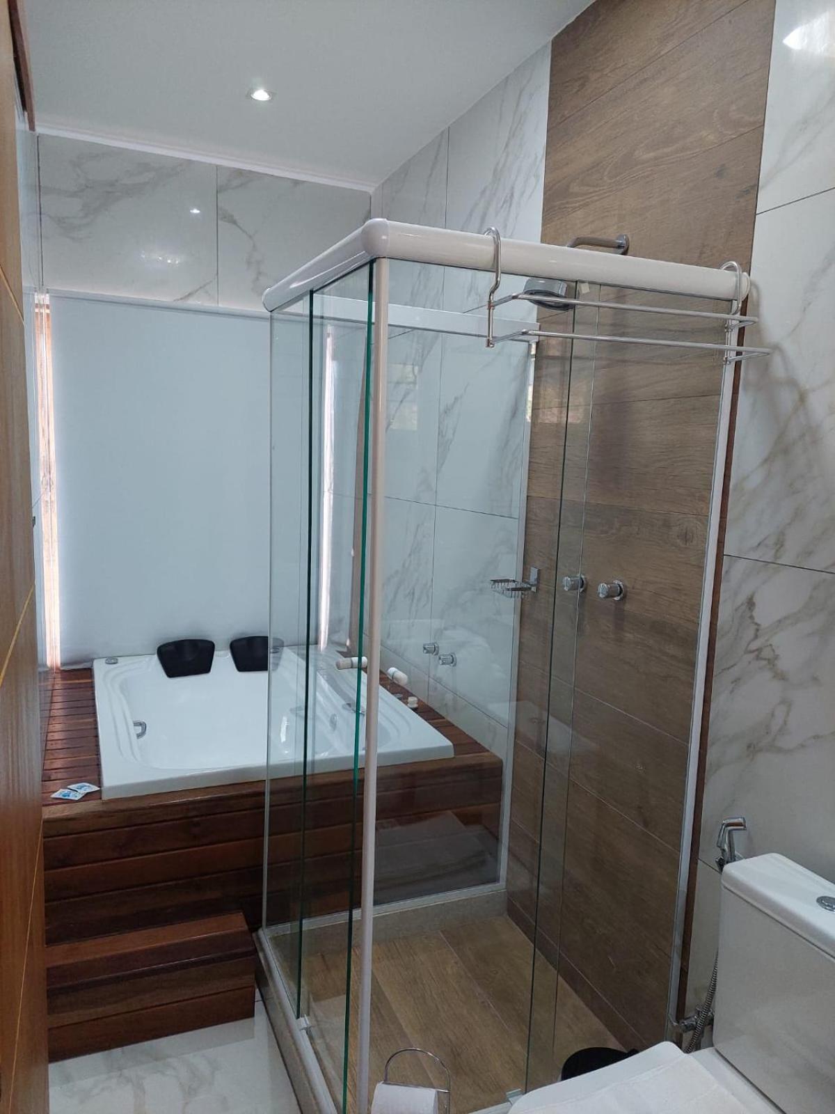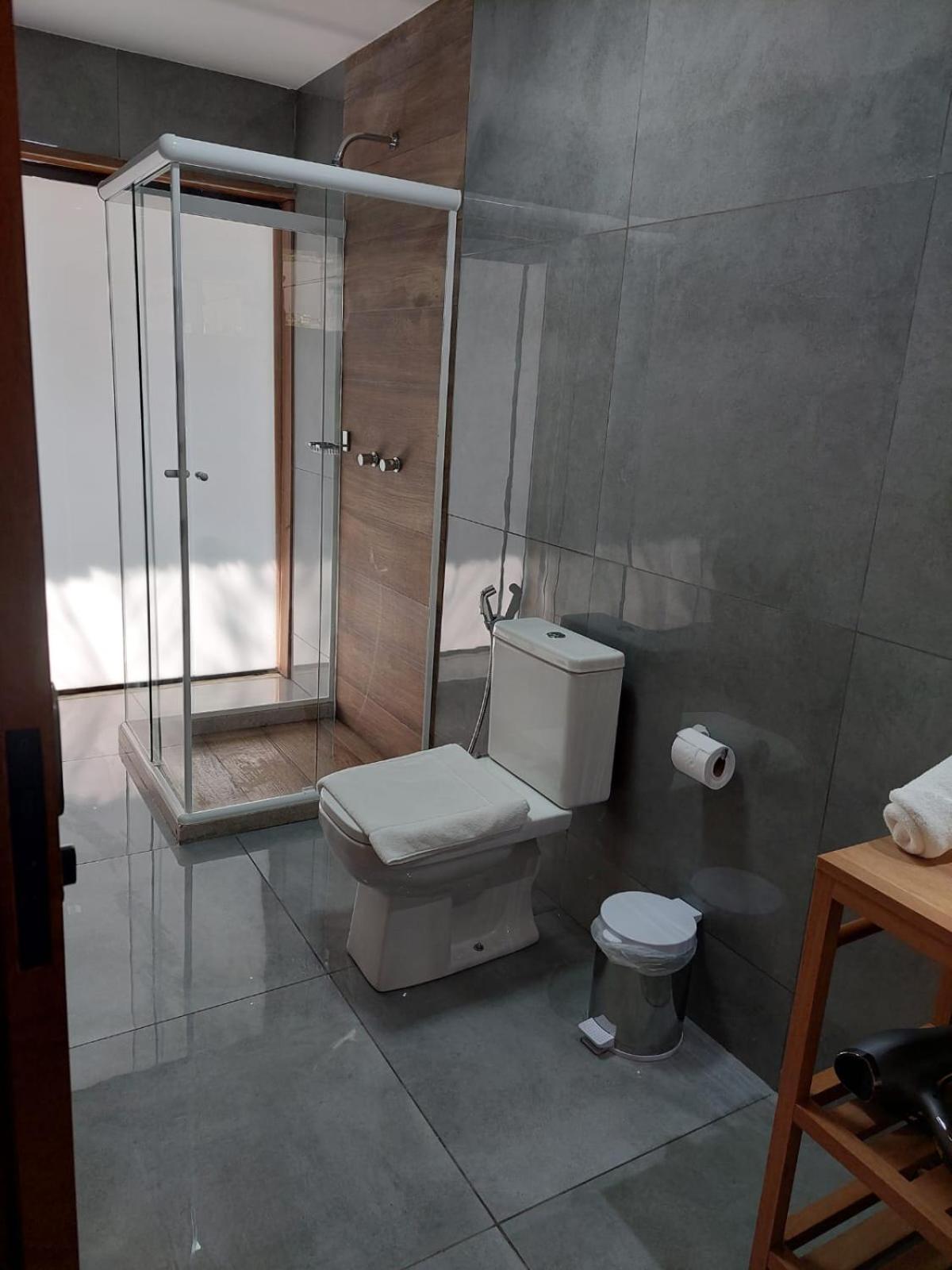 O banheiro do quarto tem apenas um fechamento parcial no box; então a cada banho, o banheiro ficava inundado. Poderiam trocar pra um blindex de lado a lado para resolver isso rapidamente.
