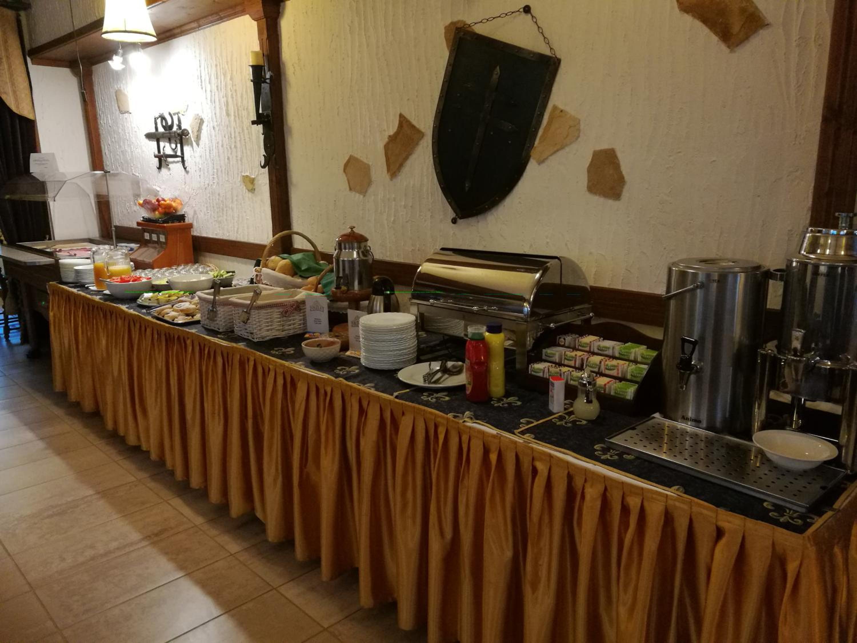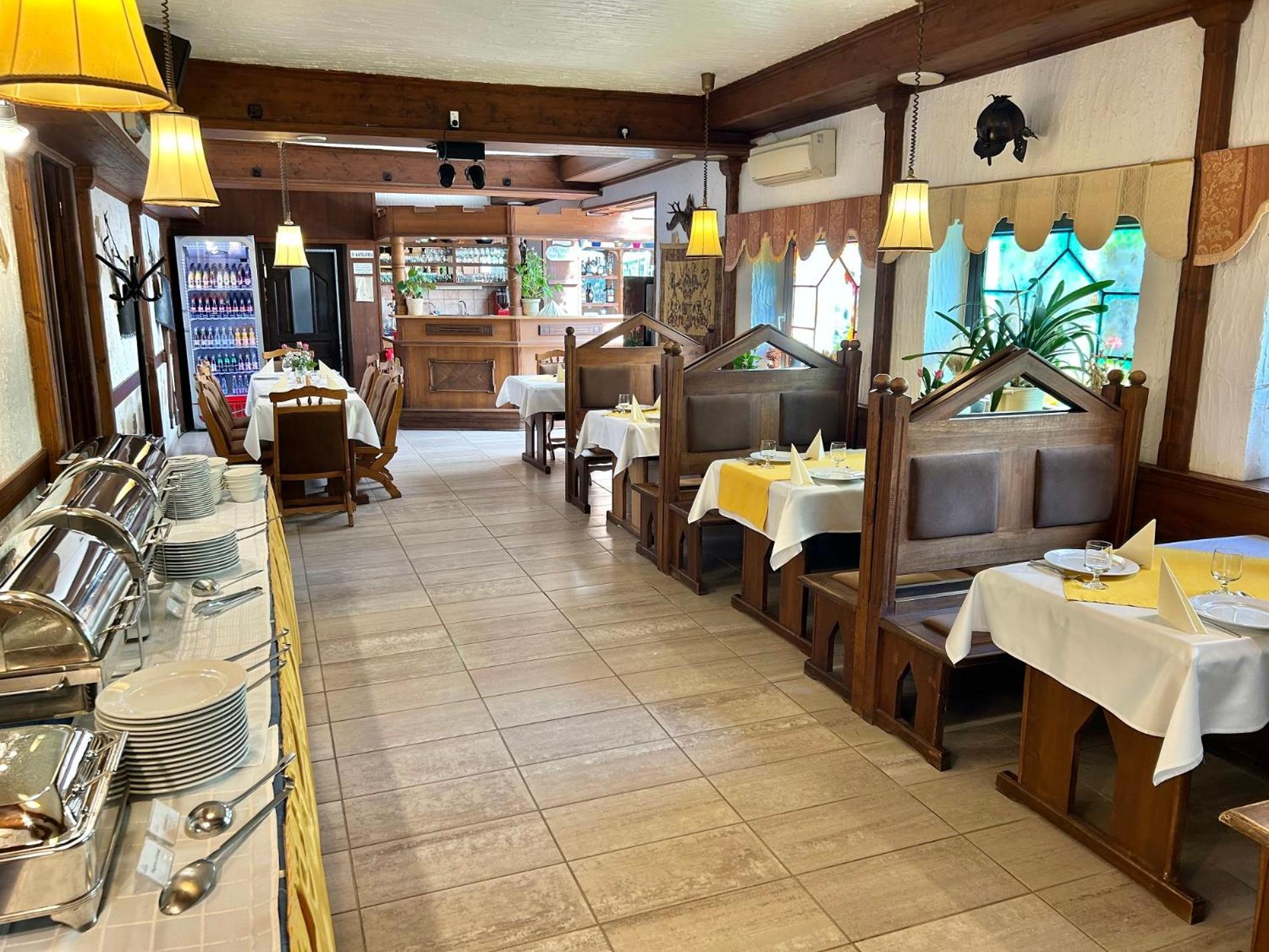 Всё новое,чистое,удобное.В гостинице именно ресторан,с белыми скатертями,а на завтрак и ужин шведский стол.