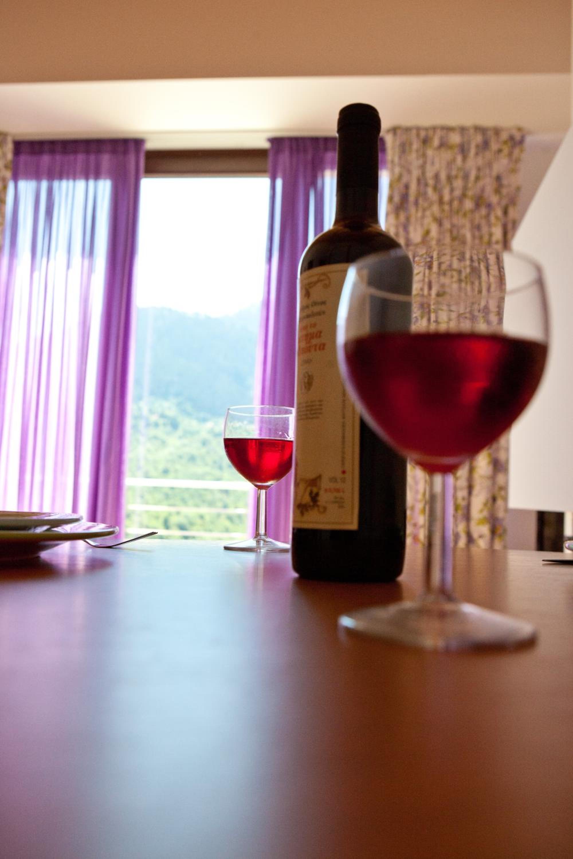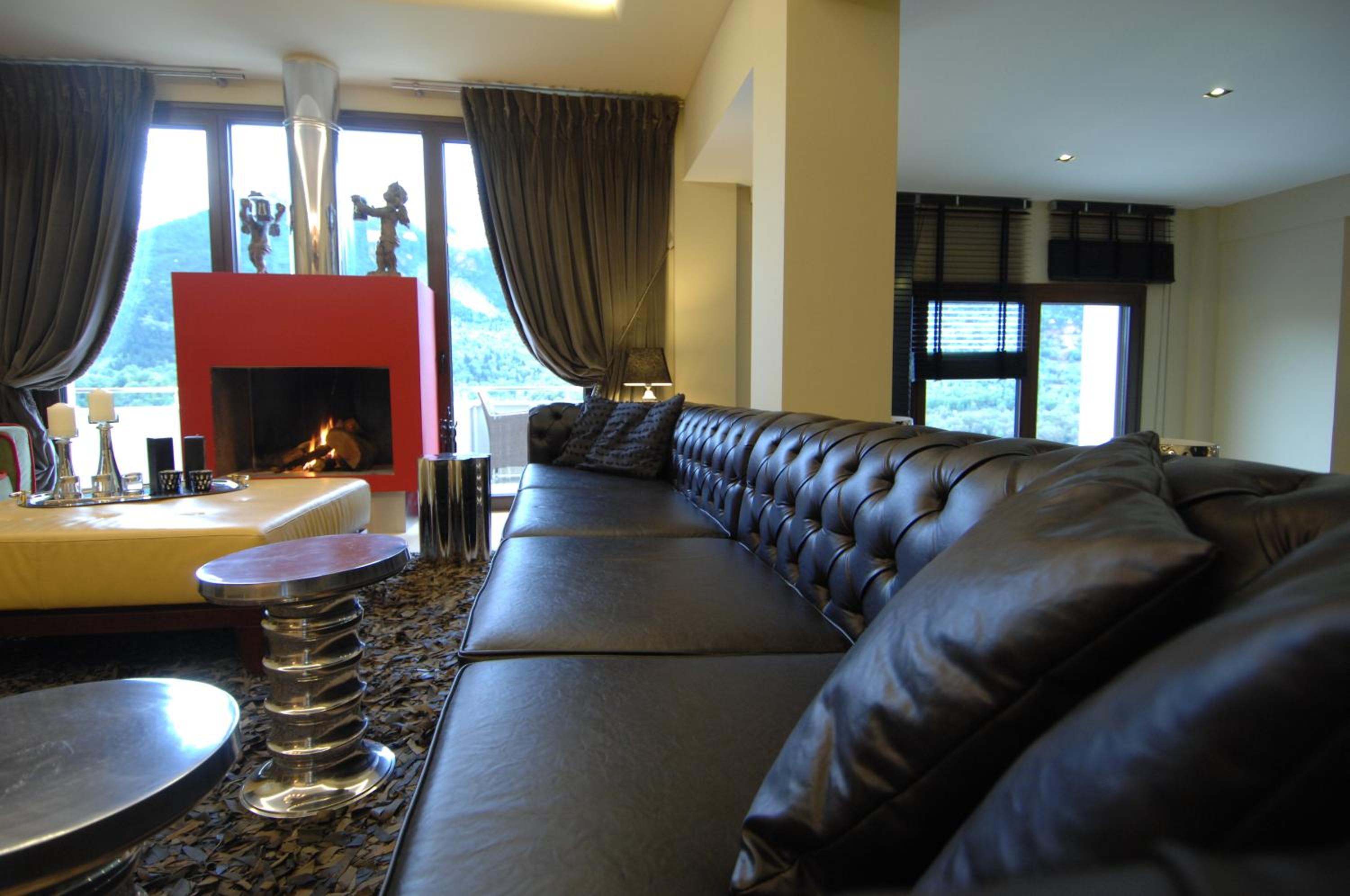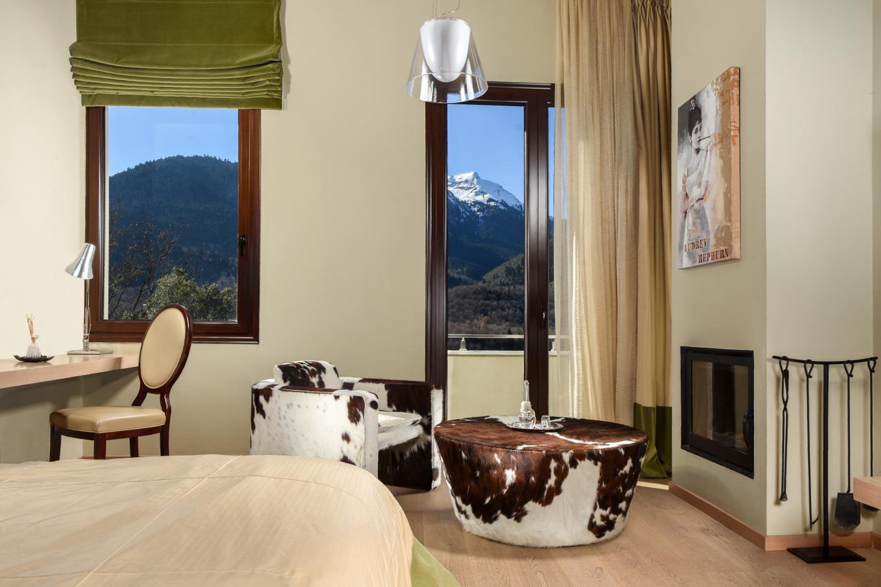 Surrounded by fir-covered Helidona Mountain, guests can savor homemade sweets, traditional pies, and seasonal salads at the stylish Forest lounge bar, all while enjoying the cozy ambiance by the fireplace.