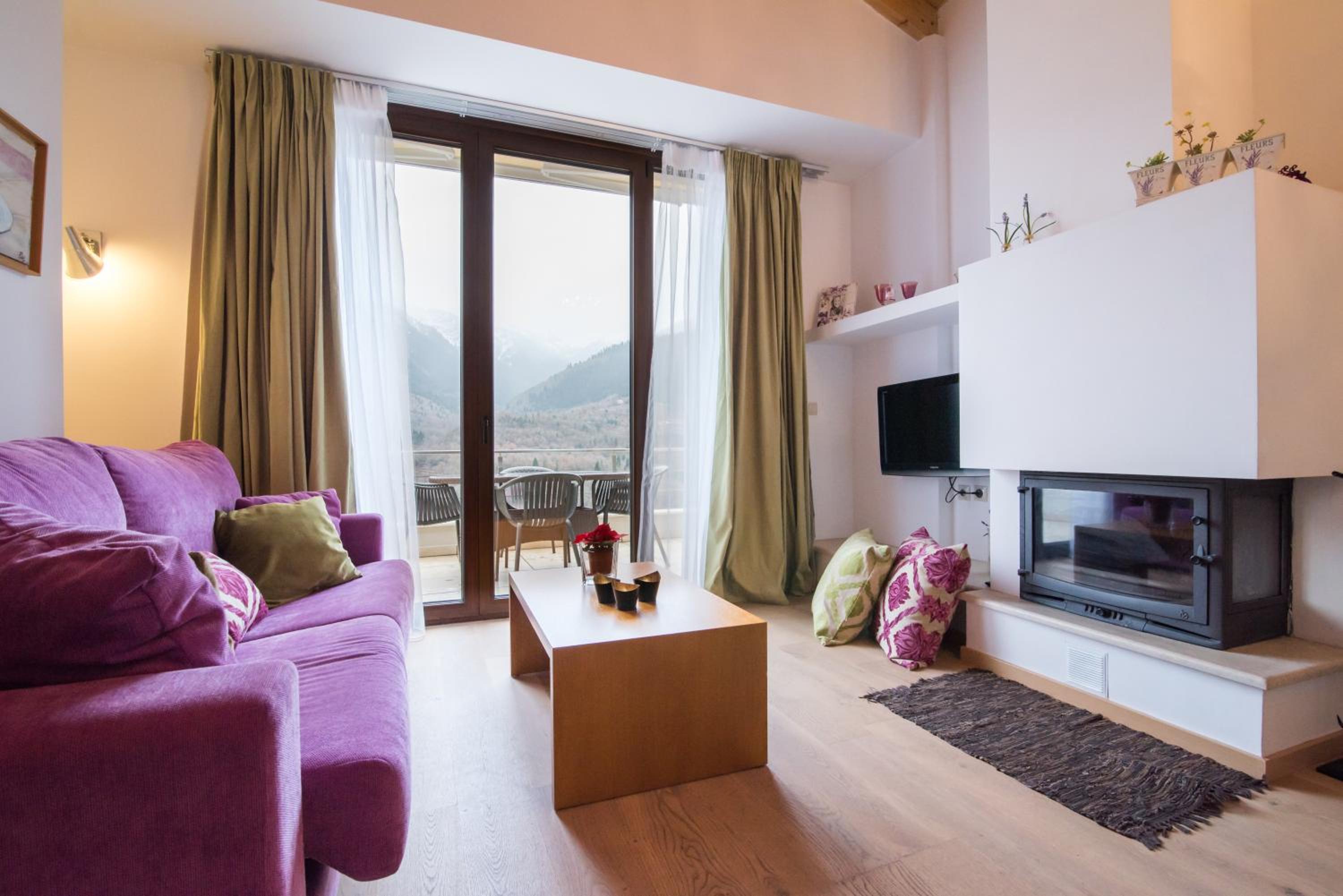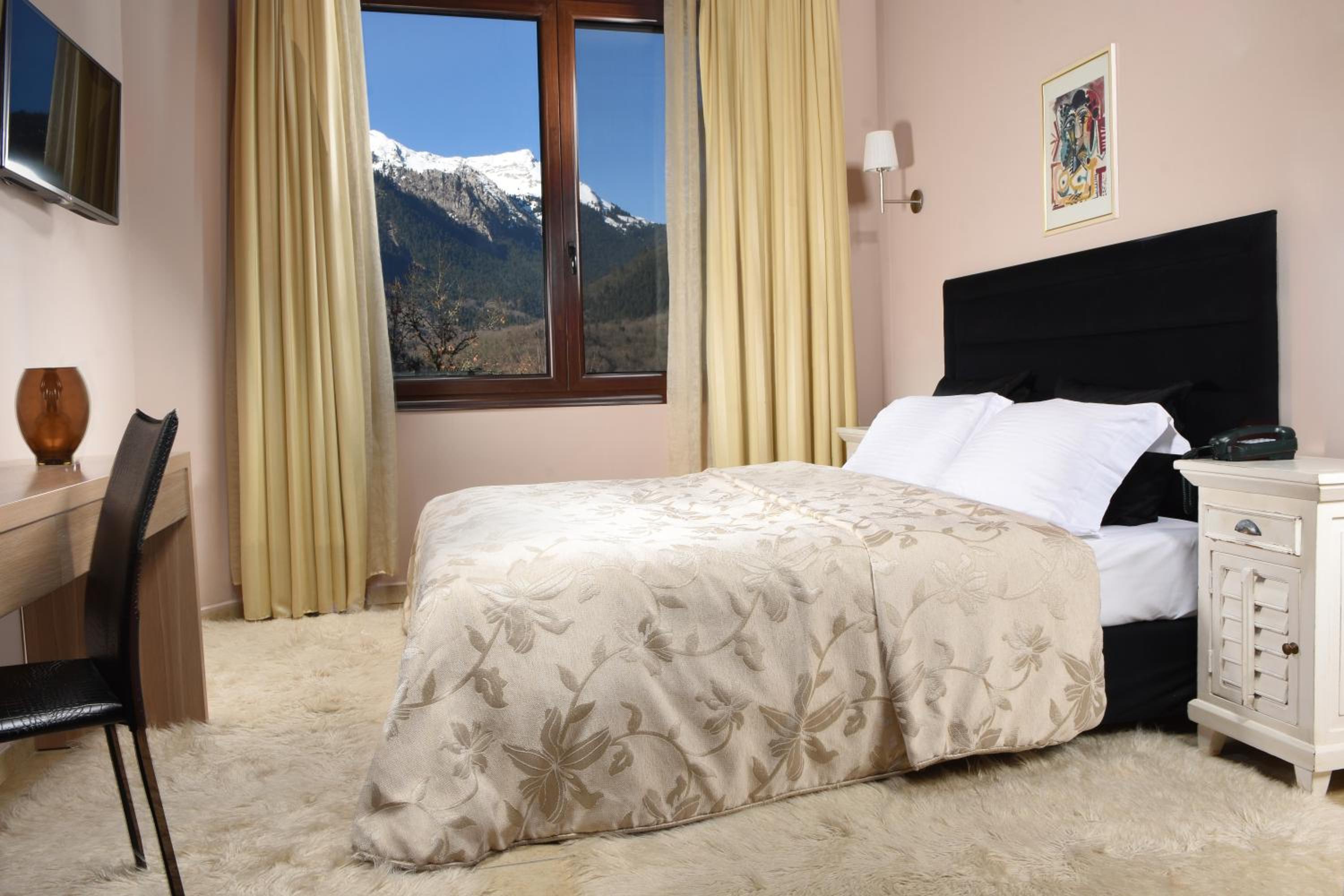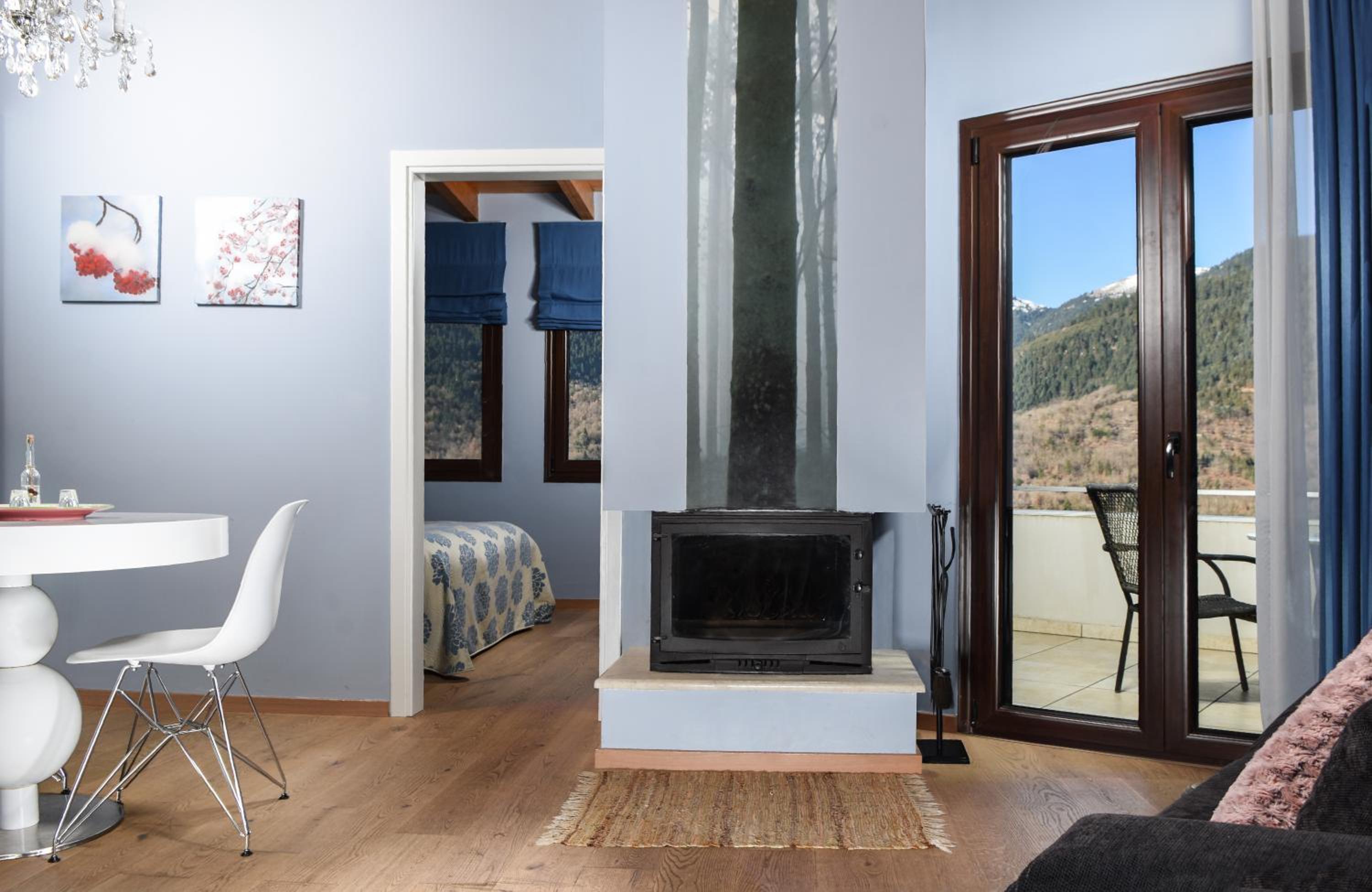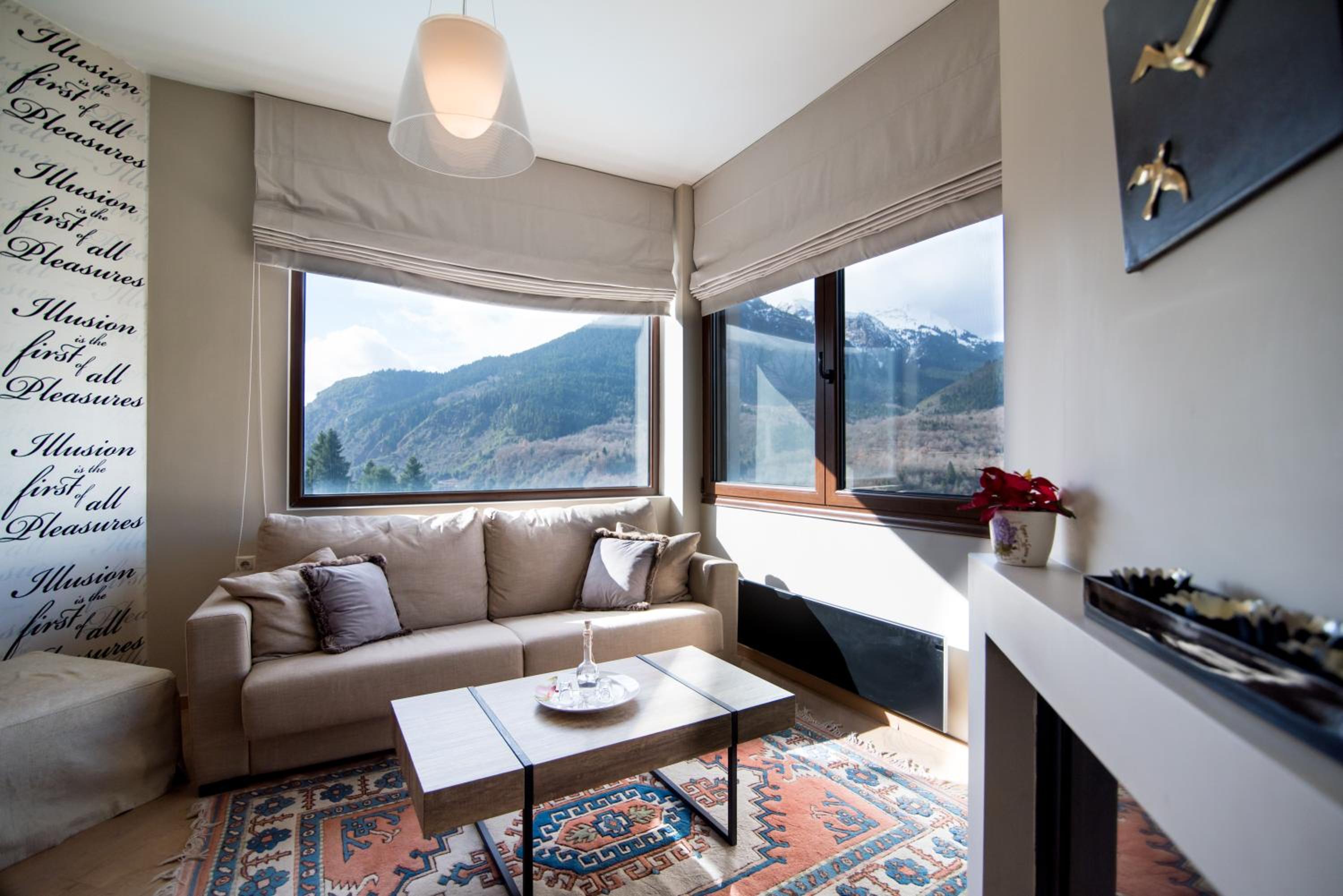 Forest Suites, nestled in Megalo Chorio above the Karpenisiotis River, offers boutique accommodation with a fireplace and balcony boasting stunning mountain views.