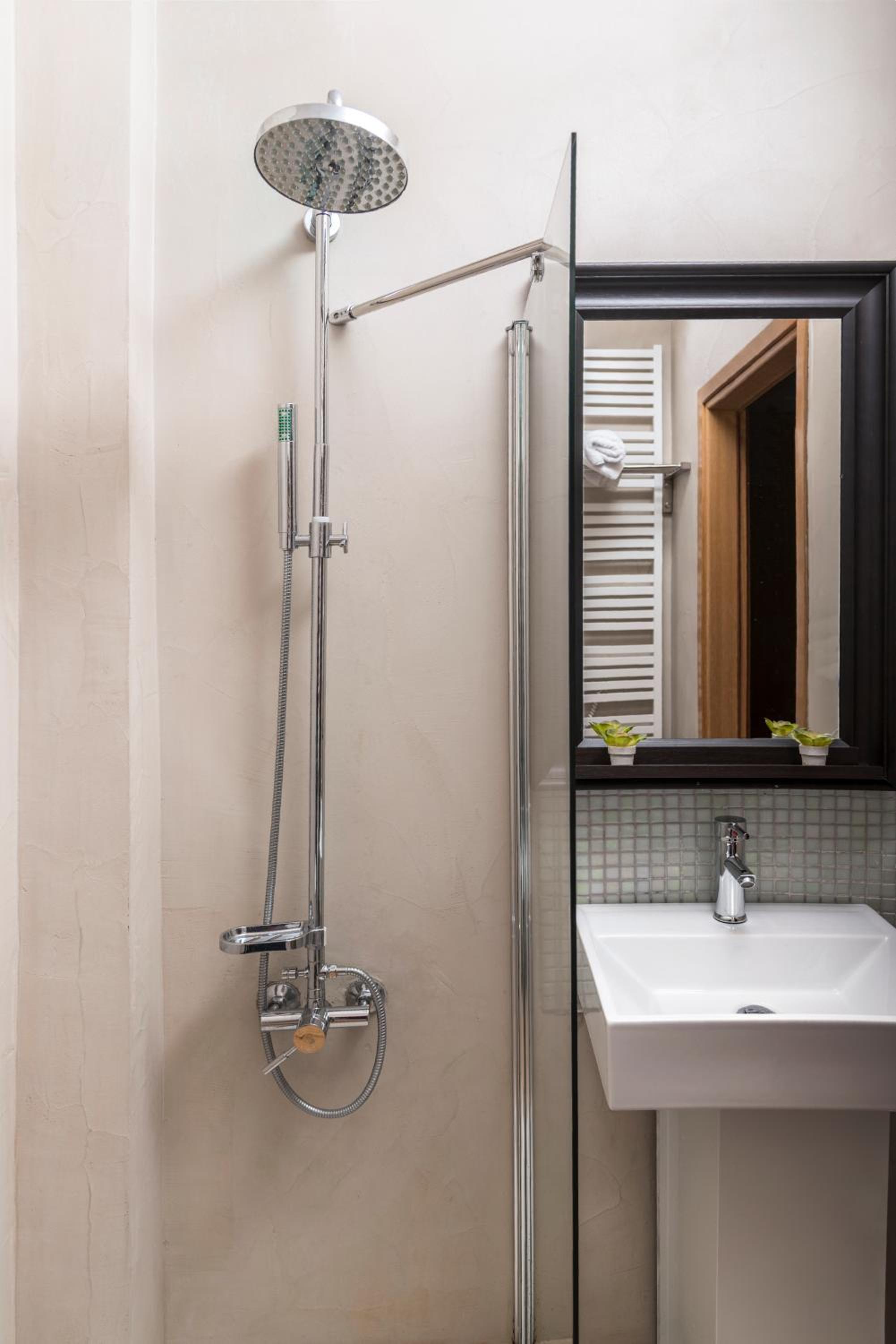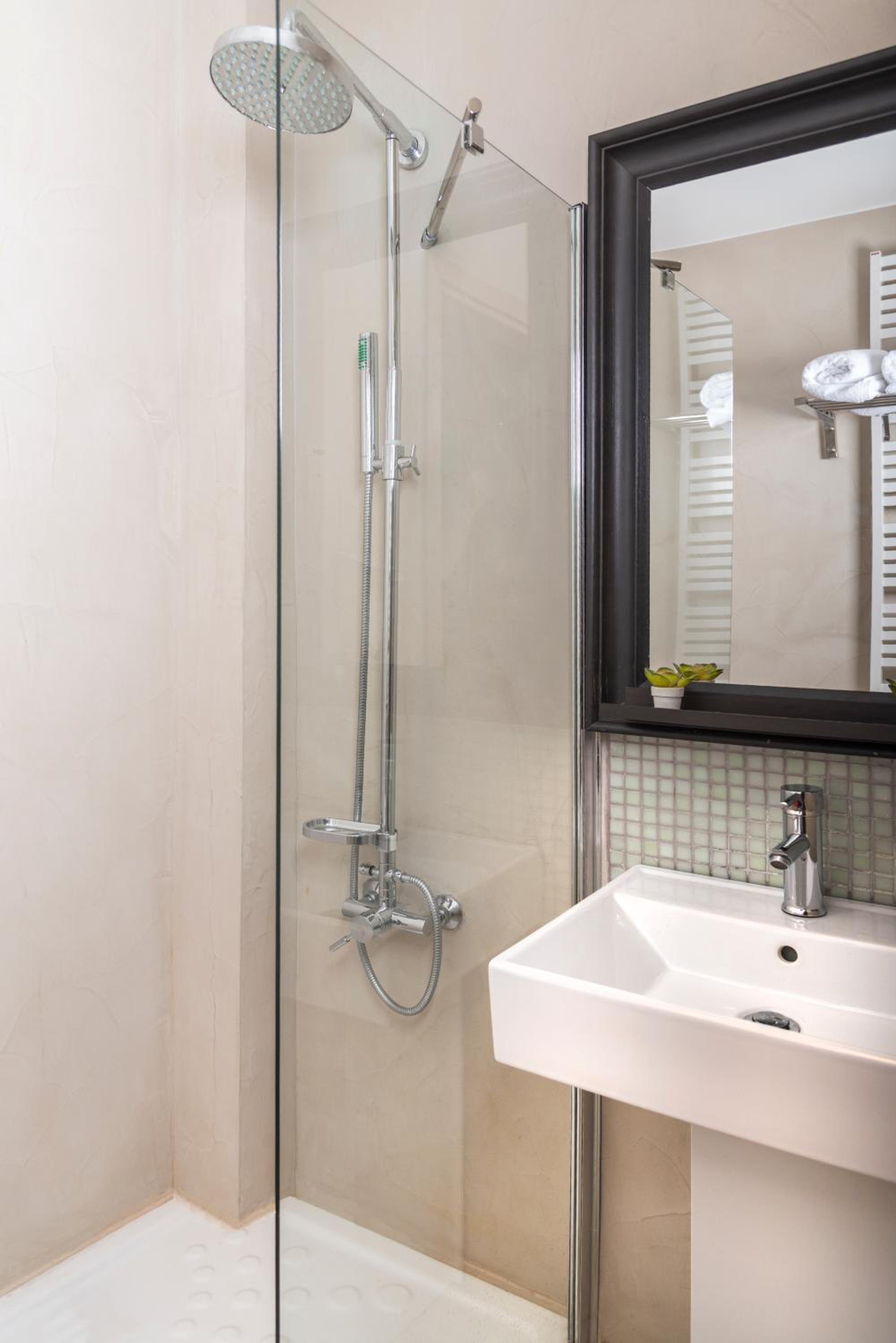 Στα αρνητικά το κυριότερο ήταν η πόρτα του μπάνιου.. Δεν είναι ακριβώς πόρτα, είναι σαν δίφυλλη πόρτα ντουλάπας.. Ταιριάζει στη αισθητική του δωματίου αλλά έχει ως αποτέλεσμα να μην υπάρχει ιδιωτικότητα στη τουαλέτα του δωματίου και από πλευράς οπτικής και ακουστικής απο το υπόλοιπο δωμάτιο(επισυνάπτεται φωτογραφία). Επιπλέον ενώ τα μπαλκόνια έχουν πολύ ωραία θέα, από το μεσημέρι και μετά ο καλοκαιρινός ήλιος κάνει απαγορευτικό το να κάτσεις στο μπαλκόνι είτε για χαλάρωση είτε για να καπνίσεις καθώς το χτυπάει πλήρως, κάτι που θα μπορούσε να λυθεί με τοποθέτηση τέντας που υπάρχουν για παράδειγμα στο κοινόχρηστο μπαλκόνι του ξενοδοχείου που σερβίρεται το πρωινό.. Να σημειώσω επιπλέον ότι βλέποντας το ξενοδοχείο έχει vibes για ζευγάρια και χαλάρωση αλλά ακριβώς από κάτω είναι η πισίνα, επομένως εάν υπάρχει παράλληλη κράτηση με παιδιά, δεν προσφέρεται το μπαλκόνι για χαλάρωση, ούτε να έχεις ανοιχτά τα παράθυρα.. Τέλος να σημειώσω ορισμένα προϊόντα στο πρωινό, ενώ ήταν πολύ ωραίο, δεν ήταν φρέσκα.. Οπως για παράδειγμα κριτσίνια, φρυγανιές και το κέικ καταλάβαινες ότι ήταν ανοιχτά κάποιες ημέρες και από την υφή και από την γεύση.. Τέλος όπως έχει σημειωθεί από άλλους πελάτες, το parking δεν χωράει αρκετά αμάξια με αποτέλεσμα να υπάρχει άγχος αν θα βρεις να παρκάρεις ή θα το αφήσεις στον κεντρικό δρόμο σε δημοτικό πάρκινγκ.