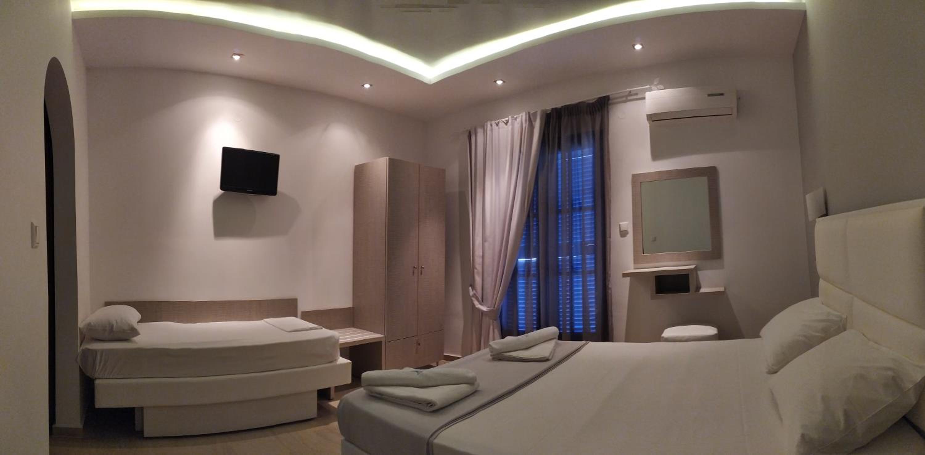 Als für Griechenland das Zimmer war wirklich ordentlich ausgestattet, gar nicht abgenutzt und ziemlich hochwertig. Die Besitzer waren auch sehr freundlich, die extra Wünsche wurden sofort erfüllt. Die Matrazen sind ziemlich hart, aber eine Lösung wurde schnell gefunden. Das Frühstück ist nicht wow, aber ausreichend. Das Personal gibt sich wirklich Mühe. Ich würde das Hotel für einen ruhigen Urlaub sehr empfehlen! 20 Minuten zu Fuss zu einer Stadt in beide Richtungen (Tavernas, Läden) ist eine gute Gelegenheit sich ein wenig zu bewegen. Es gibt super gepflasterten Weg!