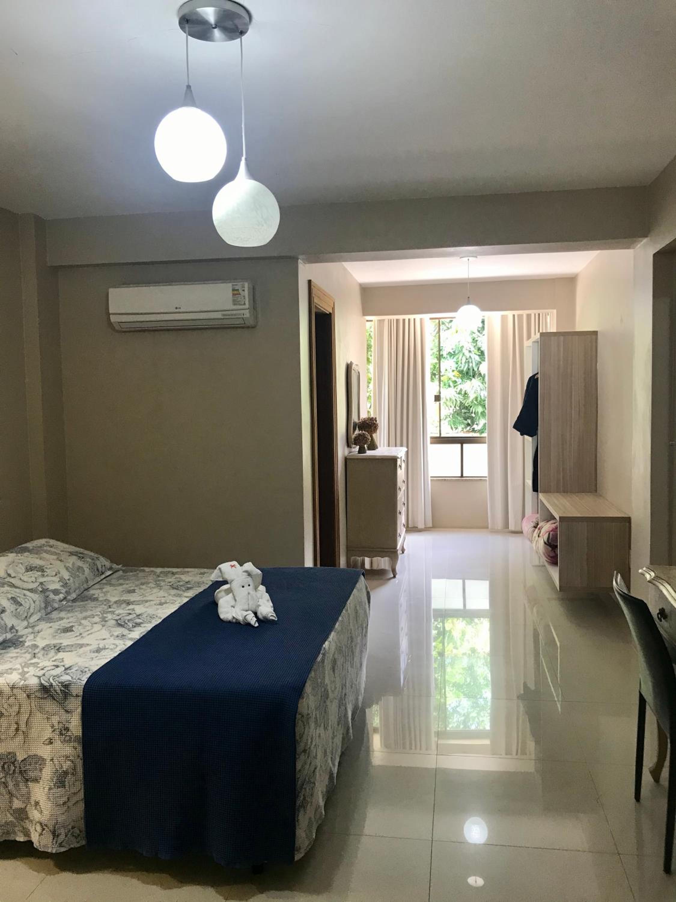 Acho que no banheiro poderia ter mais produtos disponíveis (xampu, condicionador,touca de banho), frigobar vazio , poderiam disponibilizar água, os cantos do teto do quarto e banheiro estavam com pequenas aranhas. Disponibilizar aparelho para mosquitos.