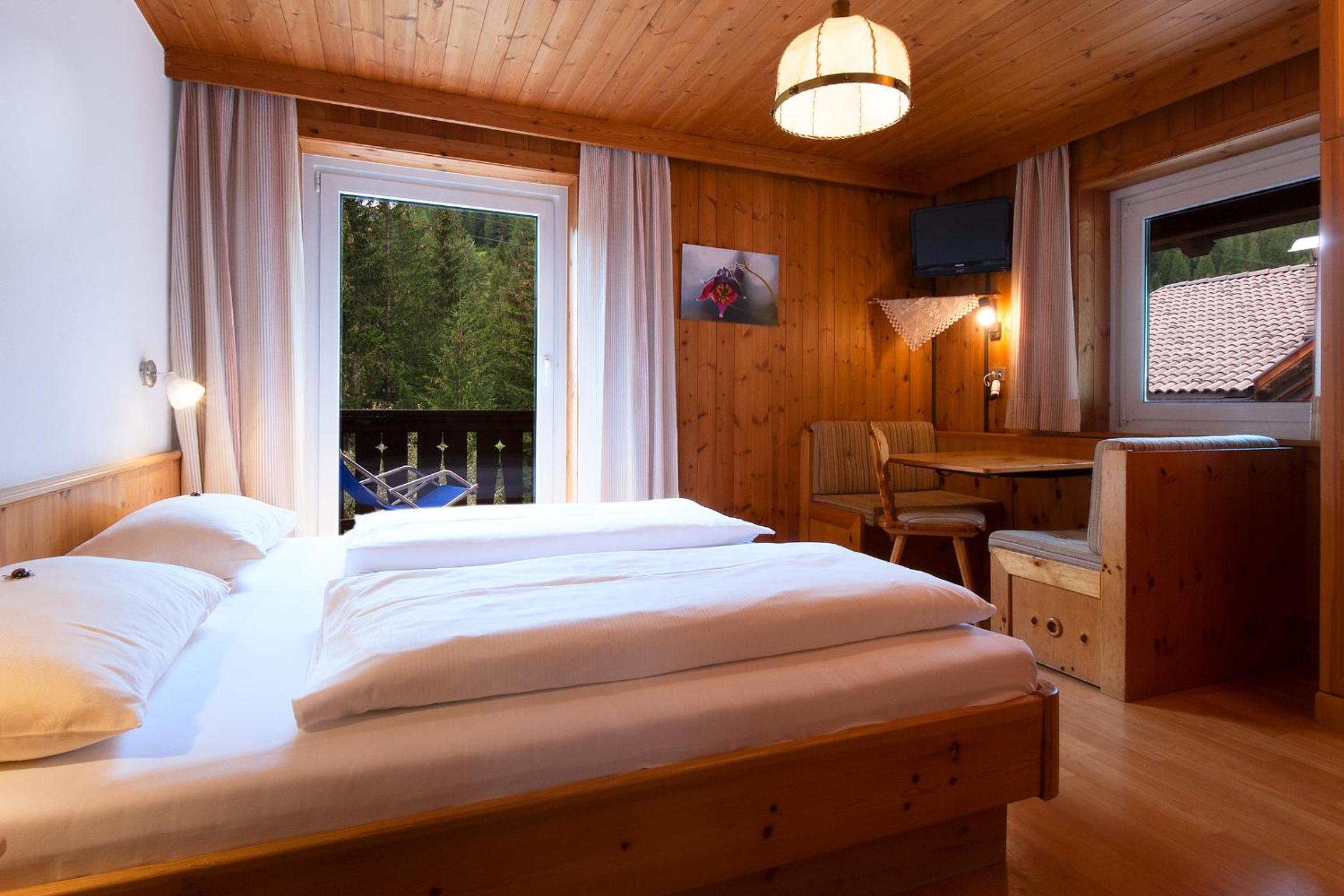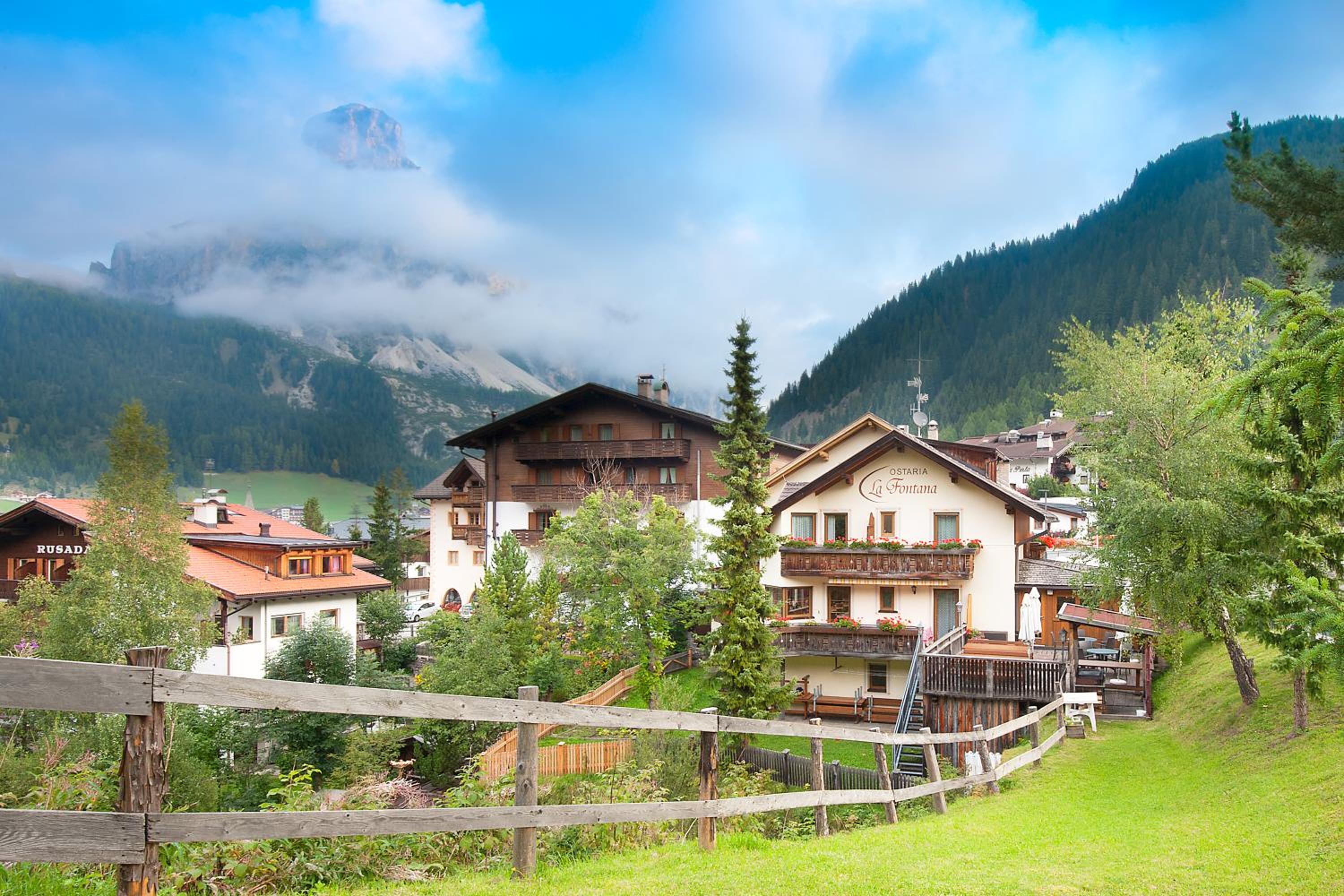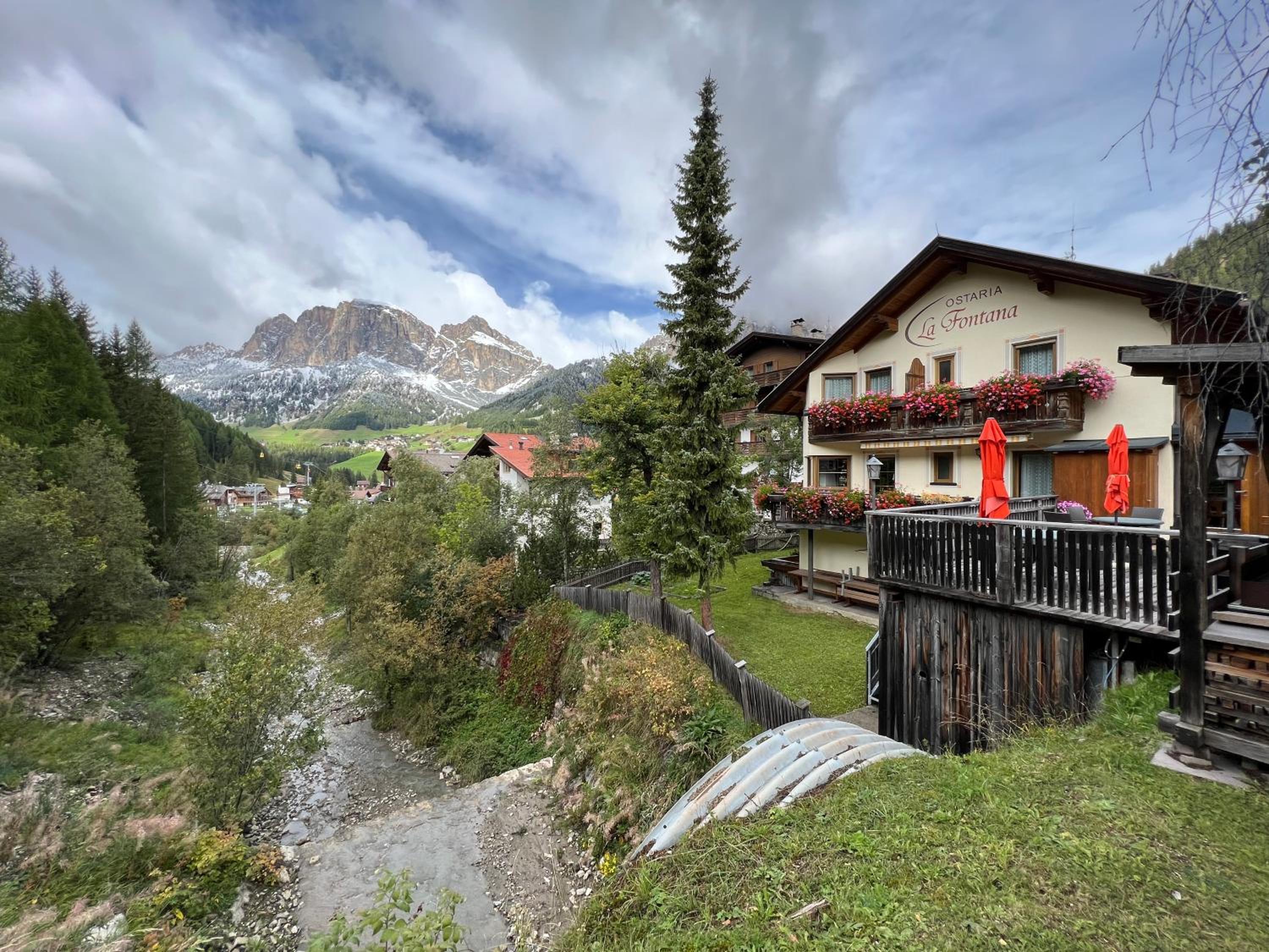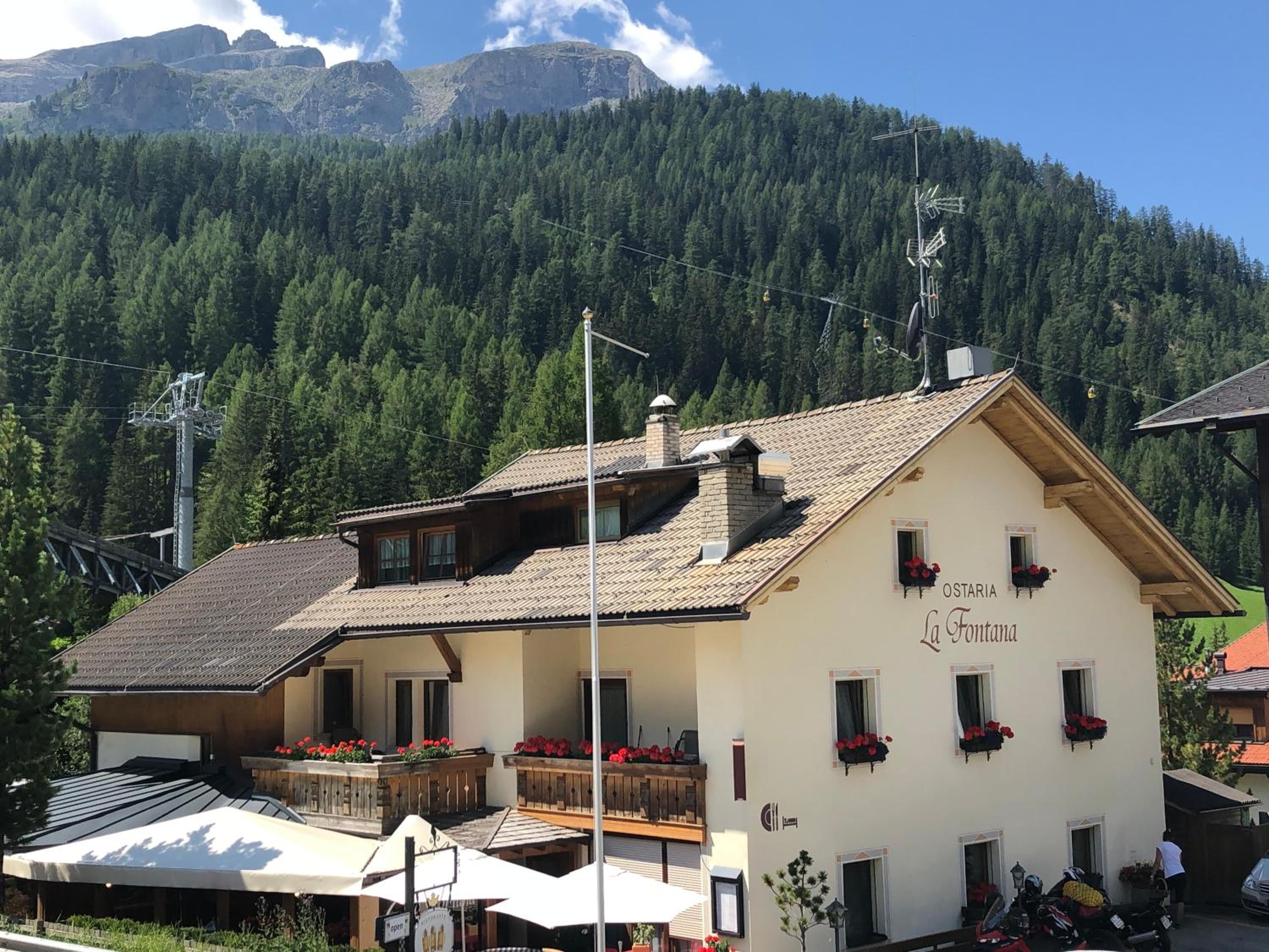 Each room at Ostaria La Fontana is designed for comfort, featuring a private balcony with stunning garden or Dolomites views. With wooden furnishings, plush carpeted floors, and modern amenities like a flat-screen TV, your stay is sure to be relaxing.