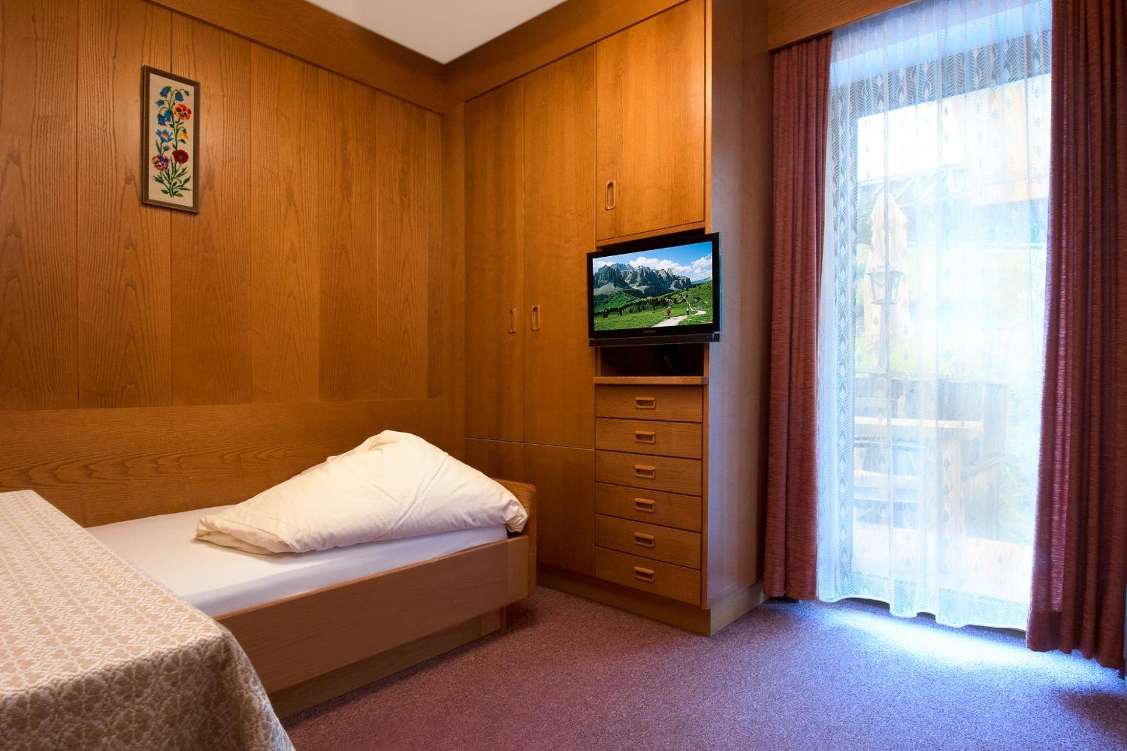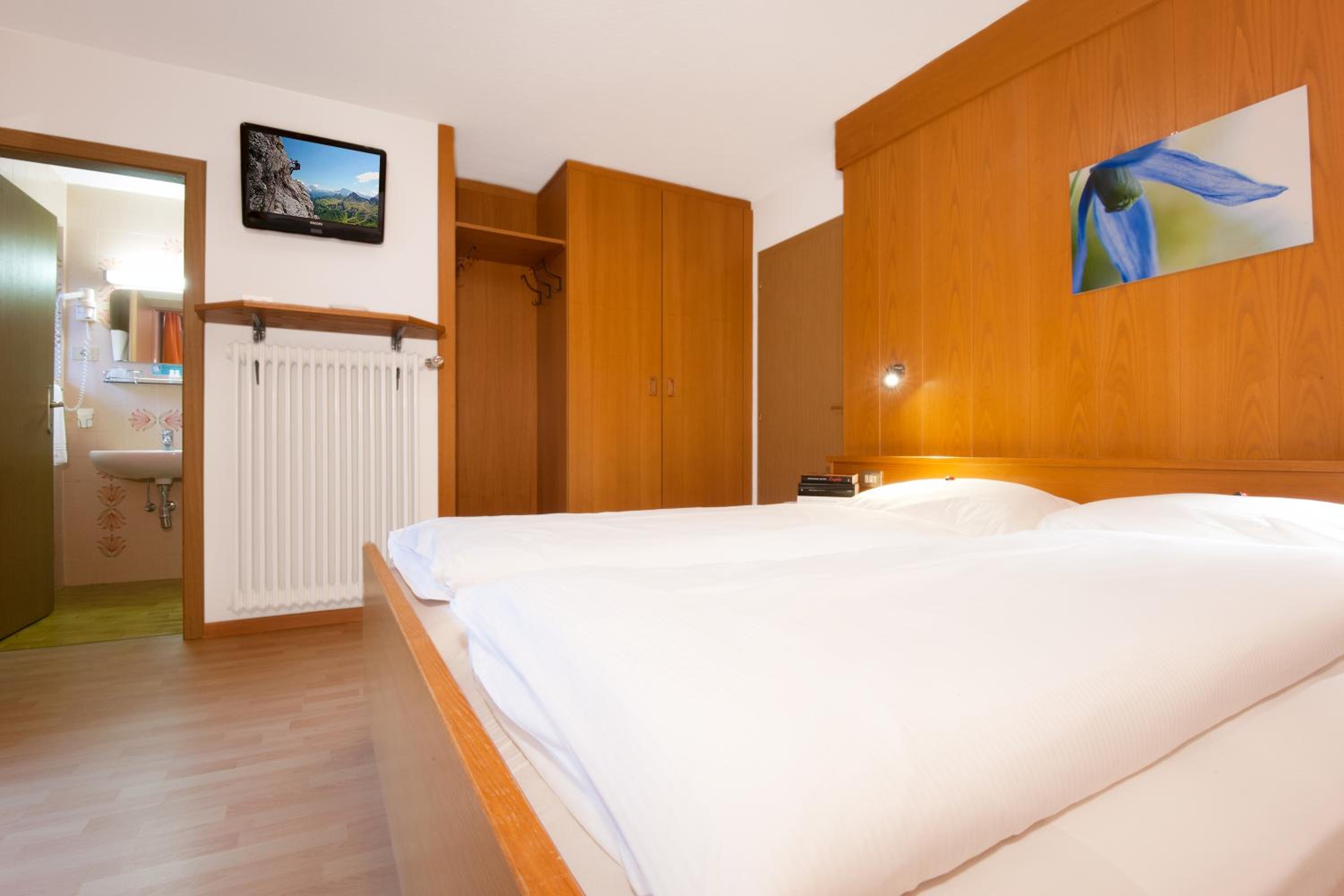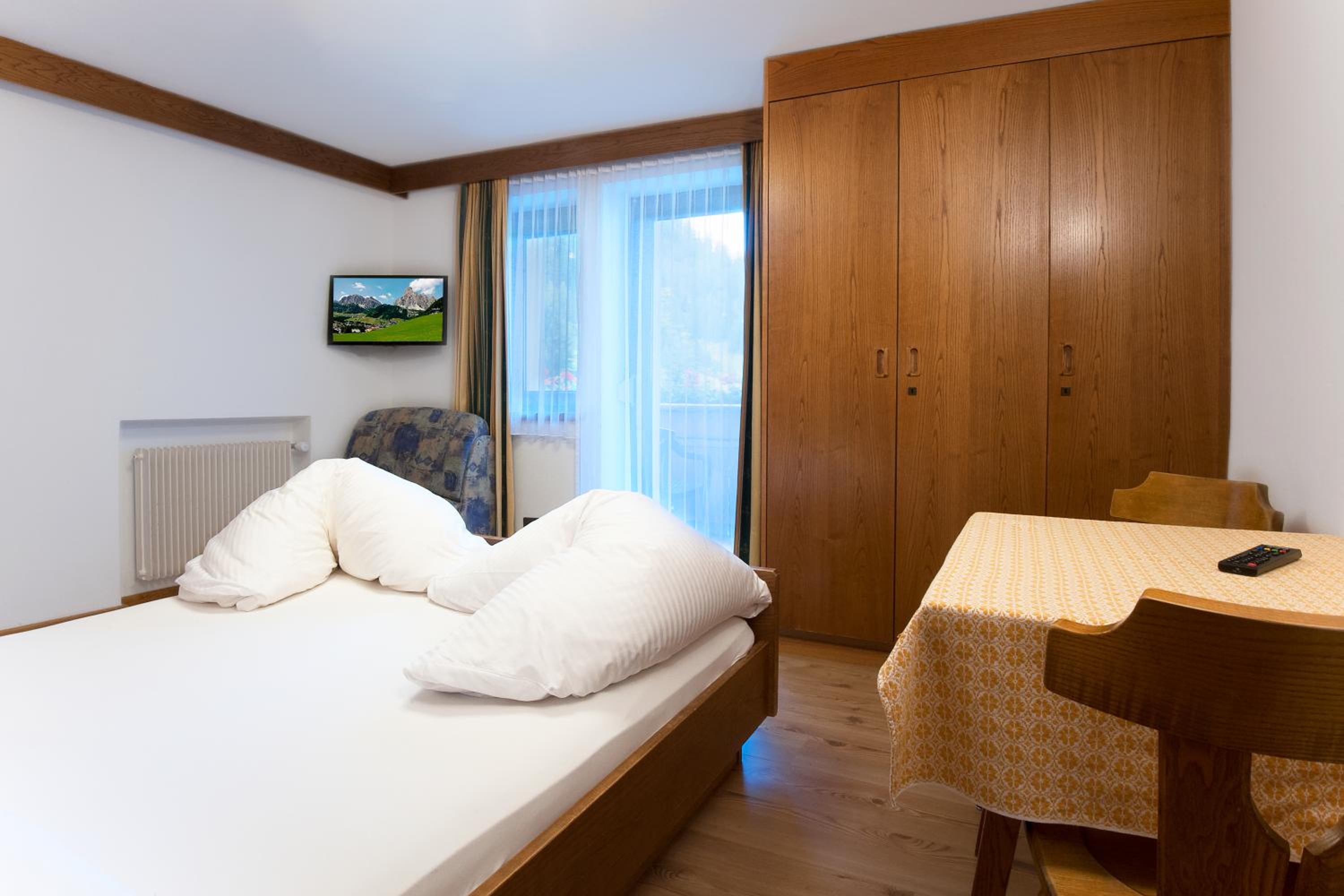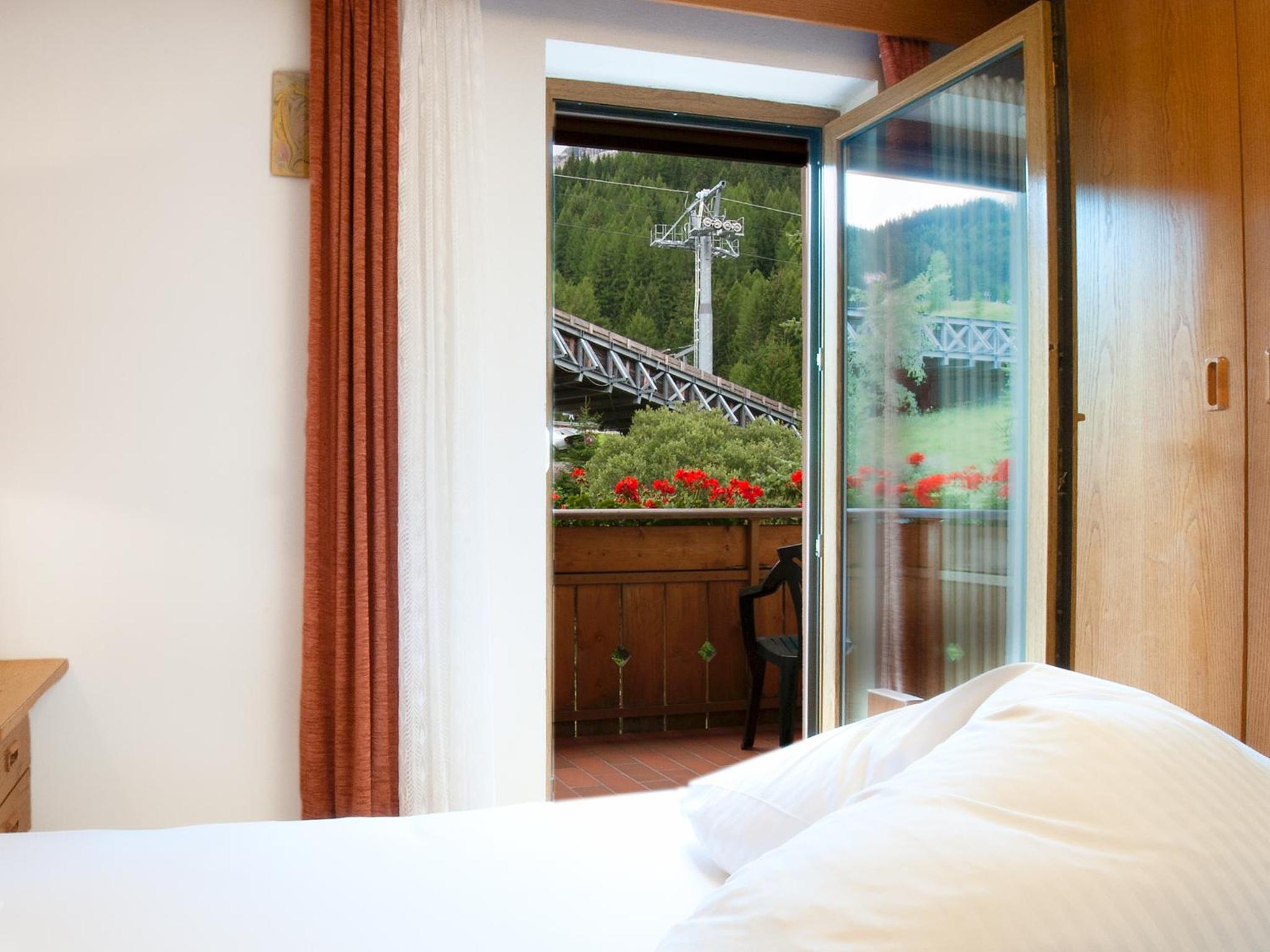 Each room at Ostaria La Fontana is designed for comfort, featuring a private balcony with stunning garden or Dolomites views. With wooden furnishings, plush carpeted floors, and modern amenities like a flat-screen TV, your stay is sure to be relaxing.