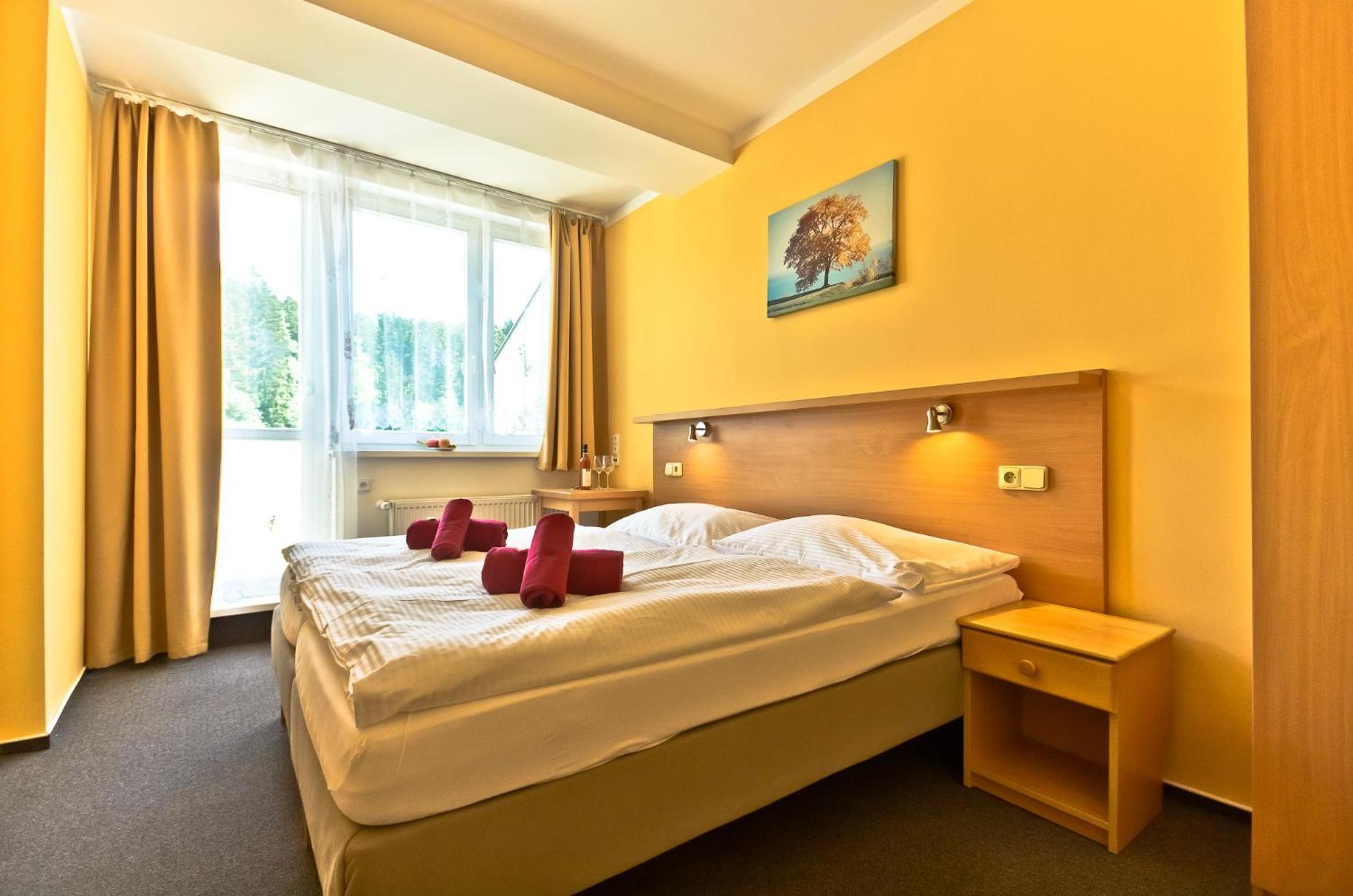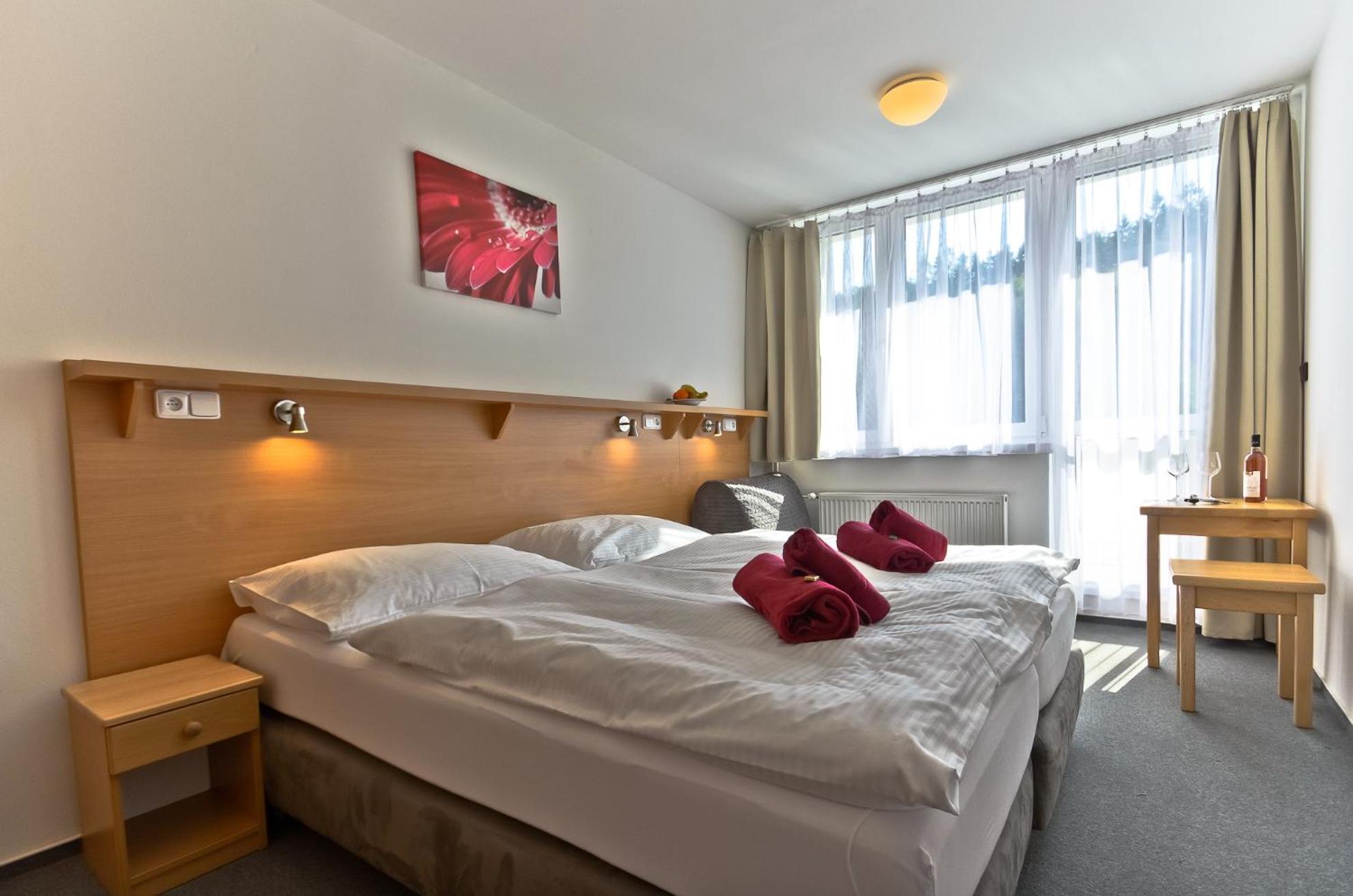 Gute und ruhige Lage am Wald. Beste Voraussetzungen, um mit dem Hund zu laufen. Das Frühstück war ausreichend und für jeden Geschmack etwas dabei. Das Zimmer für zwei Personen mit Hund war sauber und ausreichend groß. Das Personal war sehr nett. Unser Zimmerwunsch wurde berücksichtigt. Es wird neben Tschechisch (:-) auch Englisch gesprochen. Alles in allem kann ich das Hotel empfehlen.