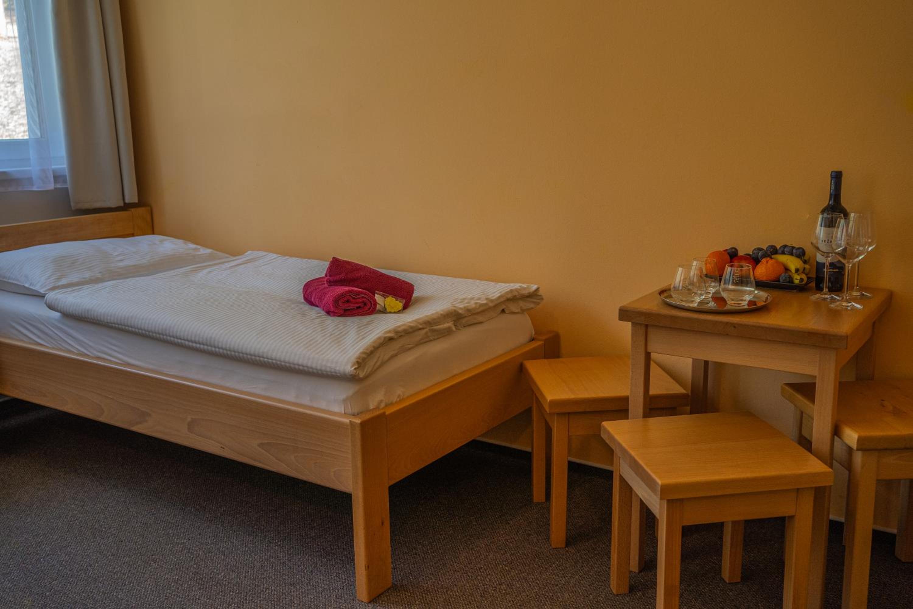 Pokoj malý, čistý. Bazén příjemný bonus. Okolí fajn na procházky se psem.