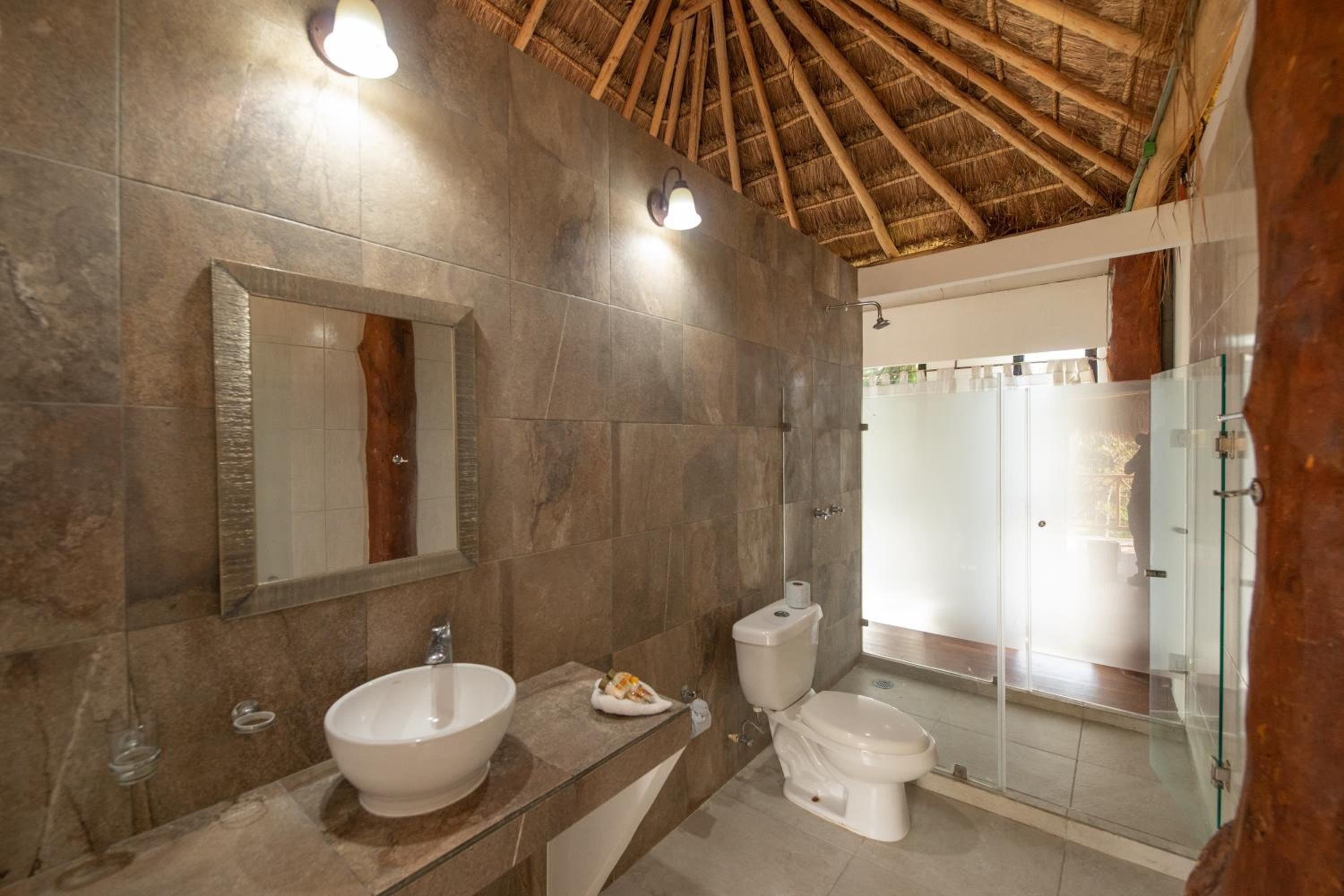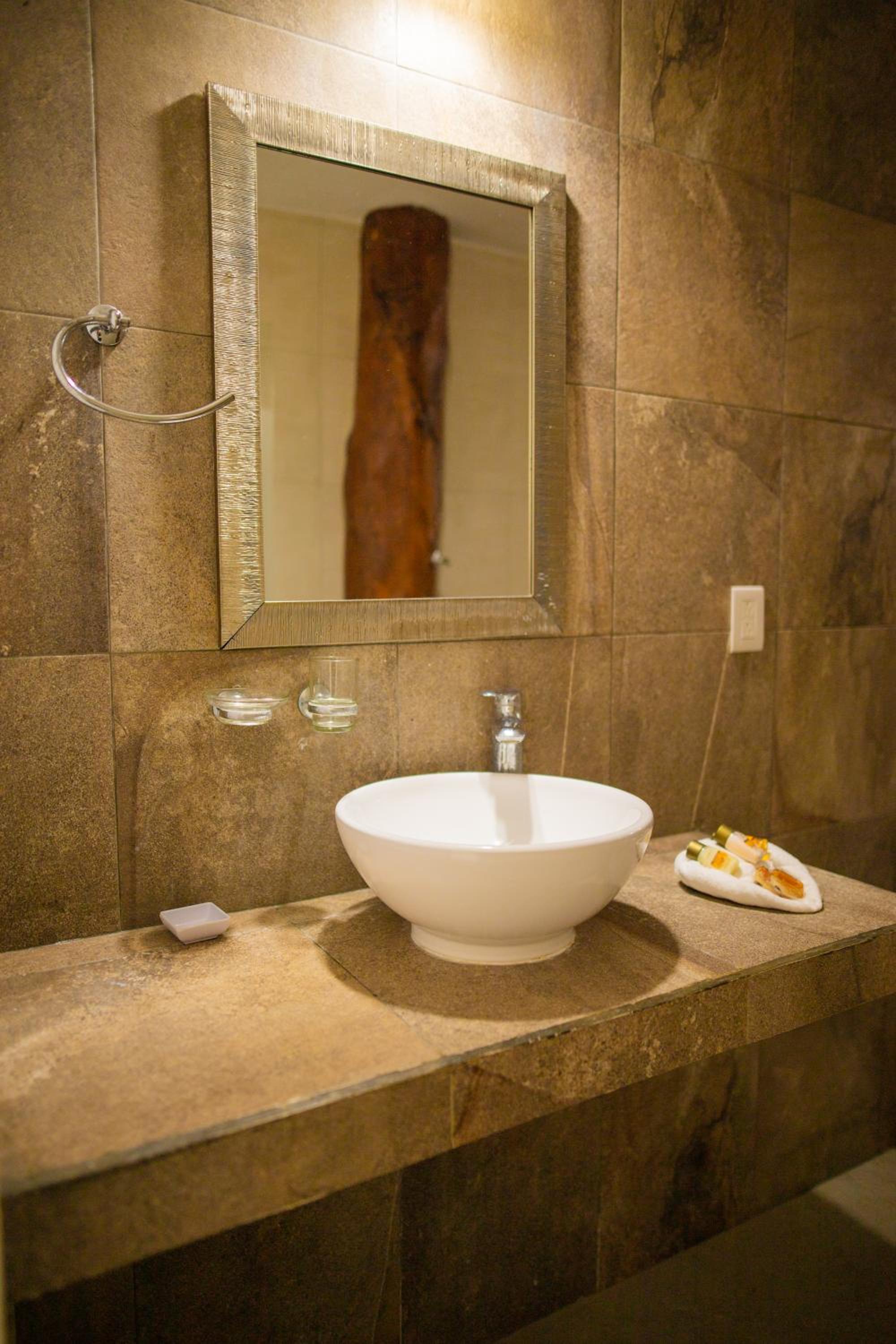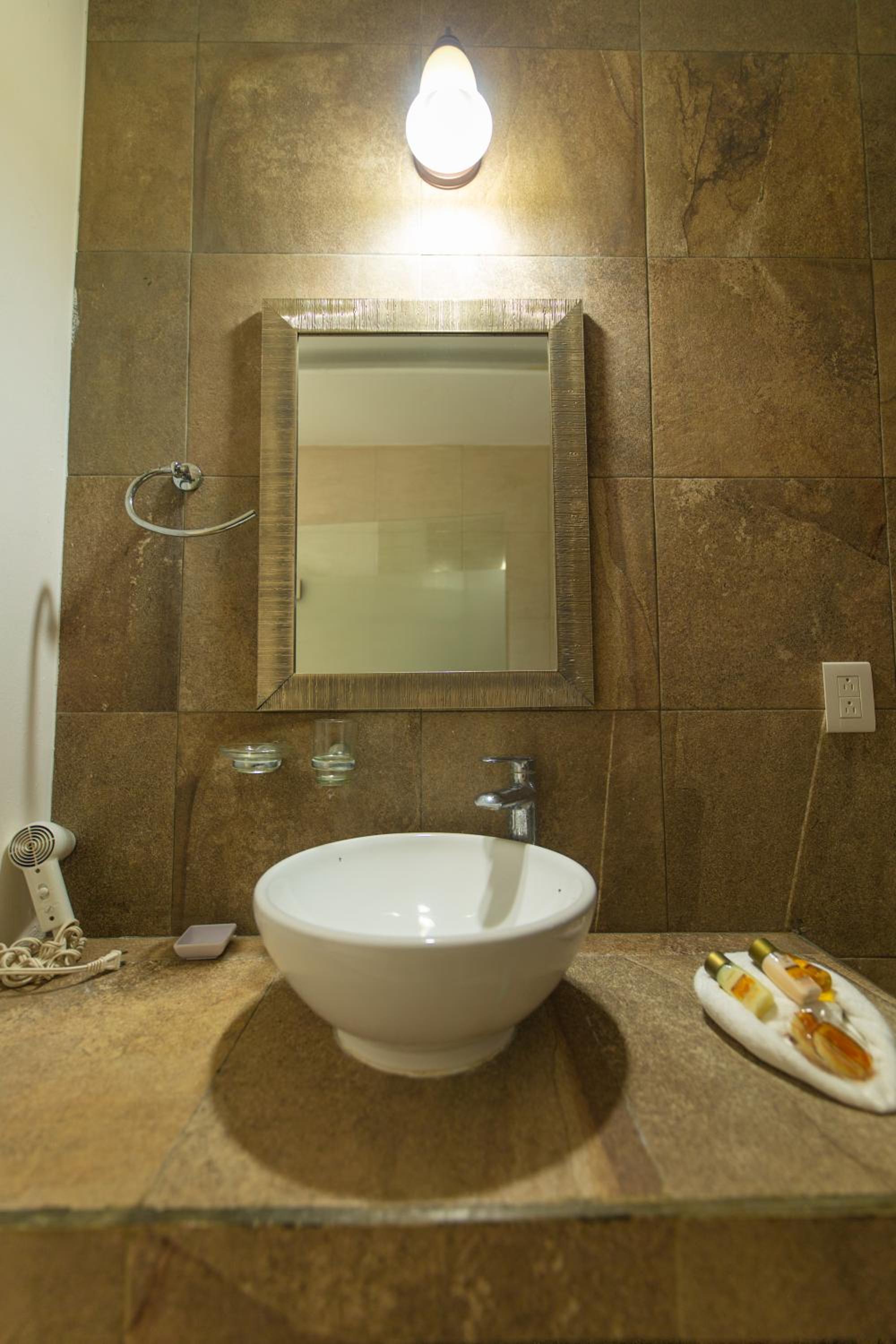 La salle de bain est vétuste. Le robinet dépasse à peine la vasque. La porte est cassée ( dans notre chambre). Il y avait très peu de pression.