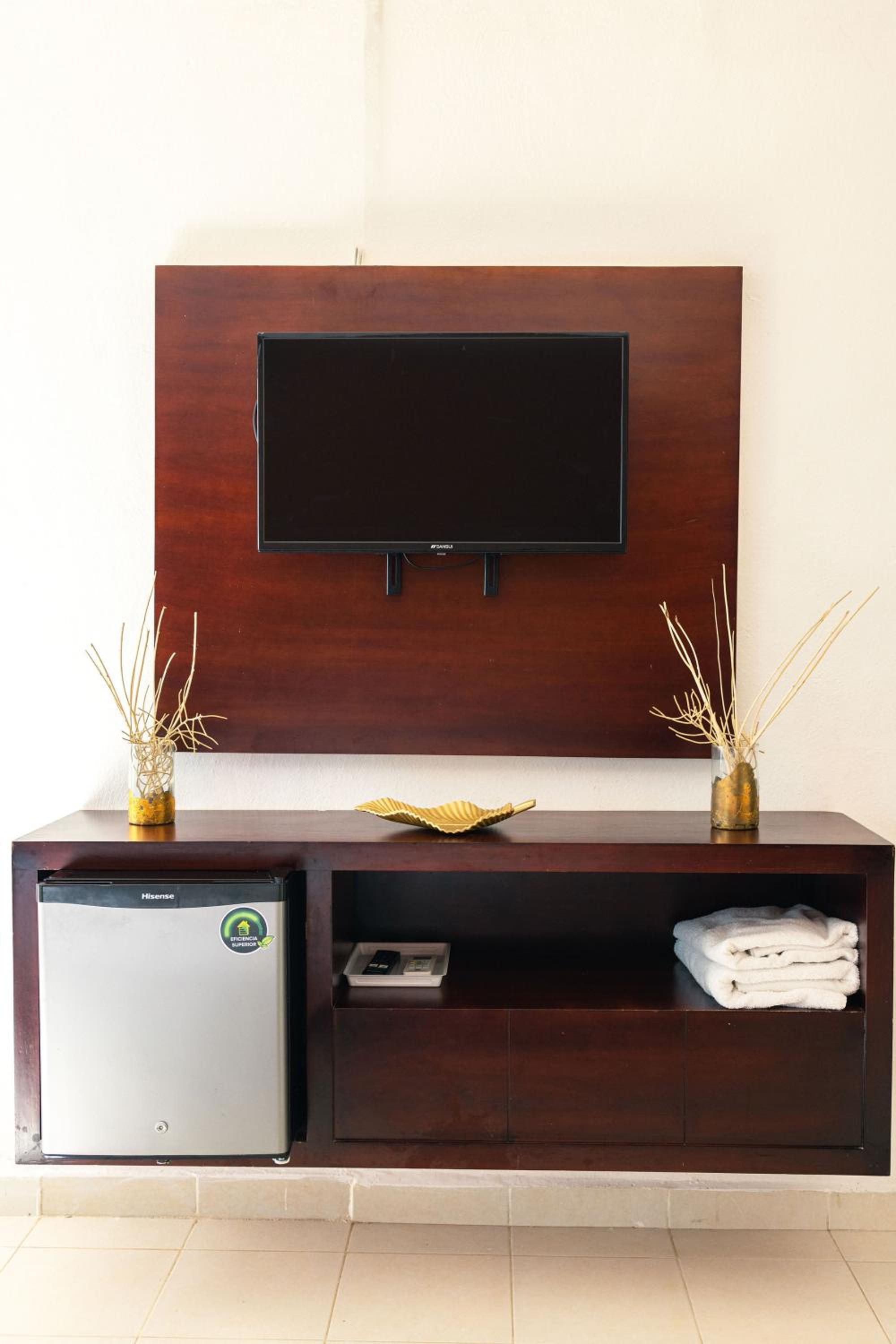 La posizione vicino al centro e sulla spiaggia. Le uniche cose apprezzabili in camera sono l'aria condizionata e minibar entrambi silenziosi.