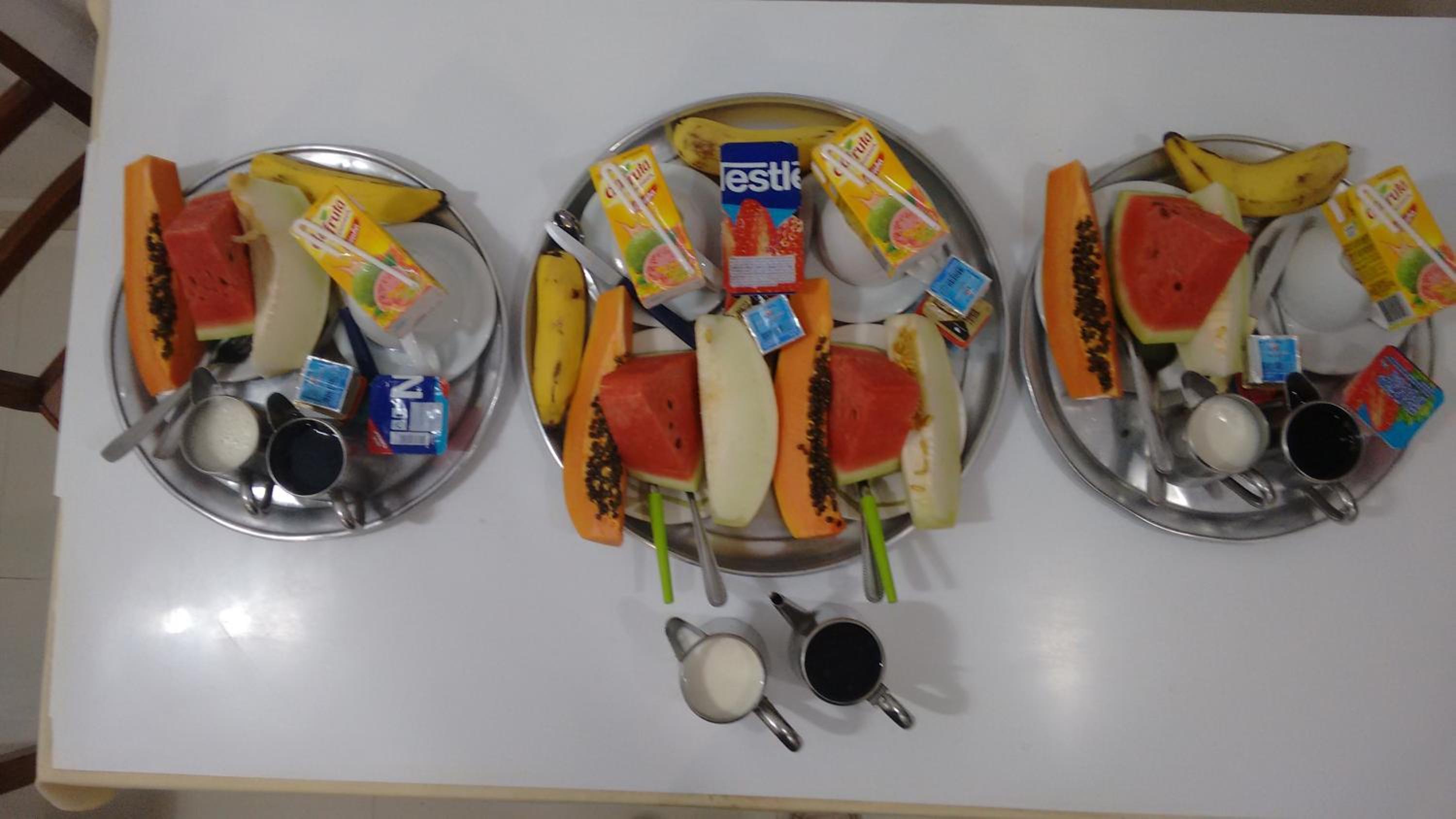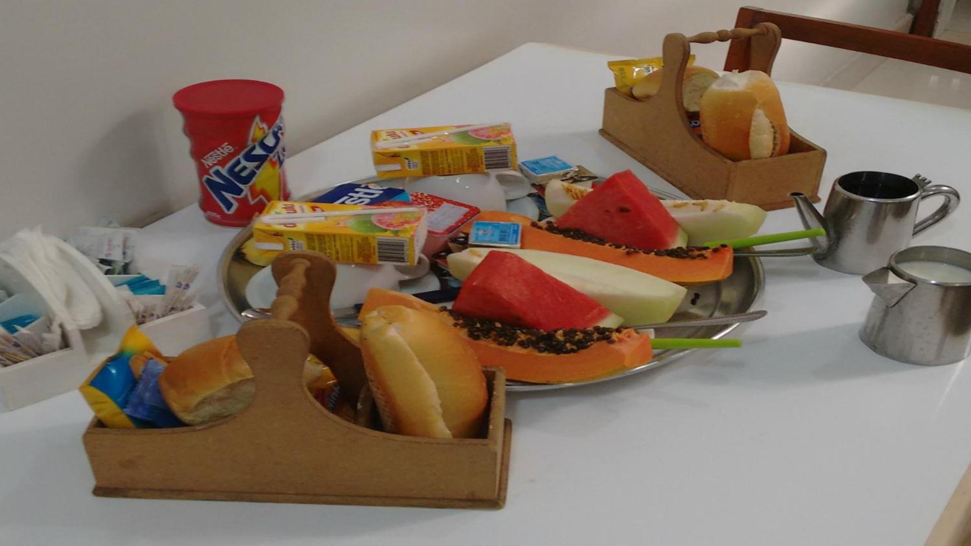 o café da manhã é simples, mas vem bastante itens, dá pra se alimentar bem!