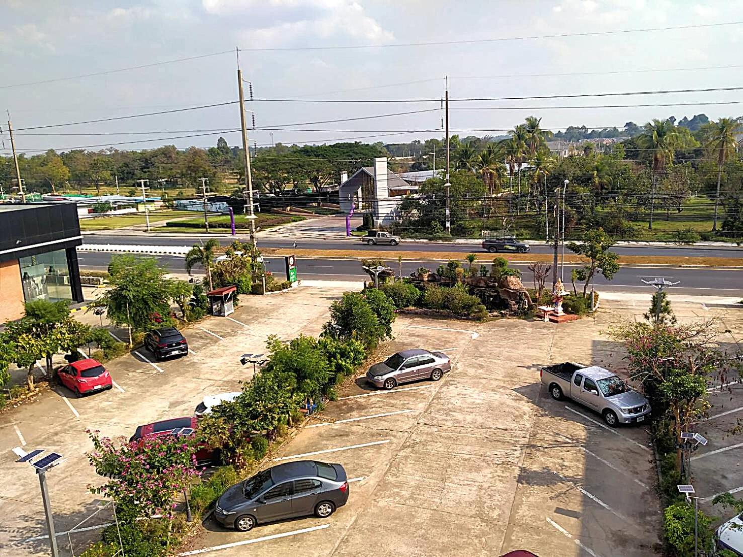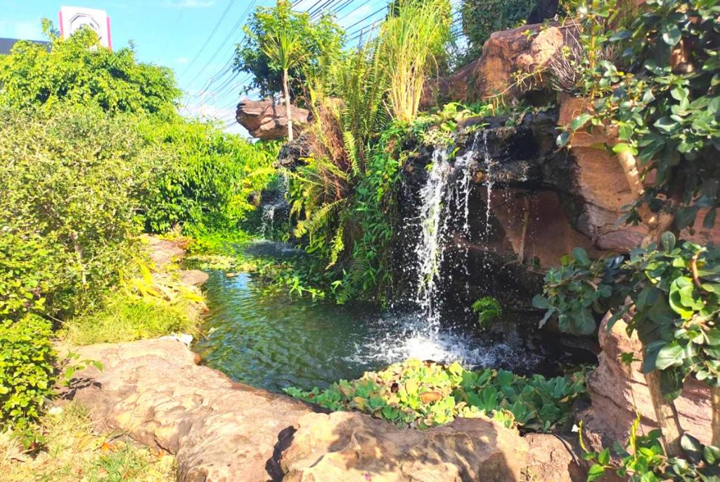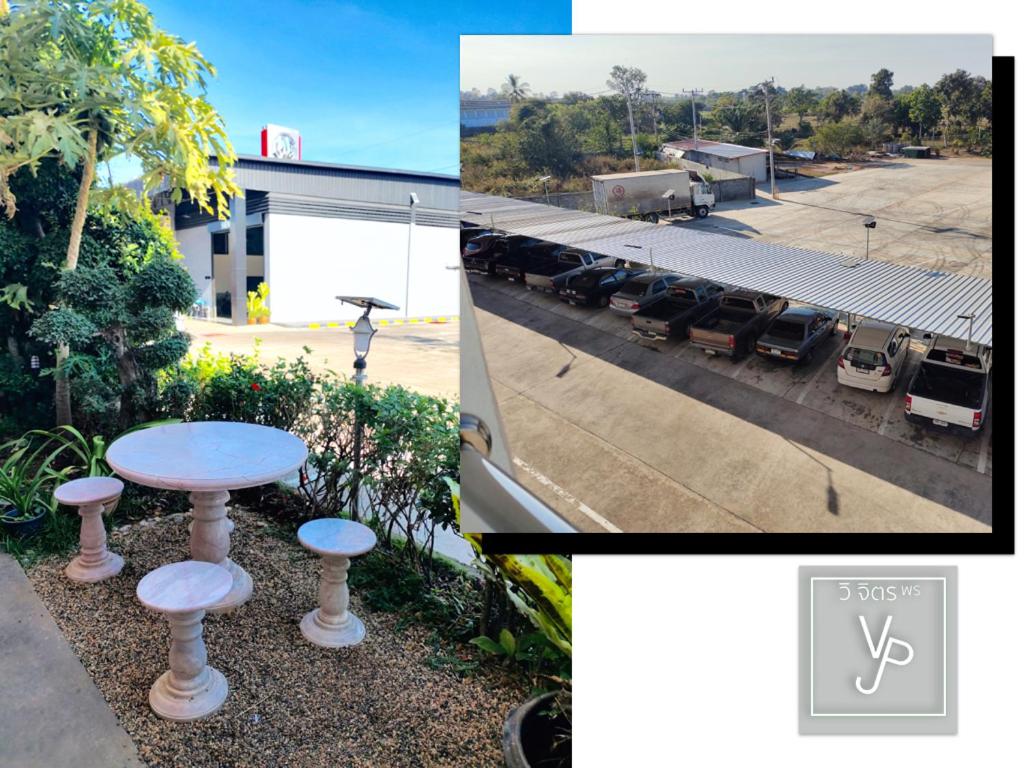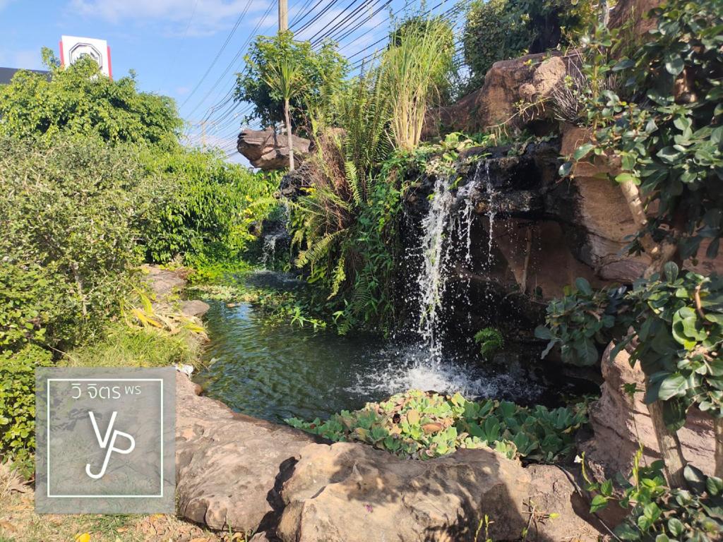 Garden Oasis: Escape to a serene retreat at โรงแรมวิจิตรพร อุบล VJP Hotel Ubon, where a lush garden surrounds the property, offering a peaceful environment for relaxation and leisure.