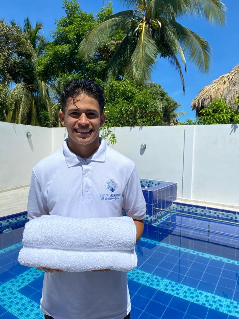 Luxurious Amenities: Enjoy the outdoor swimming pool, terrace, and restaurant at HOTEL ARRECIFE.